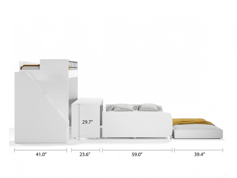 - Bel Mondo multifunctional bunk bed is equipped with commercial-grade wheels for easy operation, and for keeping even the most sensitive floors safe.