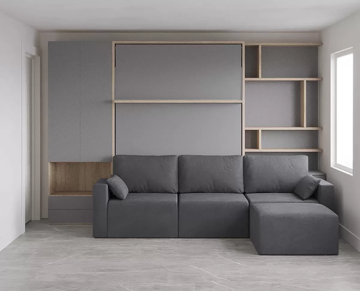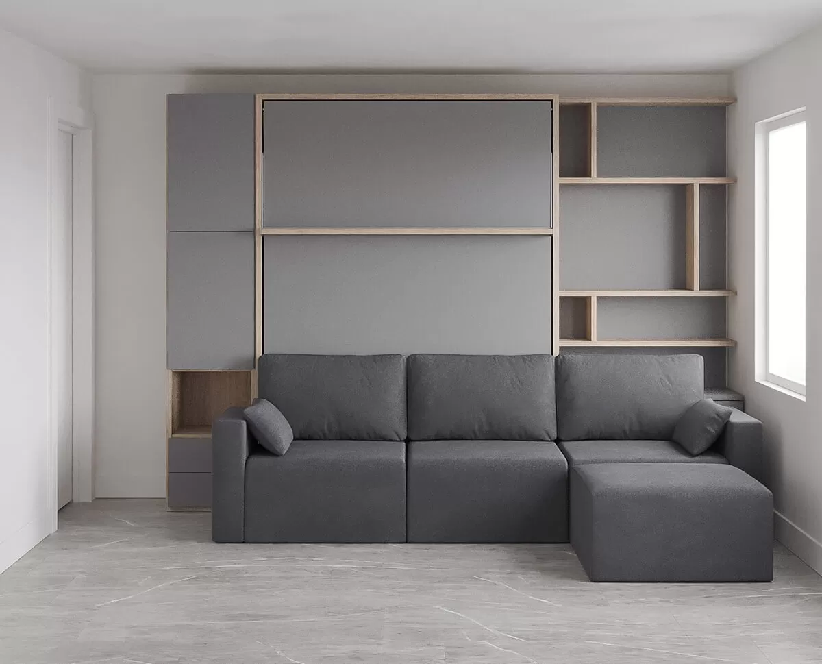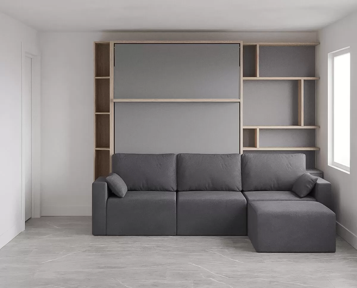 Royal Queen Wall Bed with Sectional Sofa, Bookcases and Wardrobe