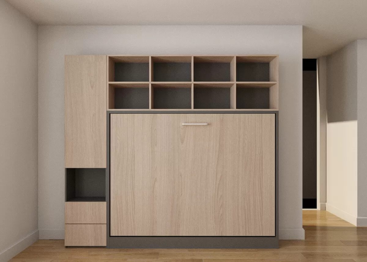 Double Fold Queen Murphy Wall Bed with Wardrobe
