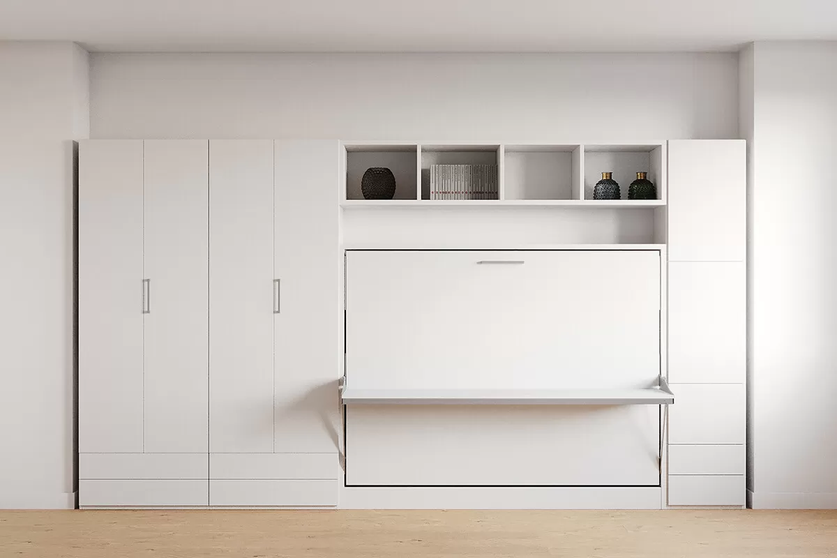 Double Fold Queen Murphy Wall Bed with Wardrobe
