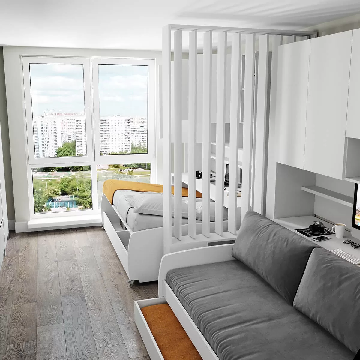 Eco Compact Full/Full XL Sofa Bed and Cabinet System
