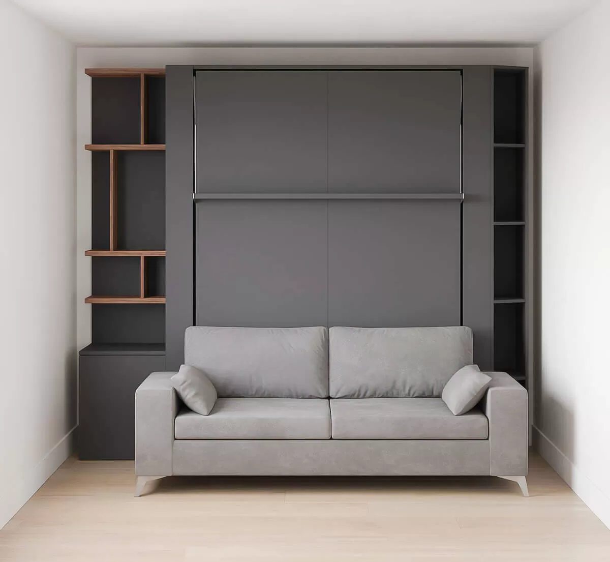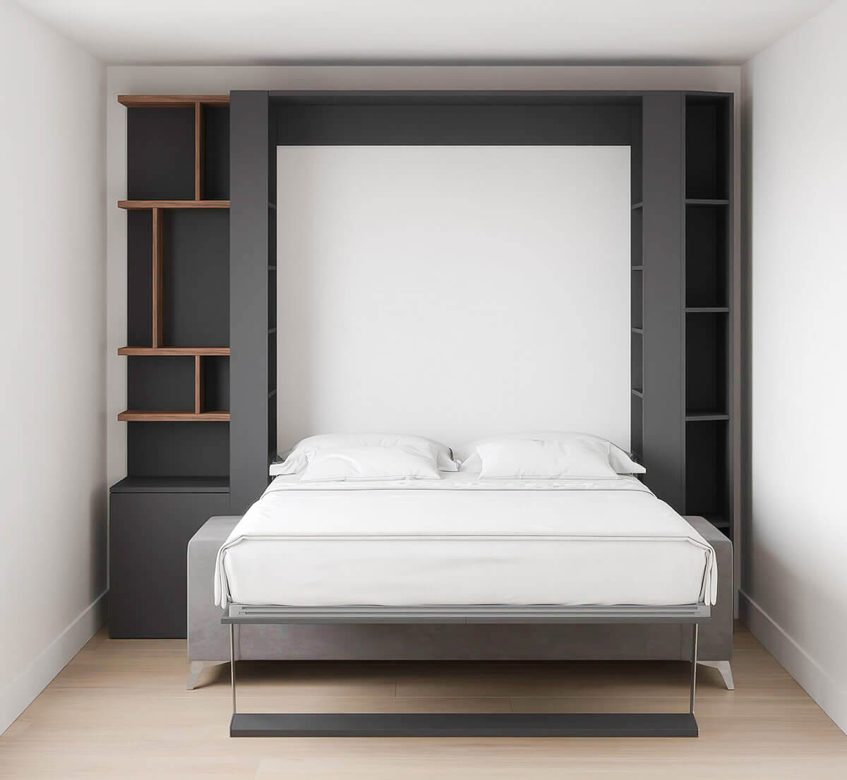 Nova Queen Wall Bed with Sectional Sofa and Bookcase Set