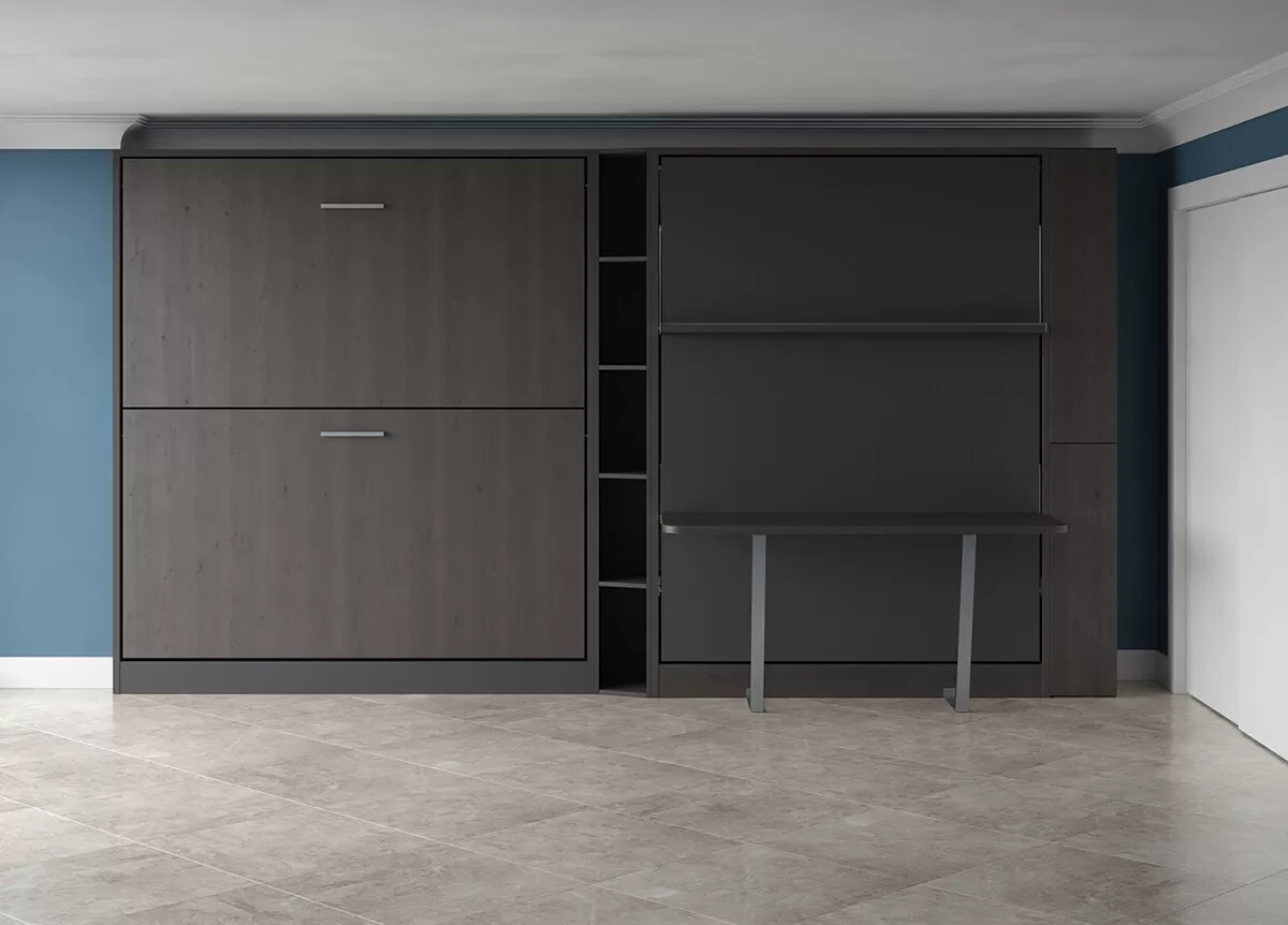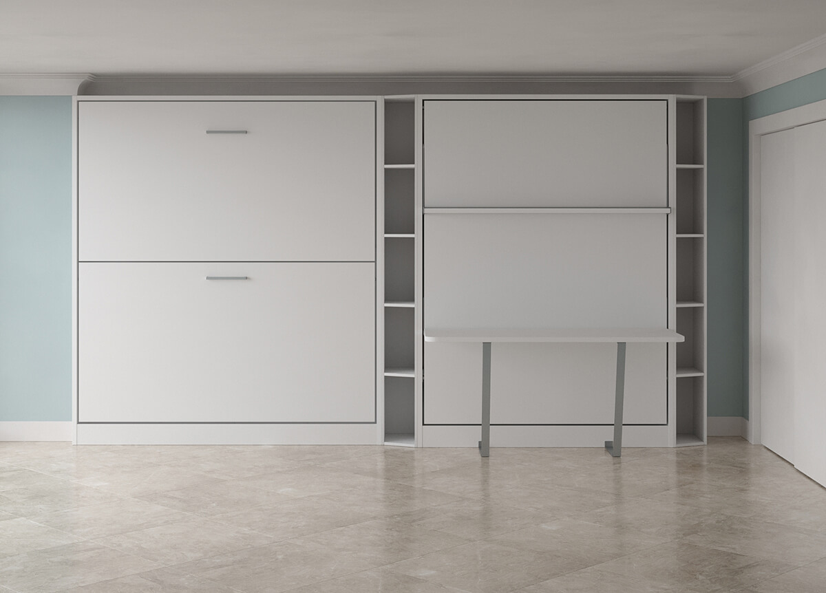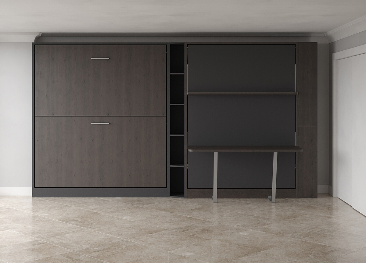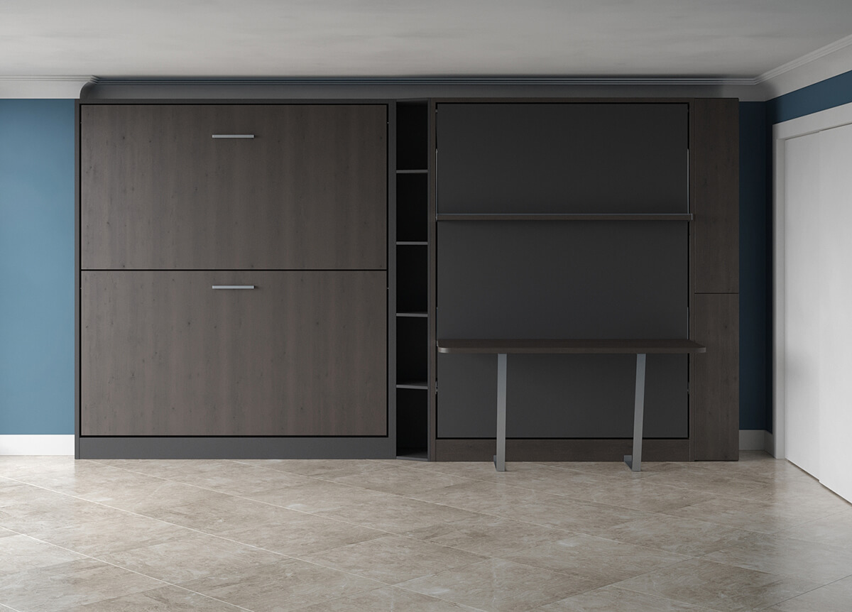 Pensiero Twin Wall Bunk Bed, Royal Queen Wall Bed, Bookcase and Desk