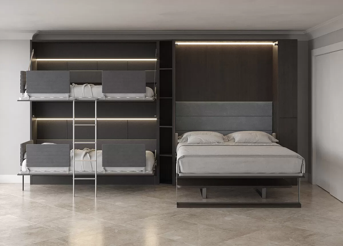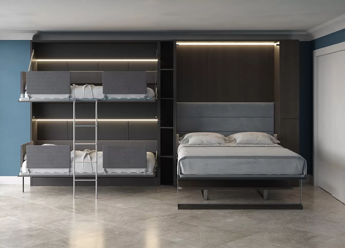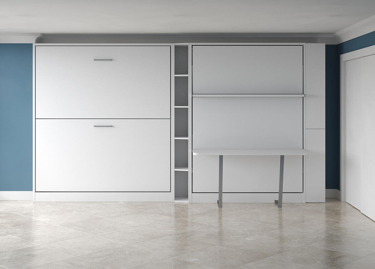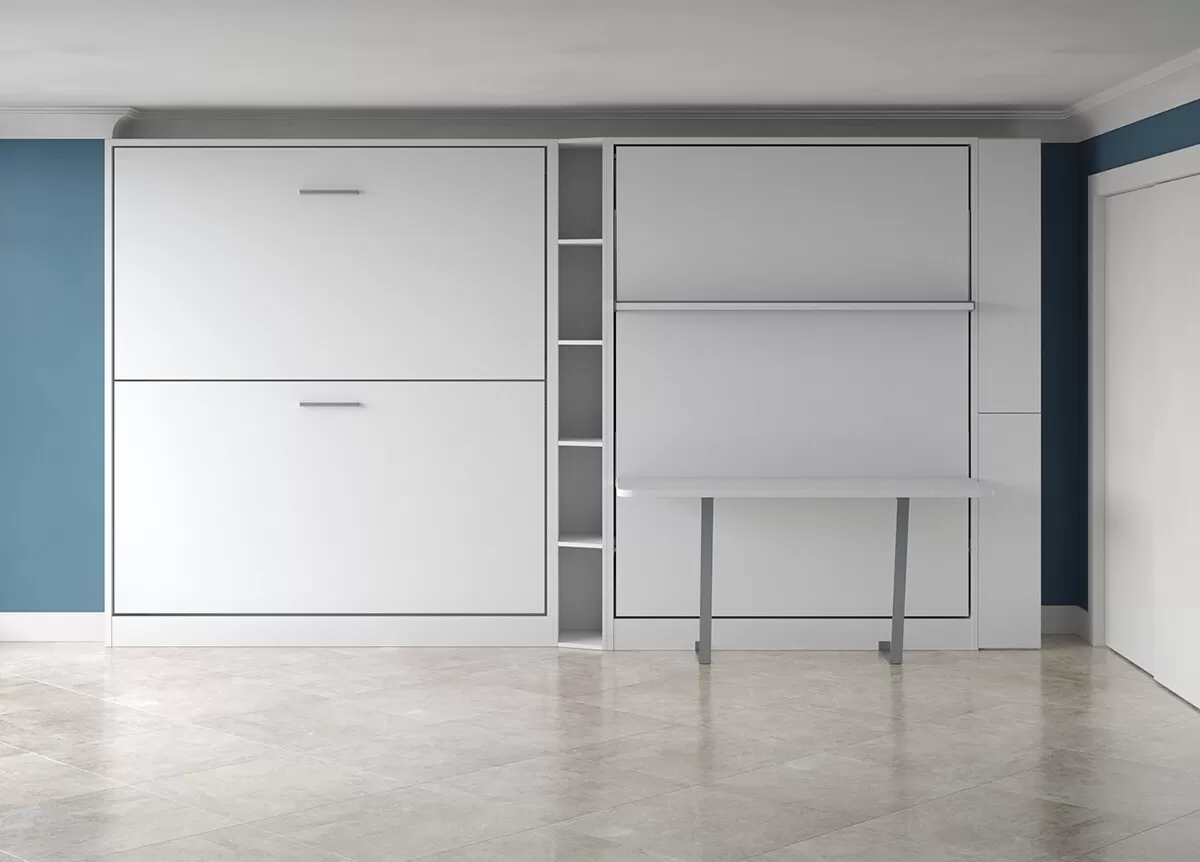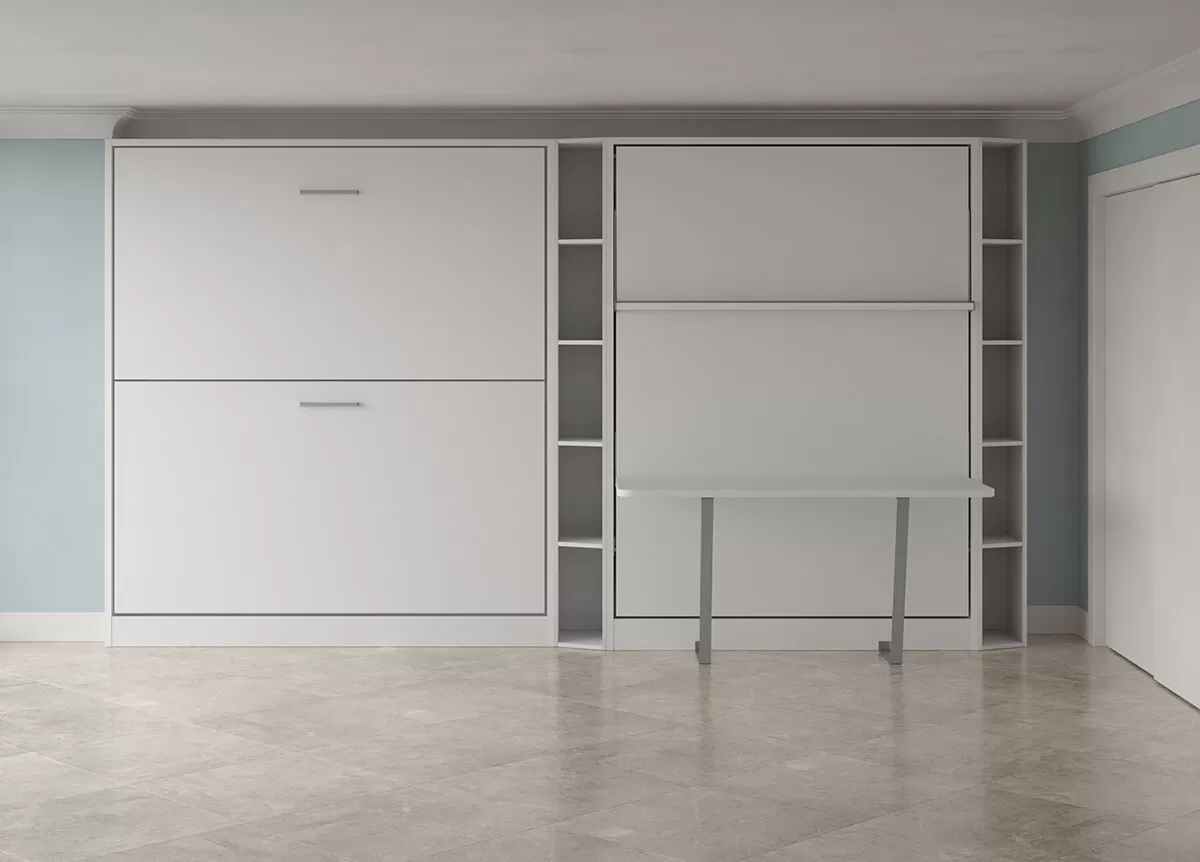 Pensiero Twin Wall Bunk Bed, Royal Queen Wall Bed, Bookcase and Desk
