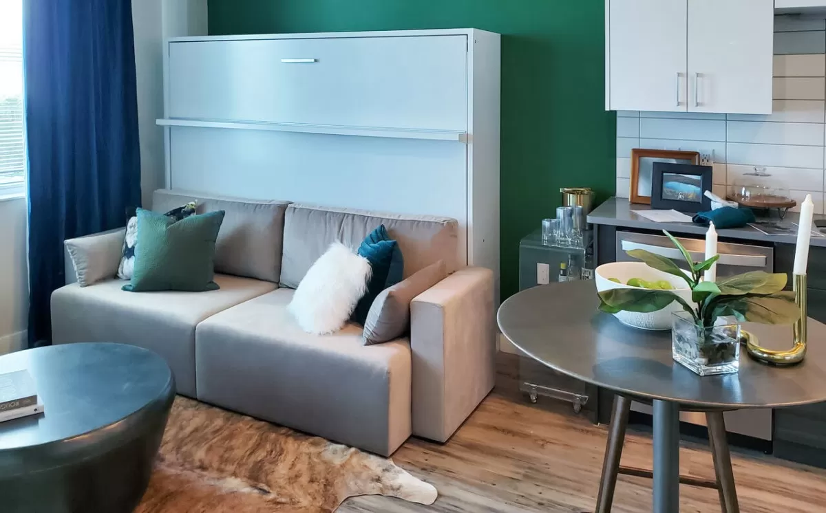 Enhance your space with the royal horizontal queen Murphy bed with sofa, providing a versatile solution for seating and sleeping.