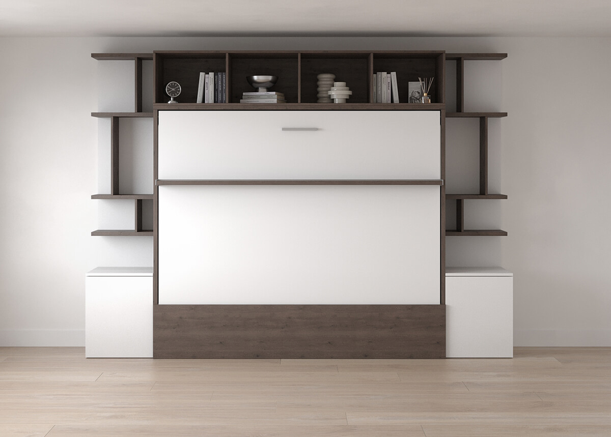 Royal Horizontal Queen Wall Bed with Bookcases