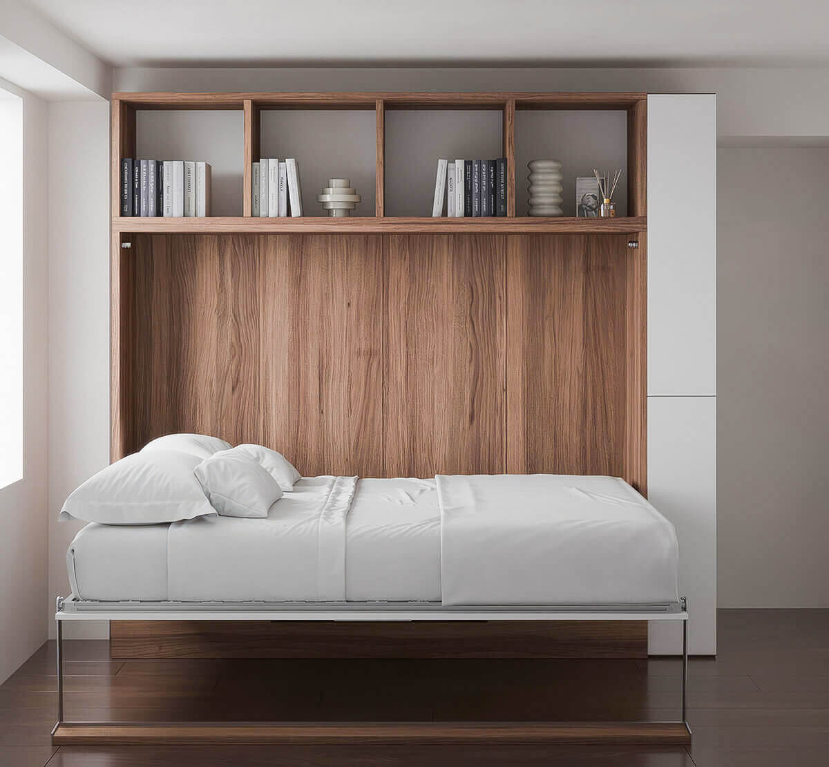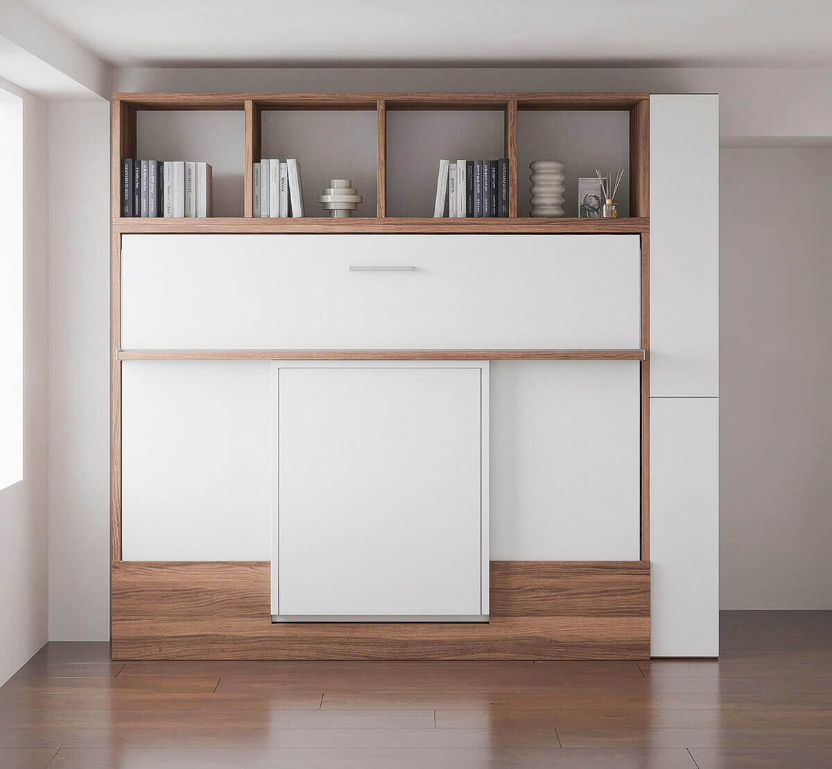 Royal Horizontal Queen Wall Bed with Desk and Bookcase