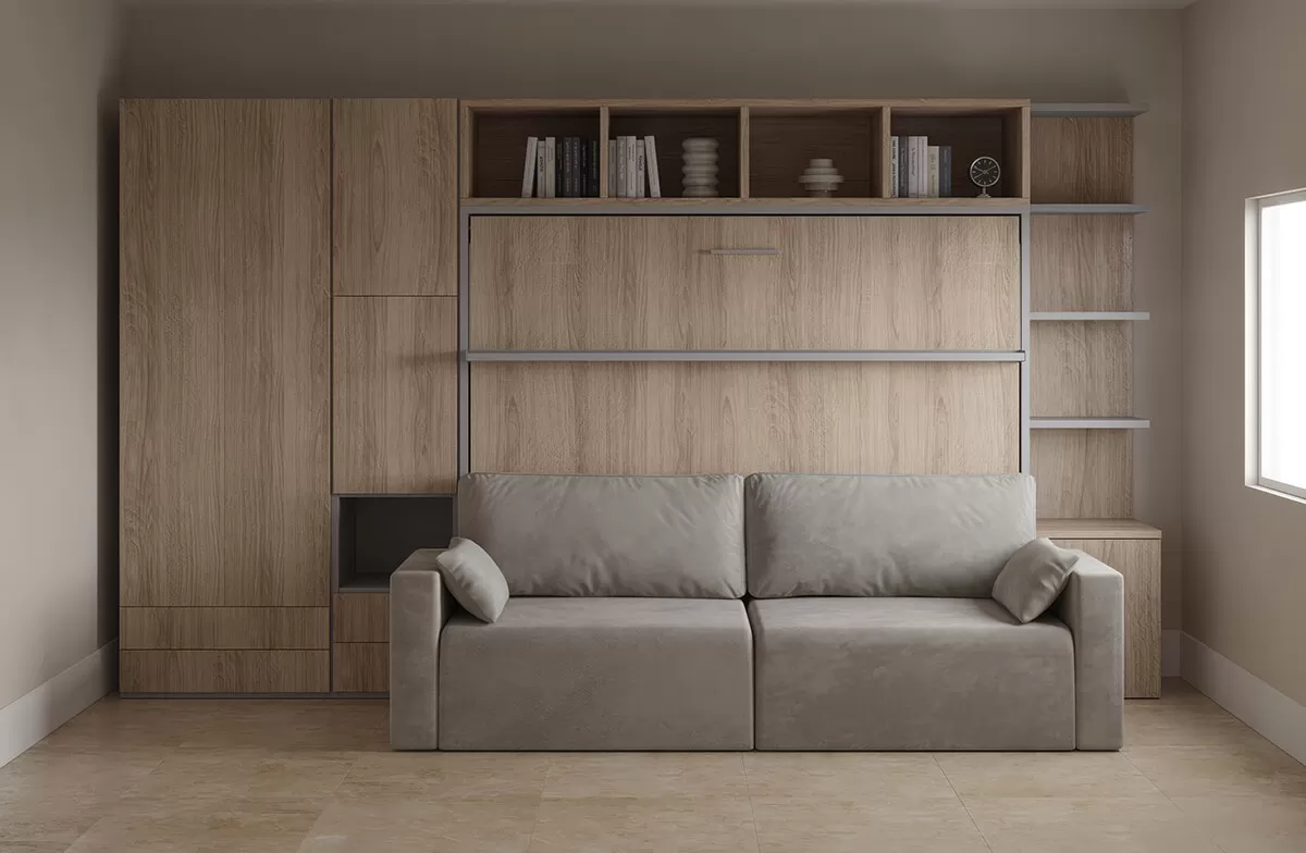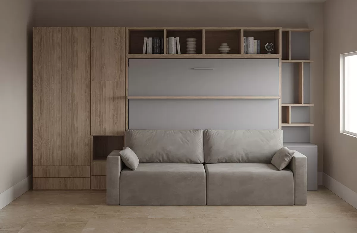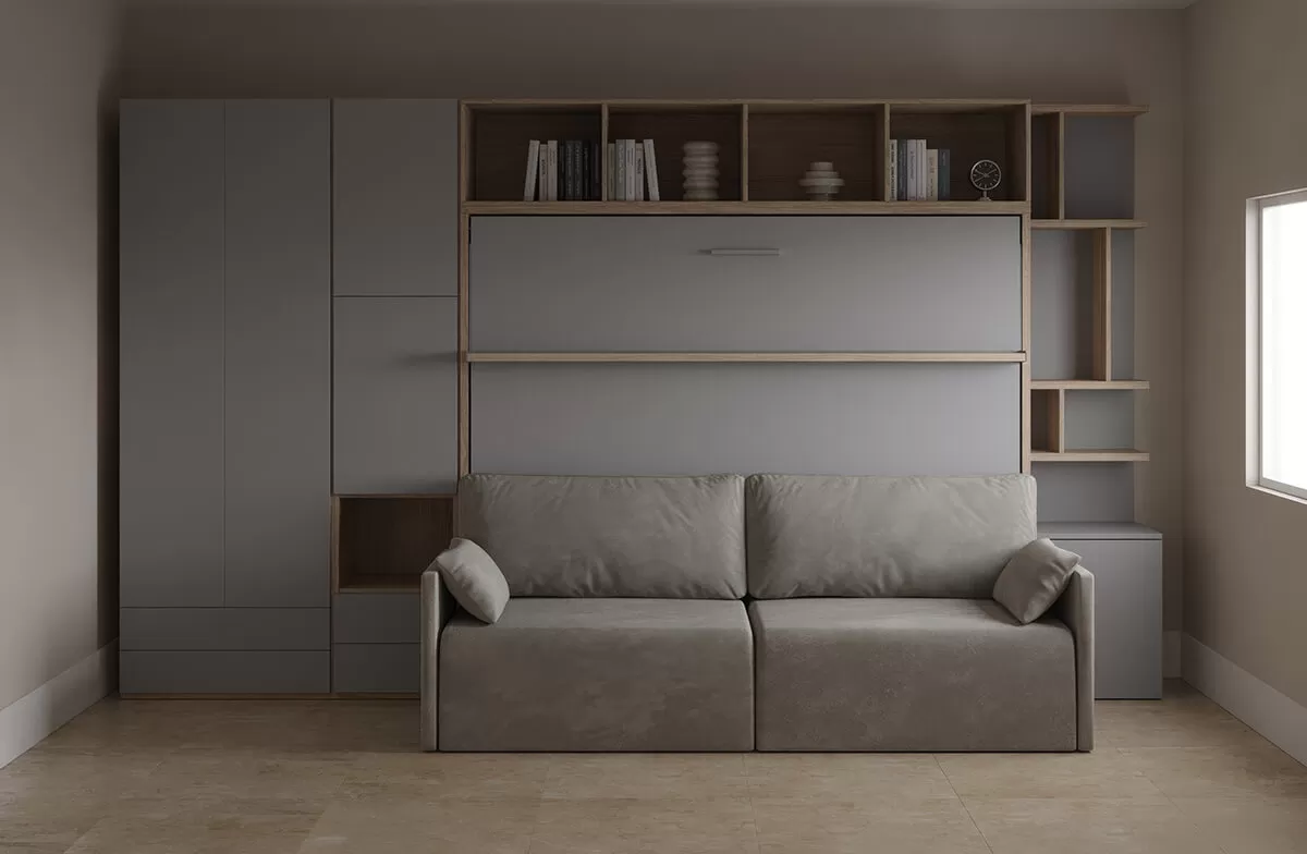 Royal Horizontal Queen Wall Bed with Wardrobe and Bookcase Set