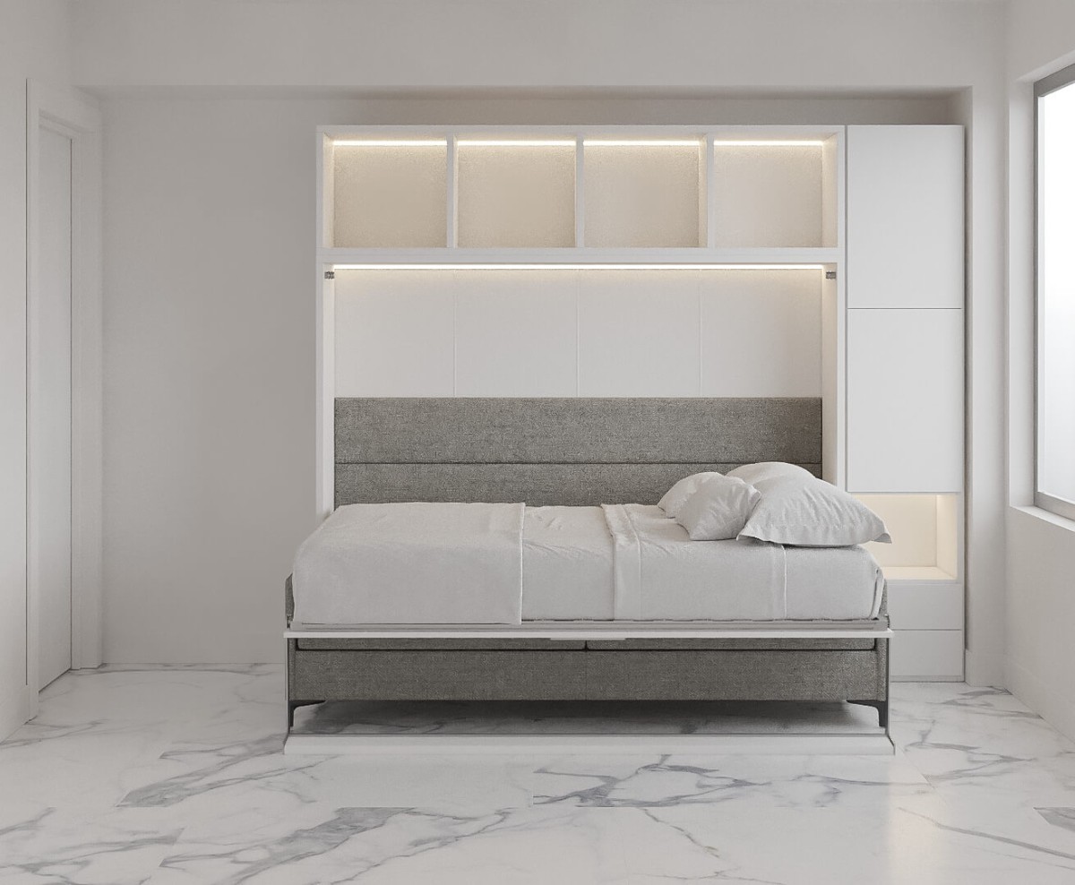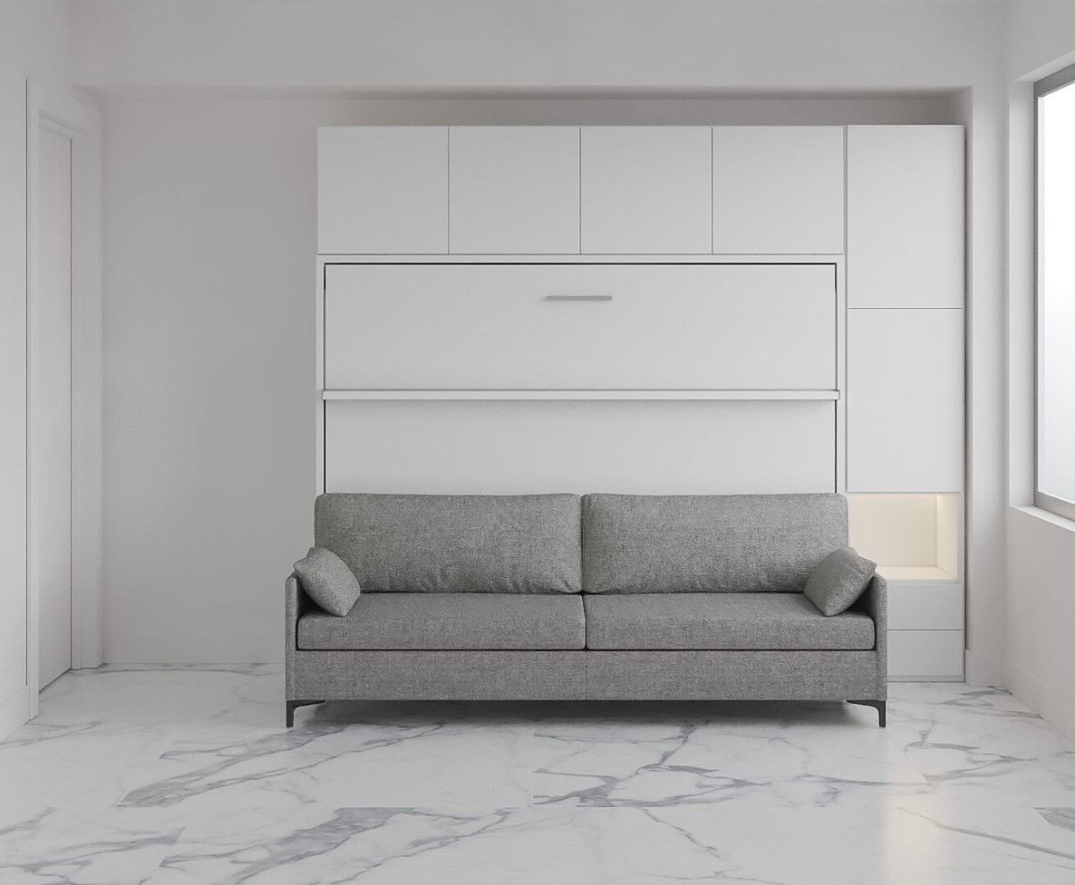 Royal Horizontal Queen Wall Bed with Wardrobe, Bookcase and 2 Seat Sofa