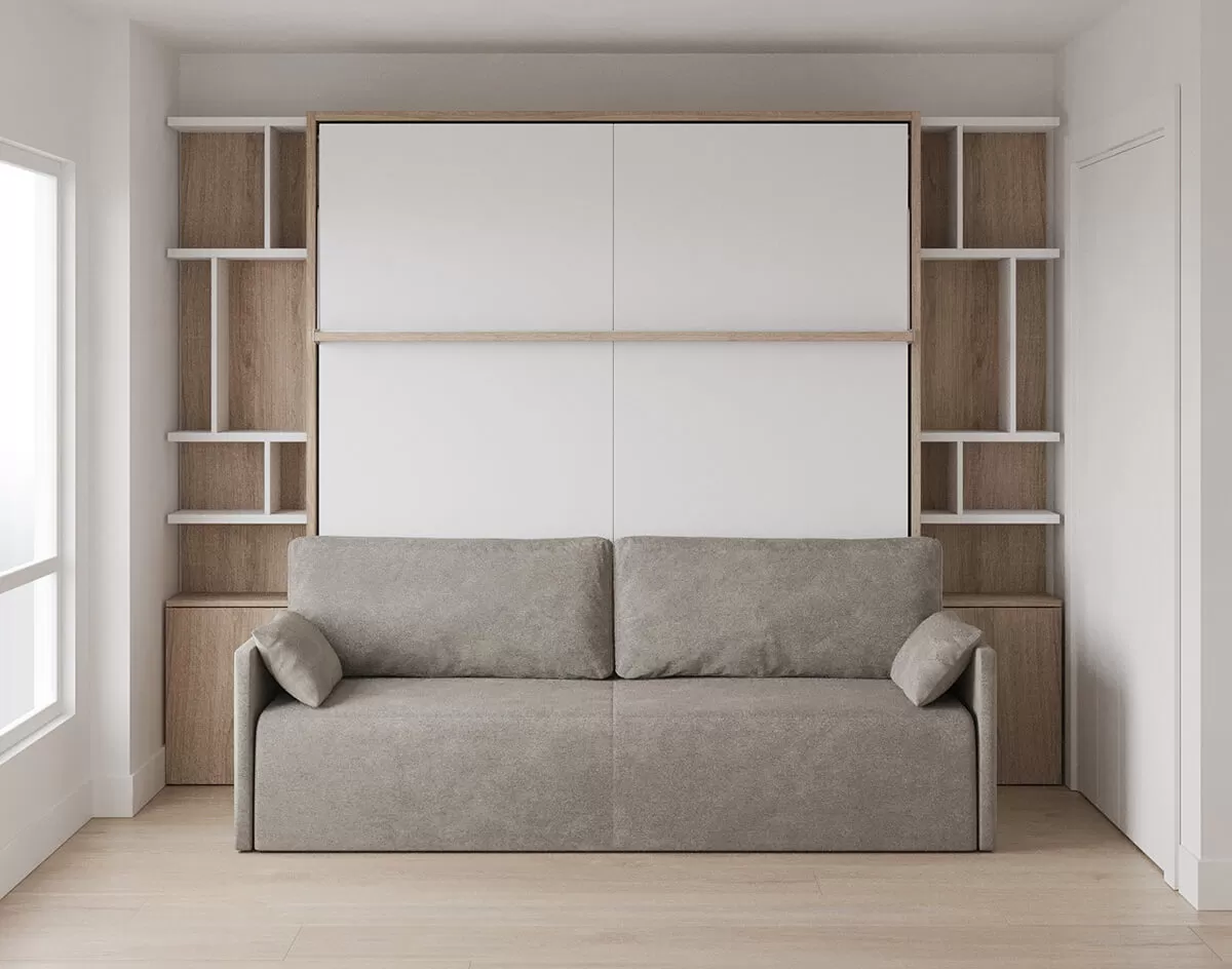 Royal King Murphy Bed with Sectional Sofa and Wardrobes