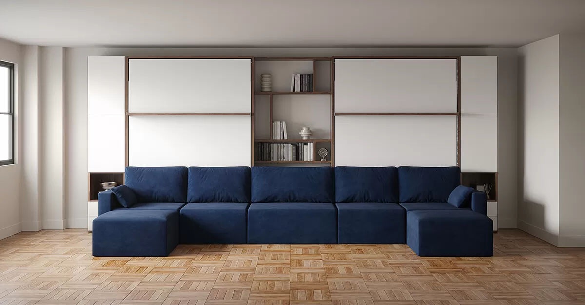 Royal King Murphy Bed with Sofa and Bookcase Set