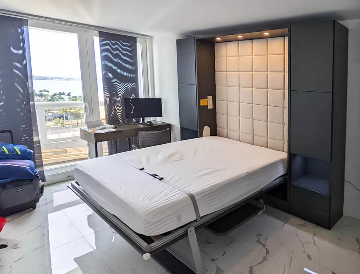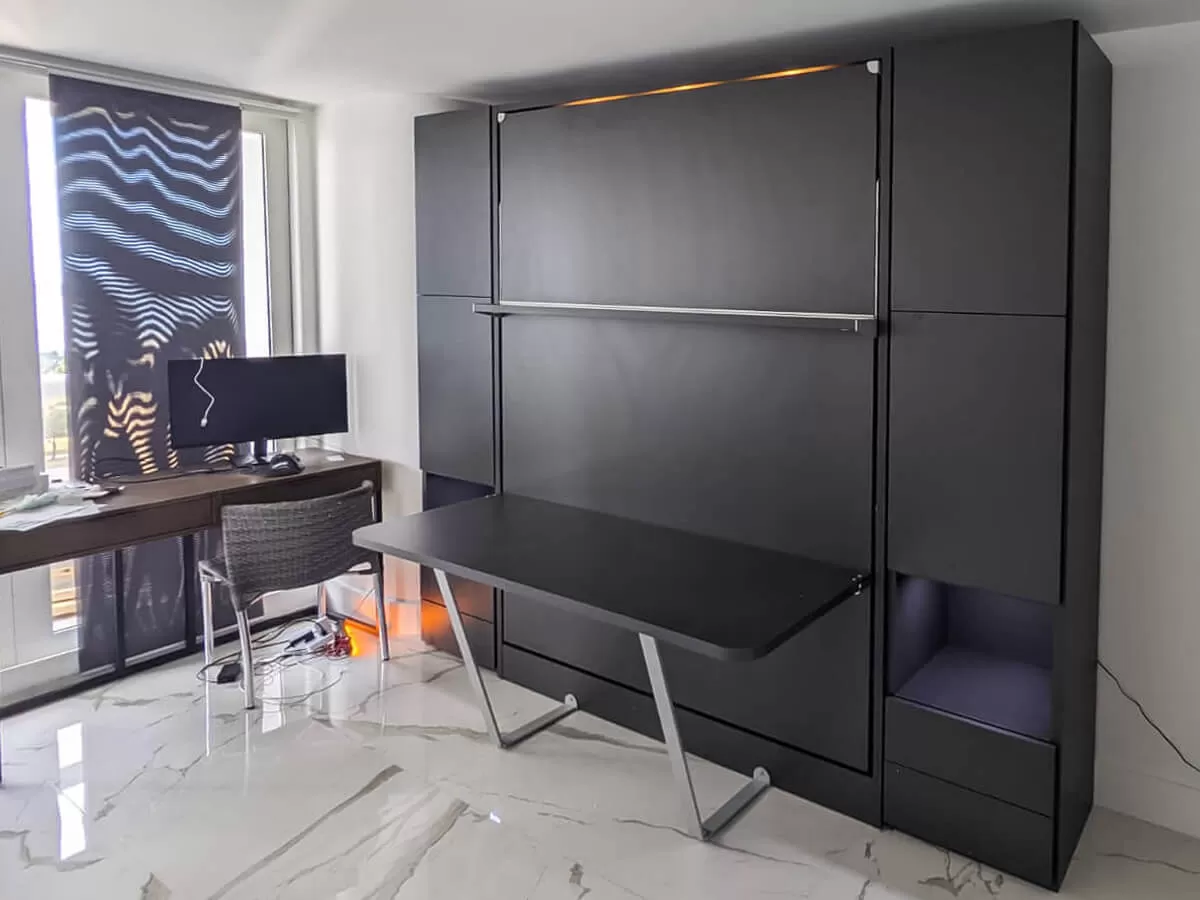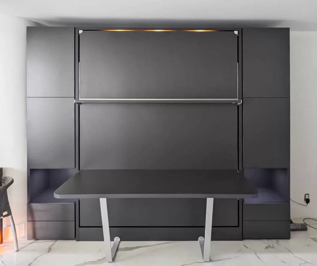 Maximize your space with the Royal Queen Murphy Bed With Desk, ideal for multi-purpose rooms. This innovative design provides a comfortable queen-sized bed and a built-in desk for a functional workspace. Perfect for home offices or guest rooms, it seamlessly combines practicality and elegance.
