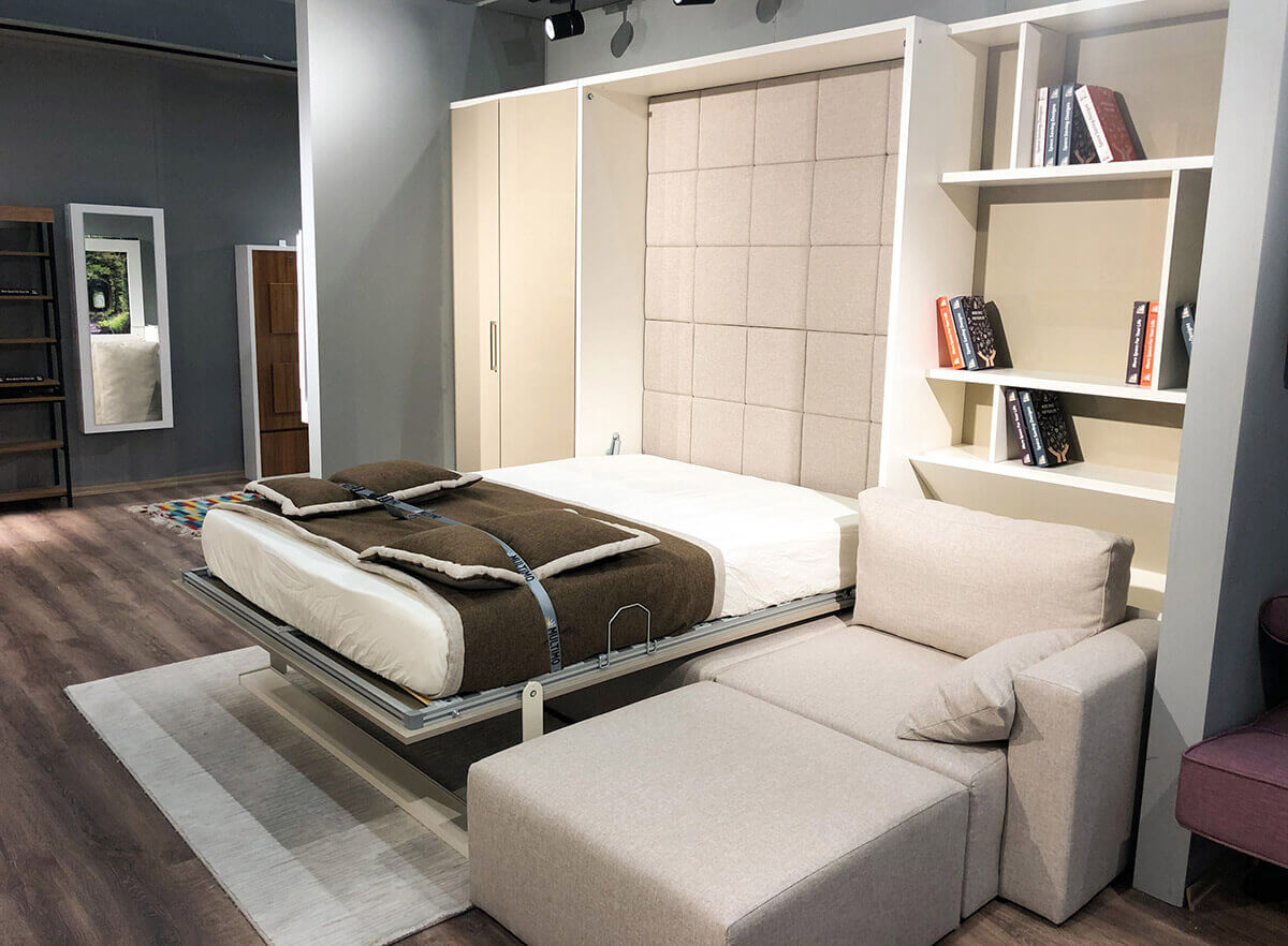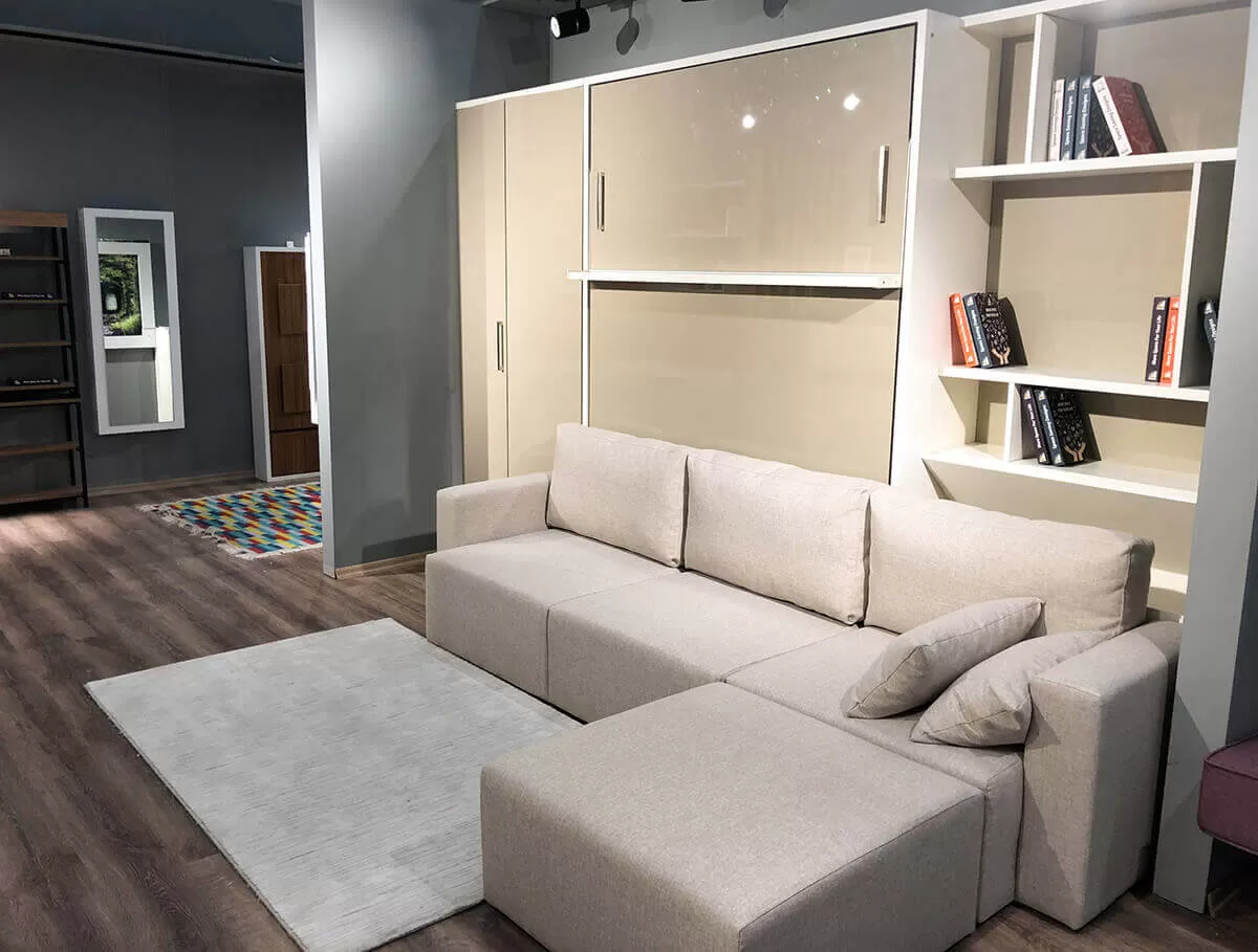 ROYAL Queen Wall Bed with Sectional Sofa and Bookcase Set