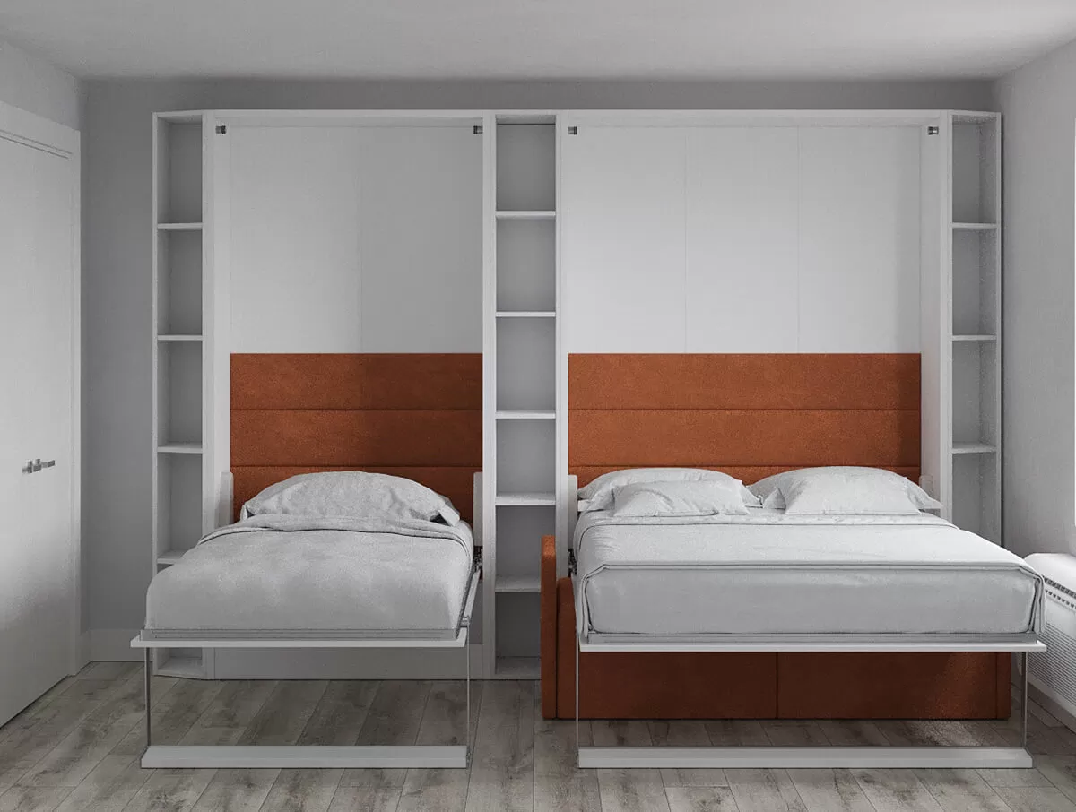ROYAL Queen Wall Bed, Royal-Twin-Twin-XL-Wall-Bed with Sectional Sofa and Bookcase Set