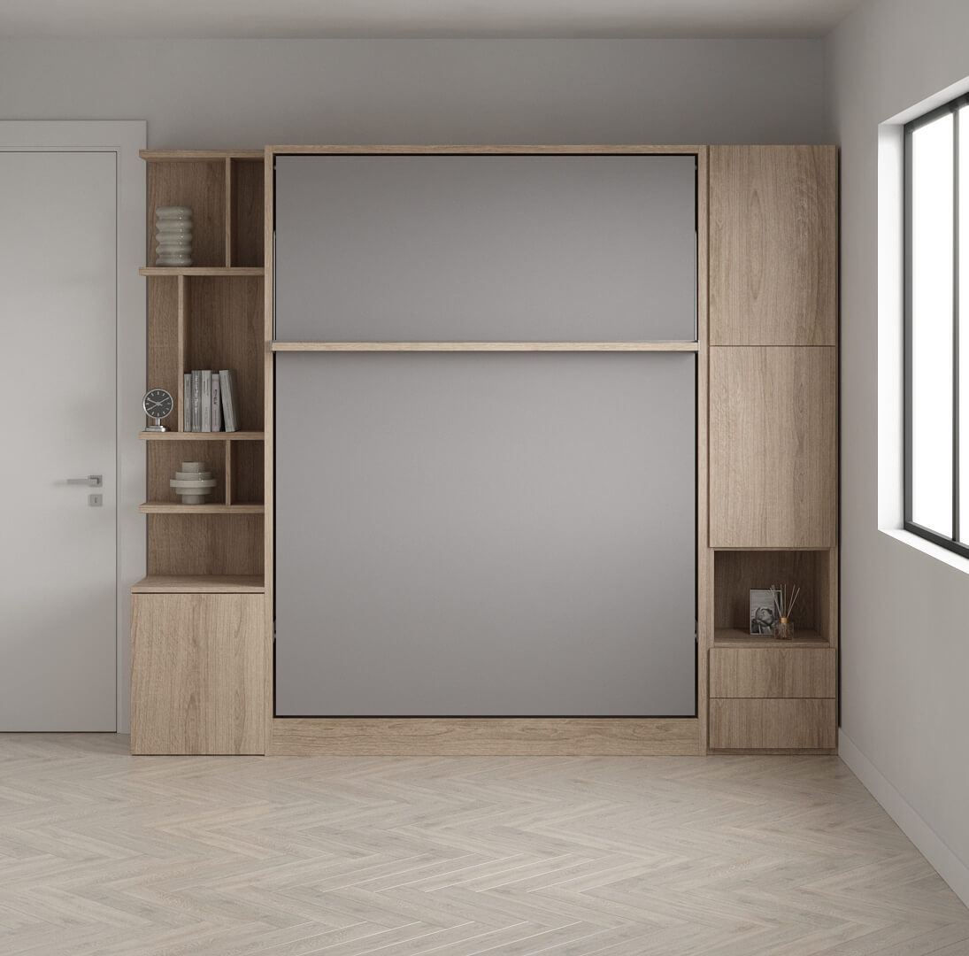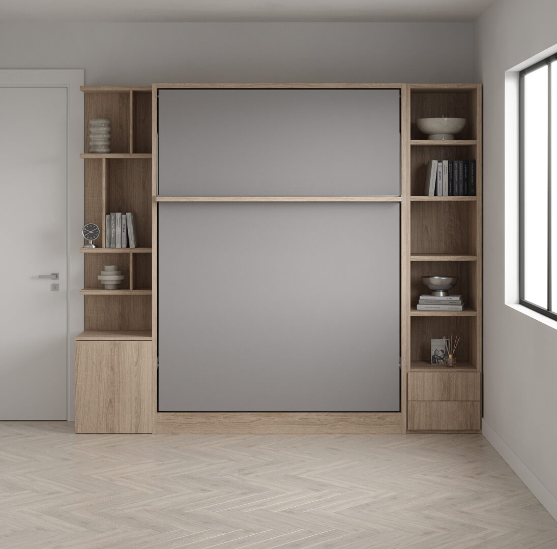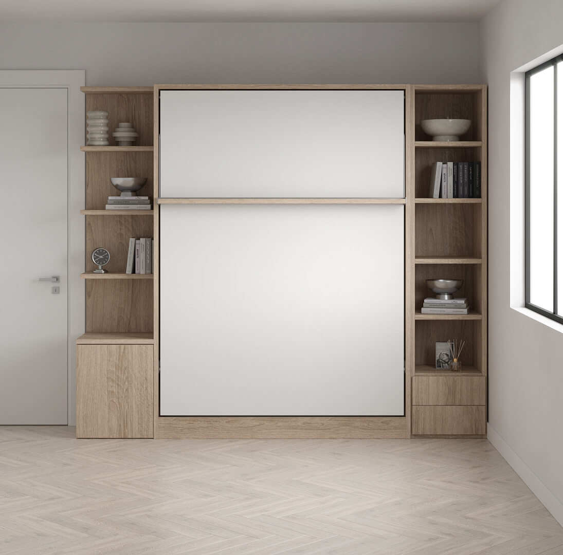 ROYAL Queen Wall Bed with Bookcase and Wardrobe