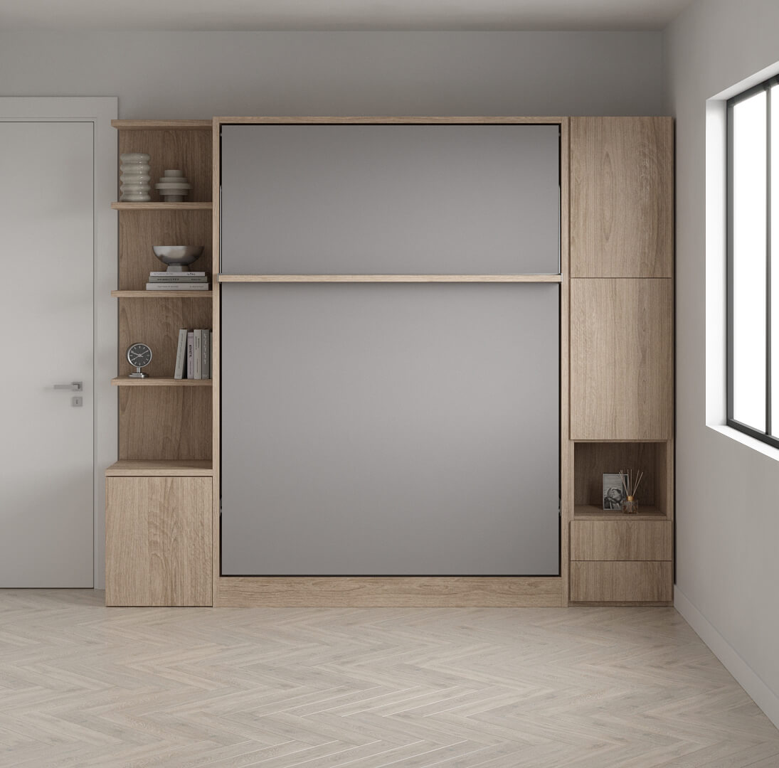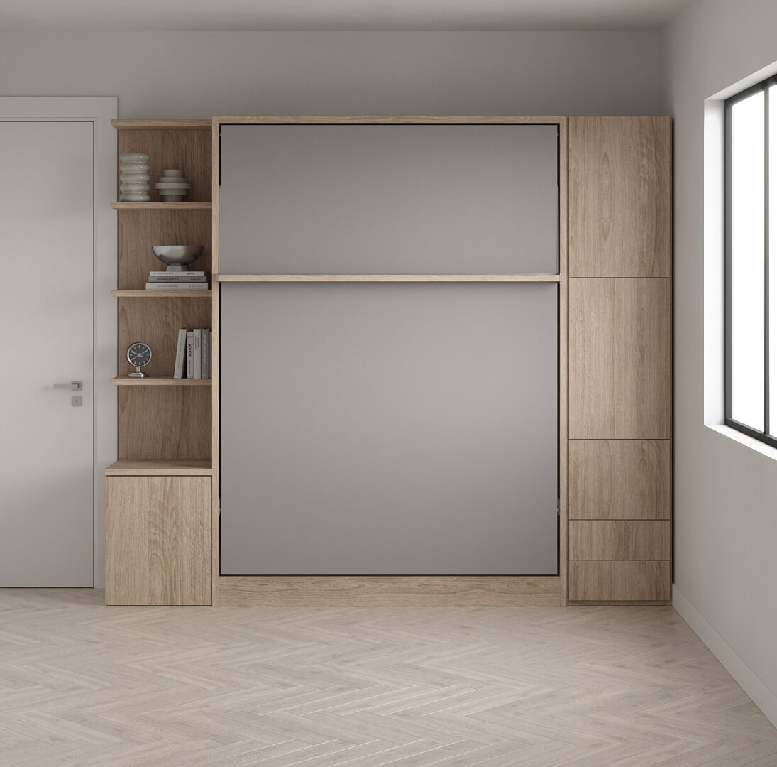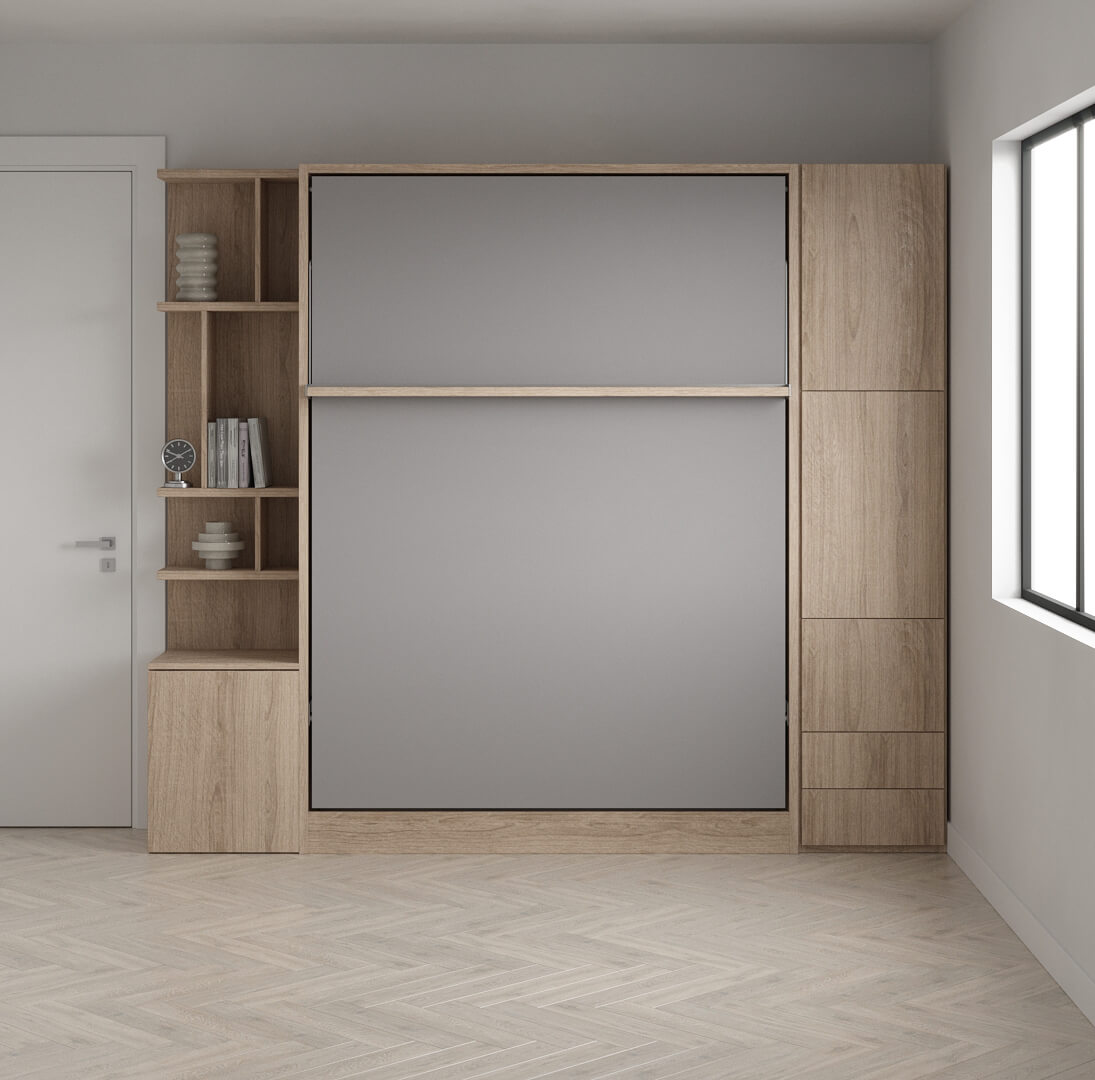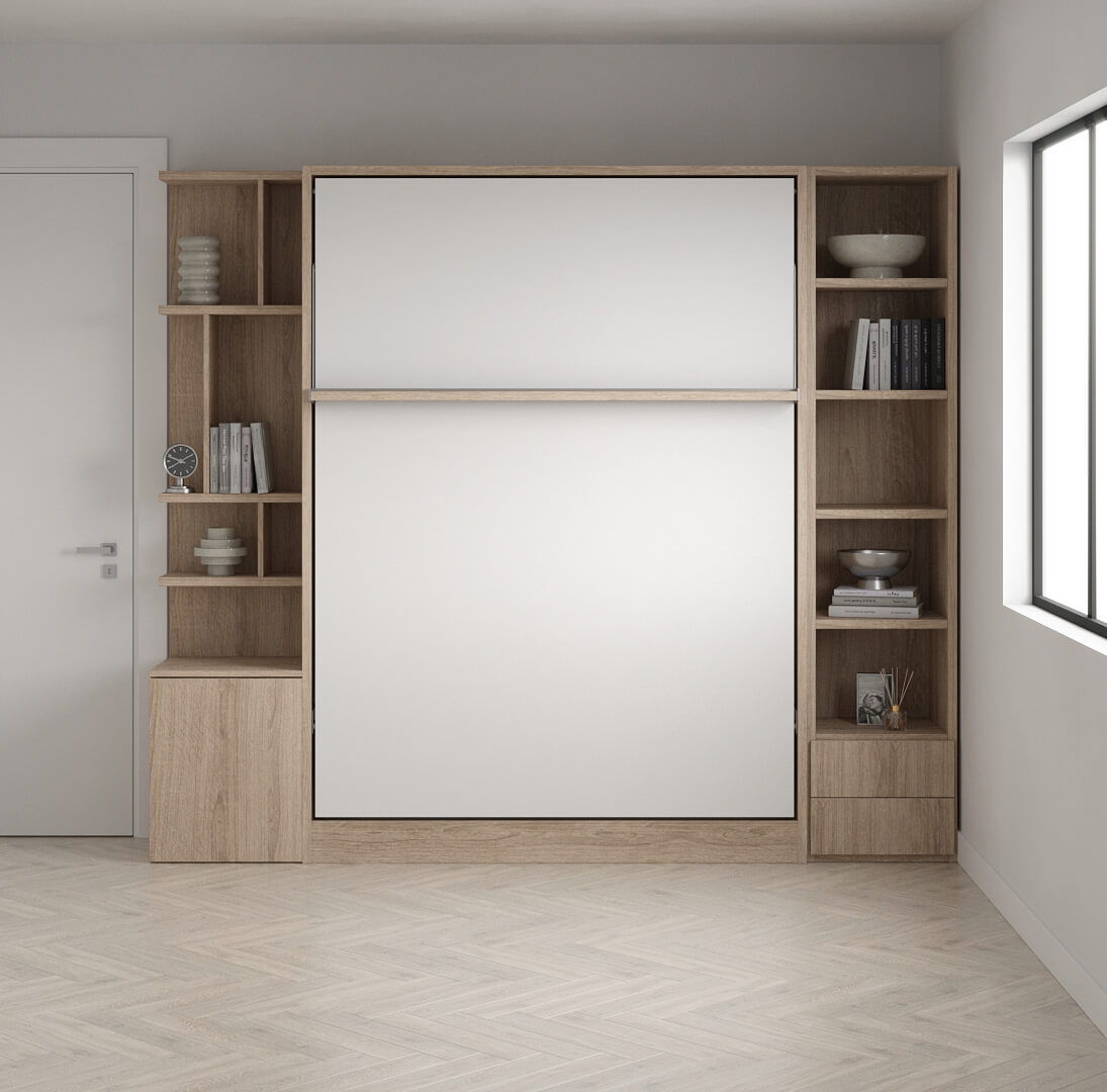 ROYAL Queen Wall Bed with Bookcase and Wardrobe