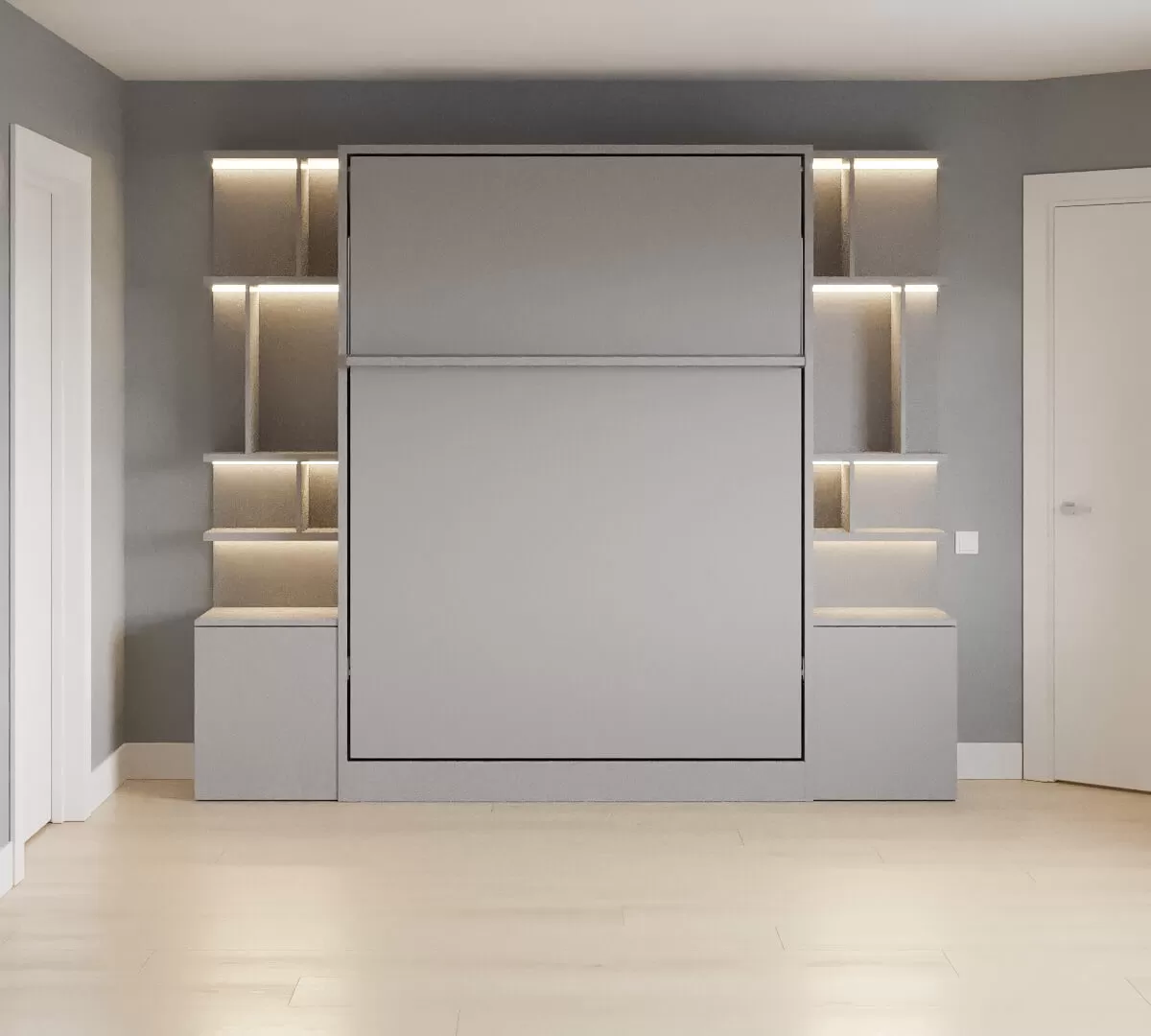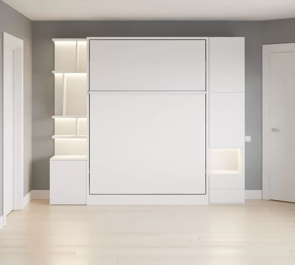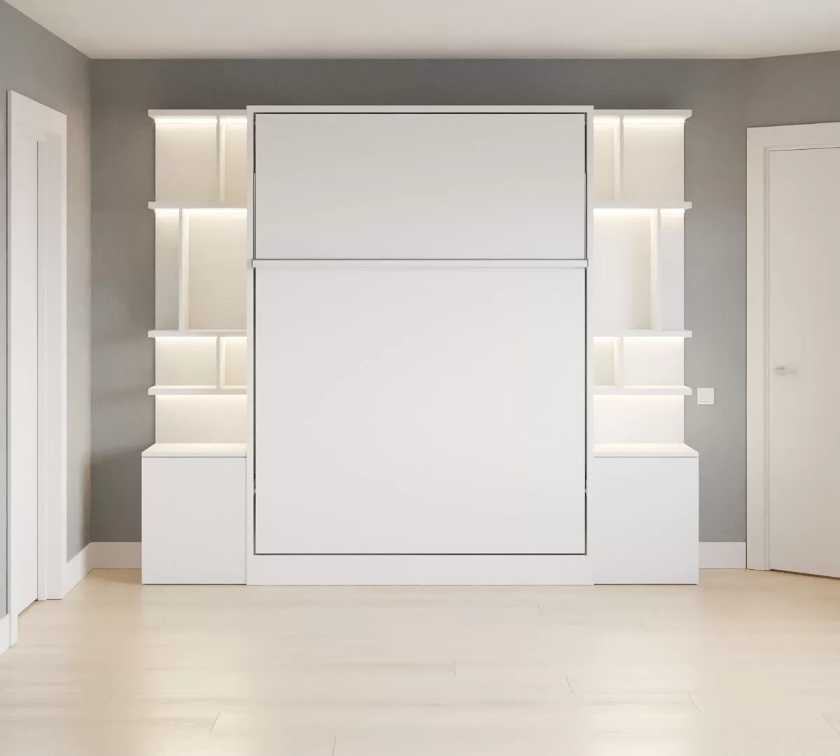 Royal Queen Wall Bed With Bookcase and Wardrobe