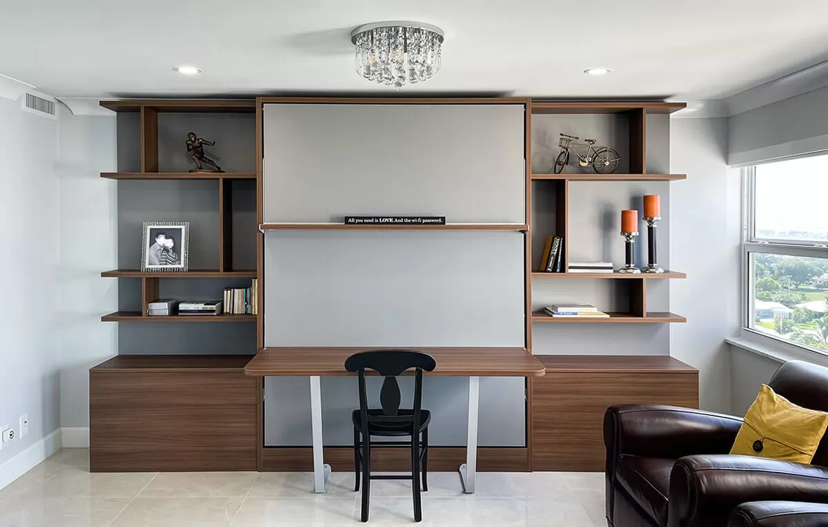 Royal Queen Wall Bed With Desk and Bookcase Set