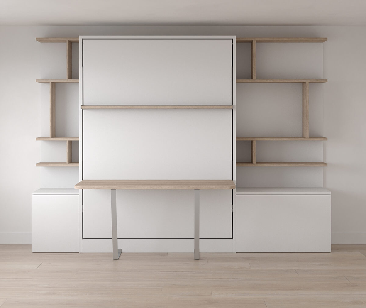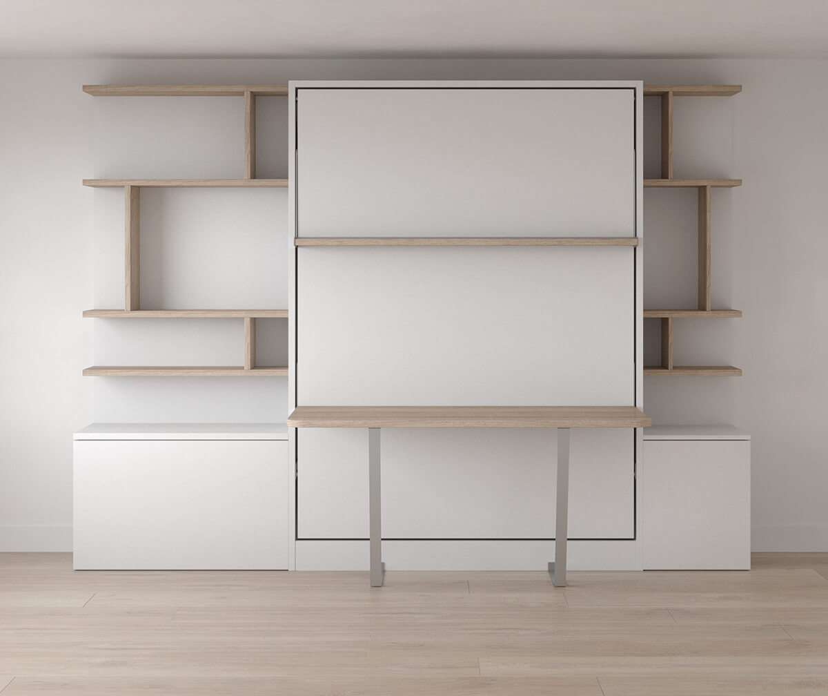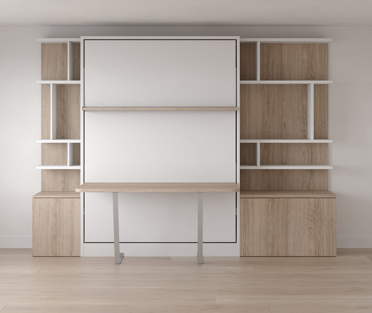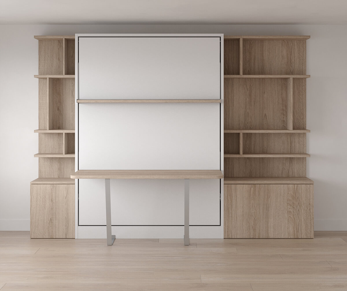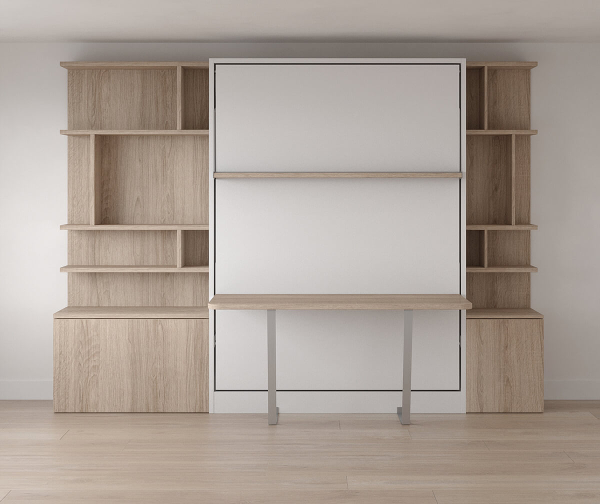 Royal Queen Wall Bed With Desk and Bookcase Set