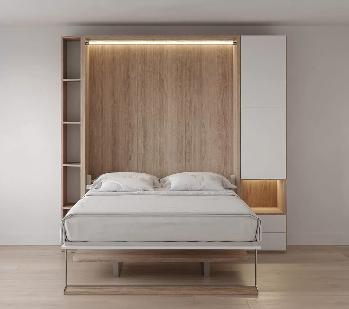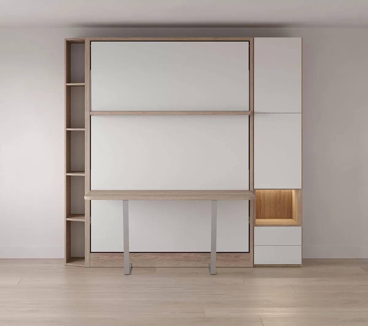 Royal Queen Wall Bed with Desk, Wardrobe and Bookcase