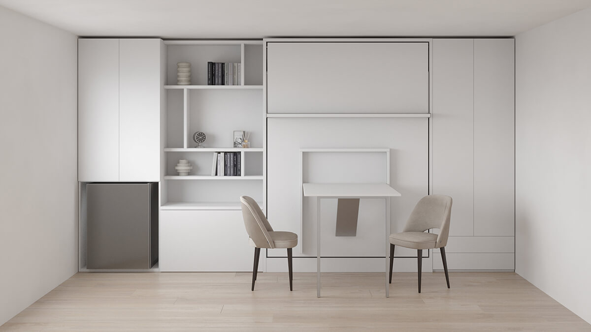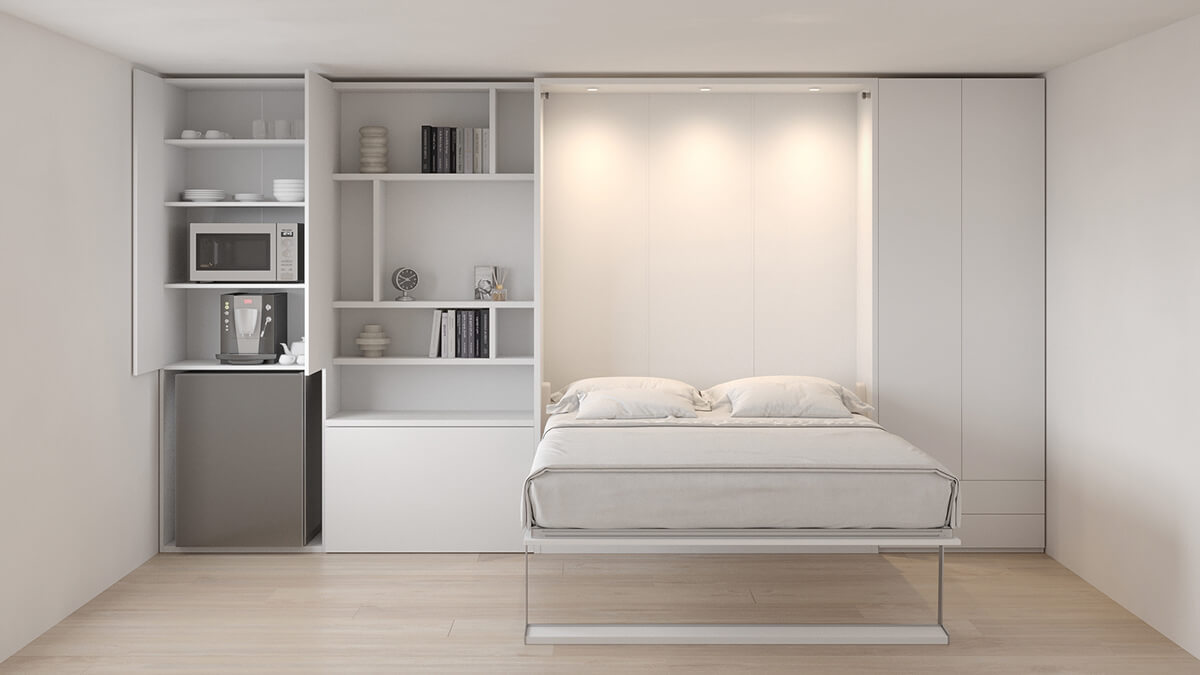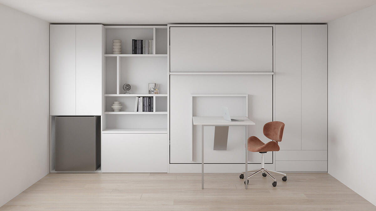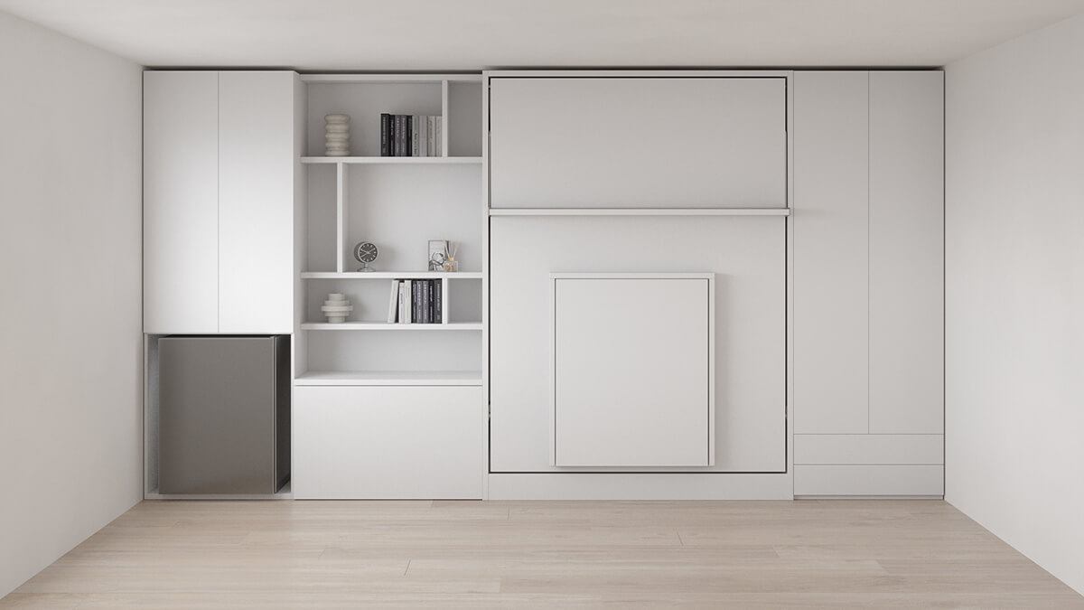Royal Queen Wall Bed with Folding Table and Bookcase Set
