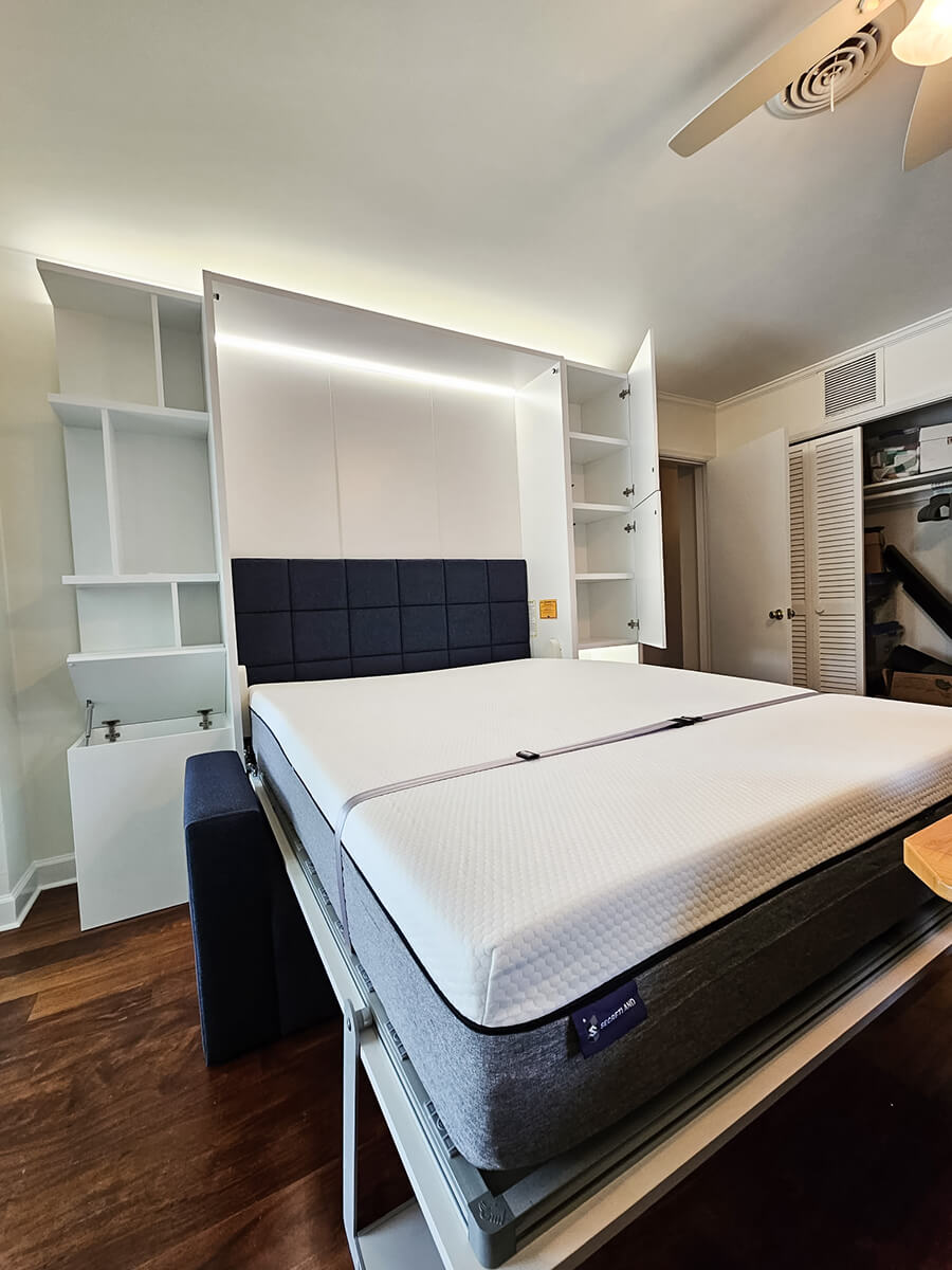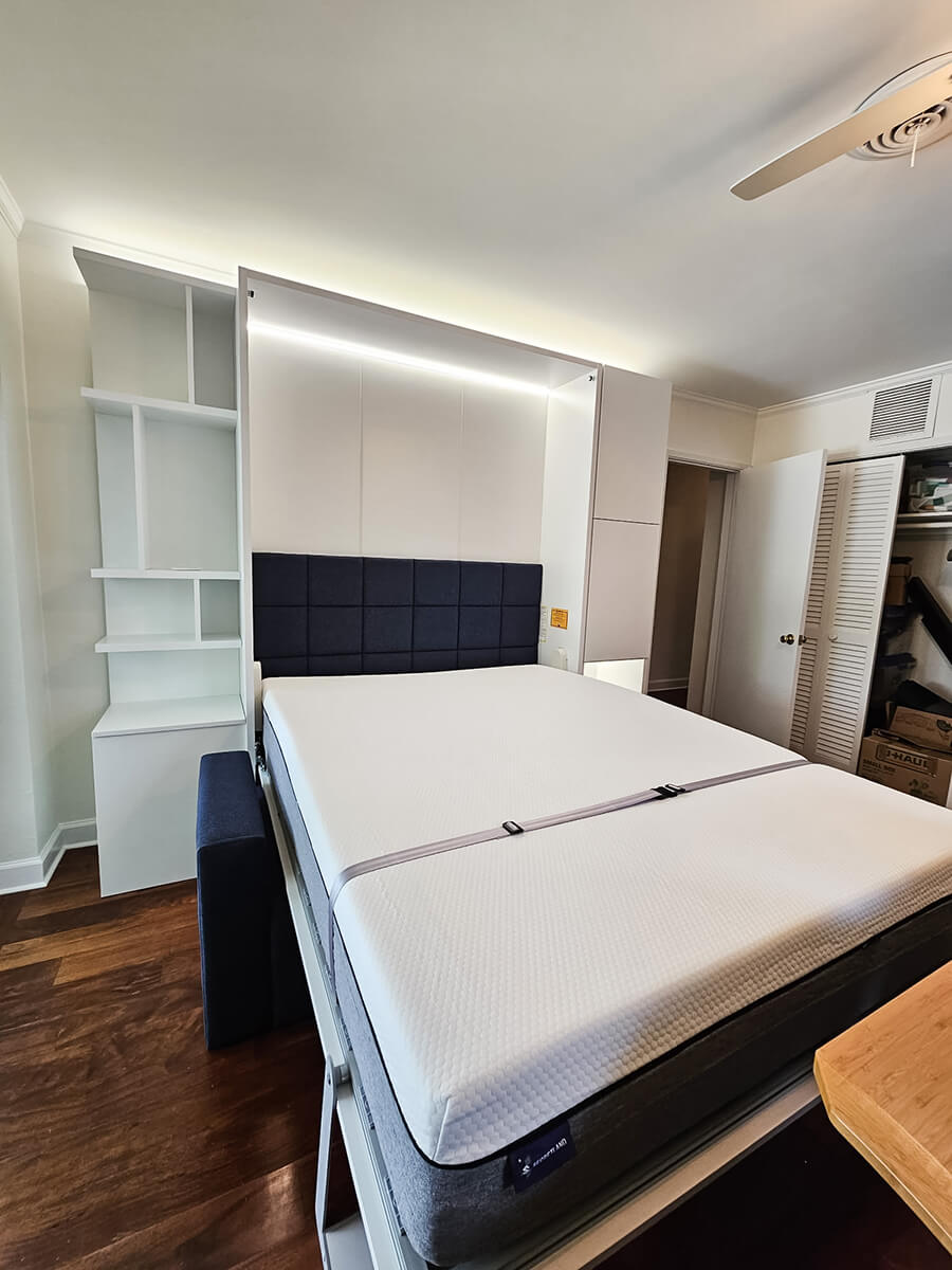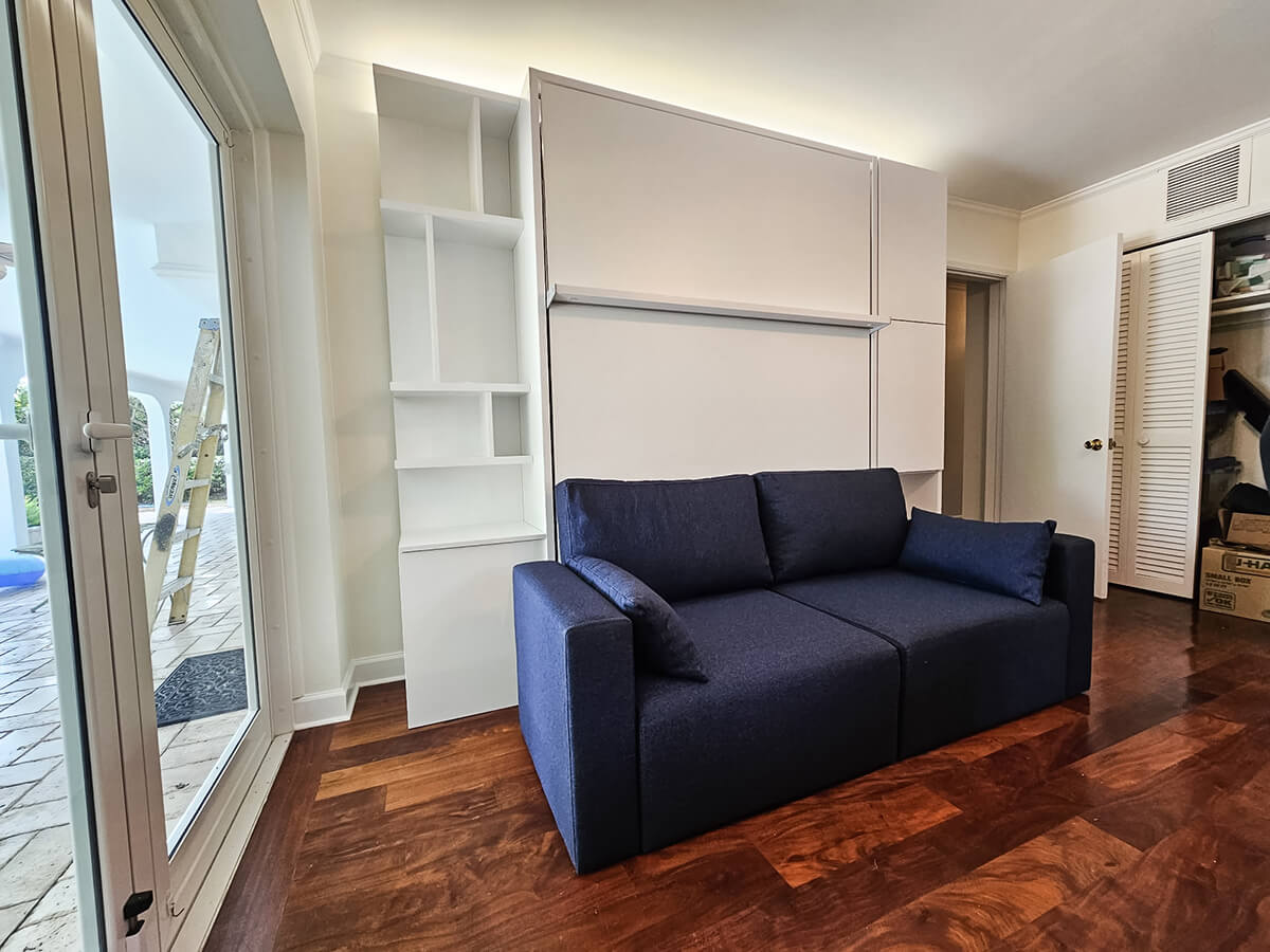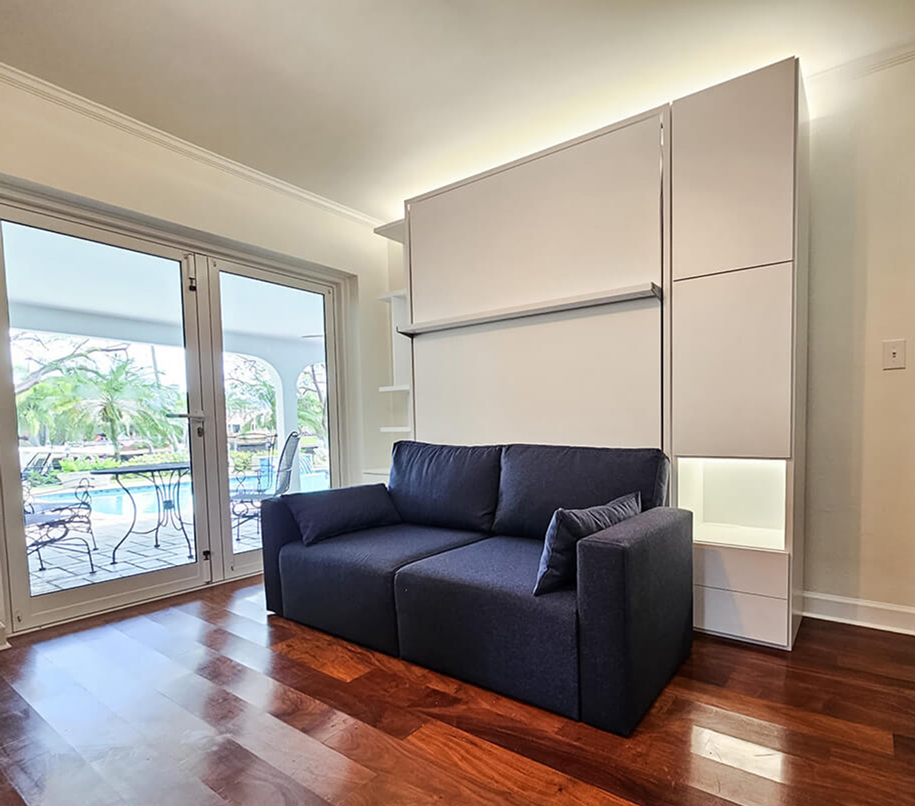 ROYAL Queen Wall Bed with Sectional Sofa and Bookcase Set