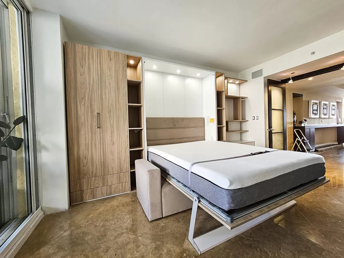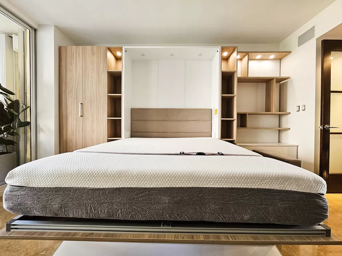 ROYAL Queen Wall Bed with Sectional Sofa and Bookcase Set
