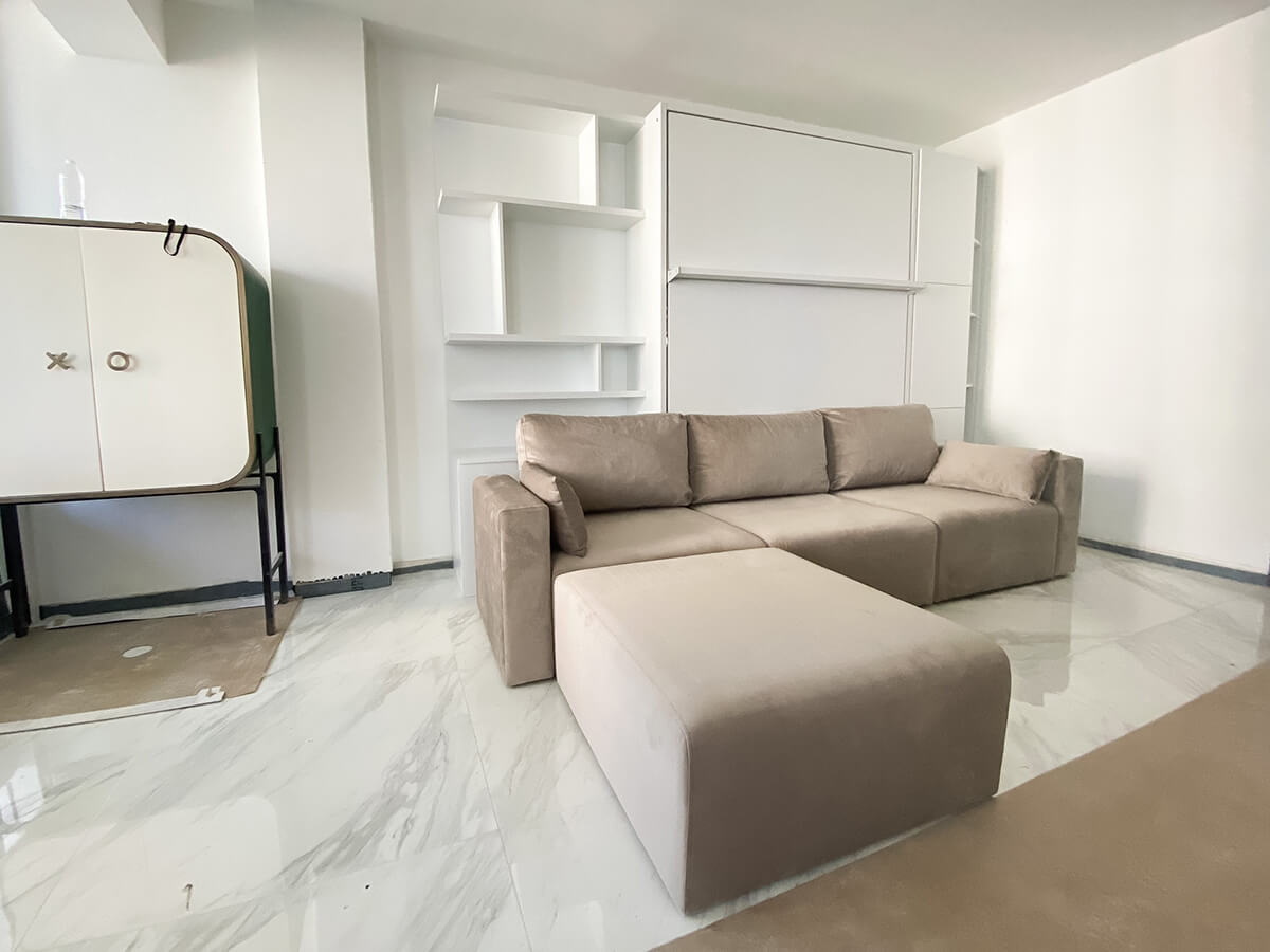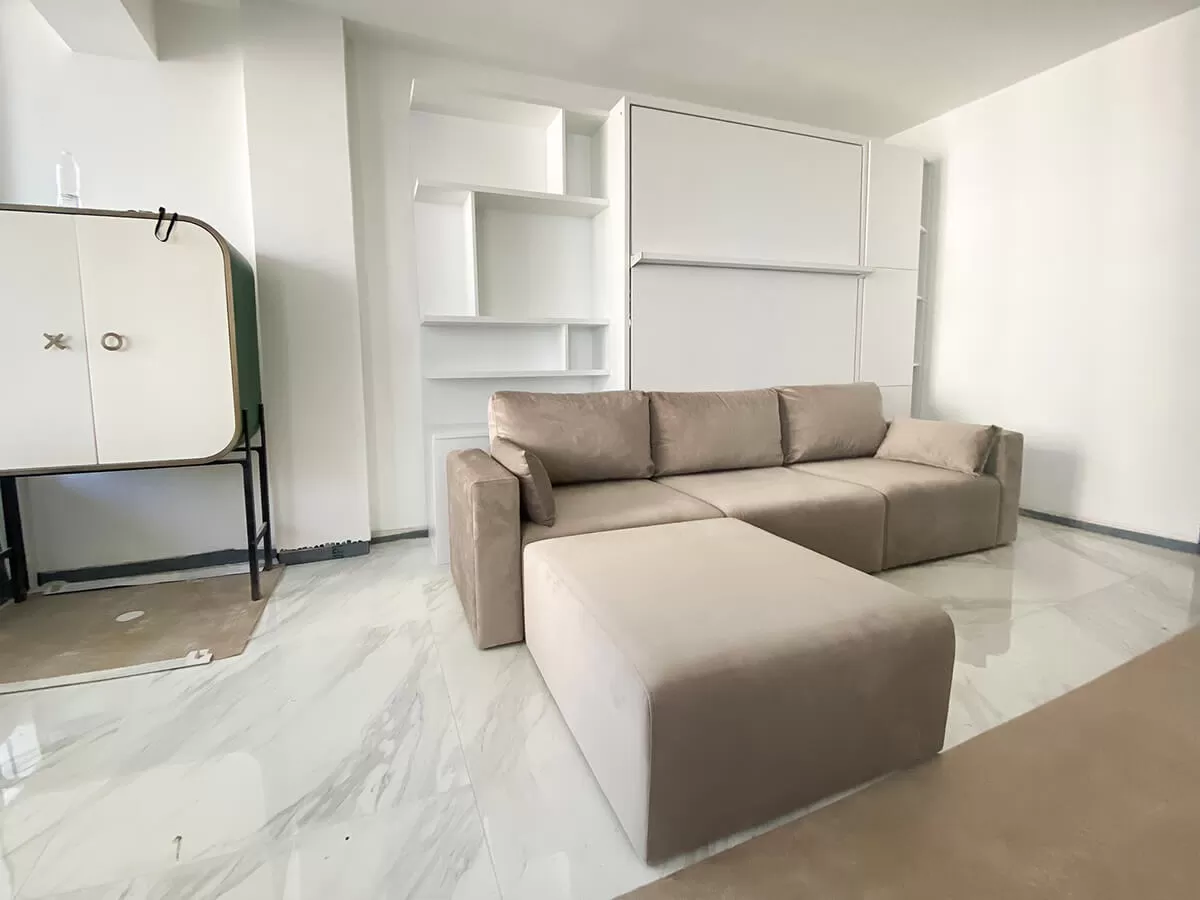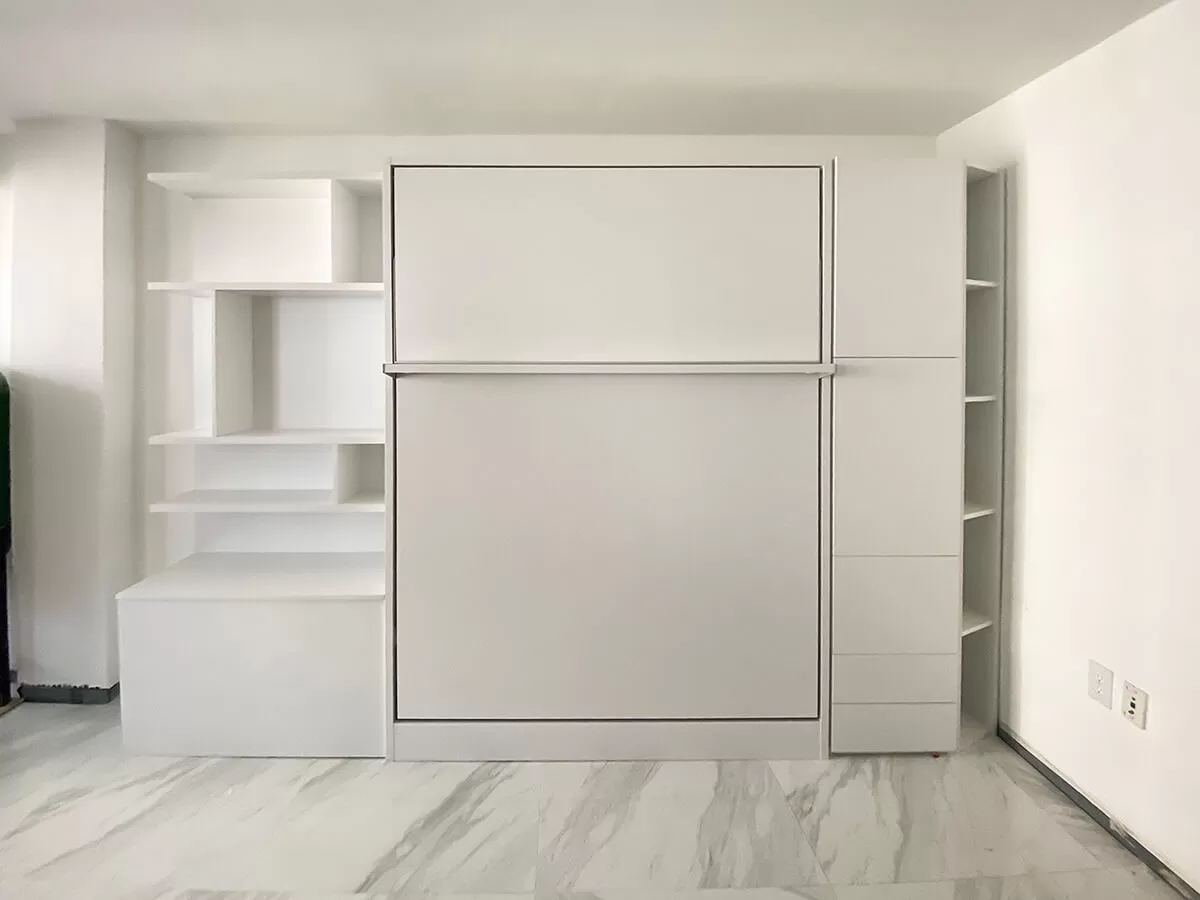 ROYAL Queen Wall Bed with Sectional Sofa and Bookcase Set