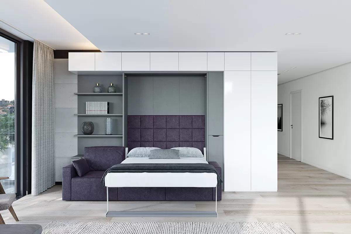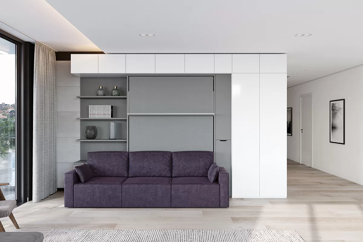 ROYAL Queen Wall Bed with Sectional Sofa and Bookcase Set