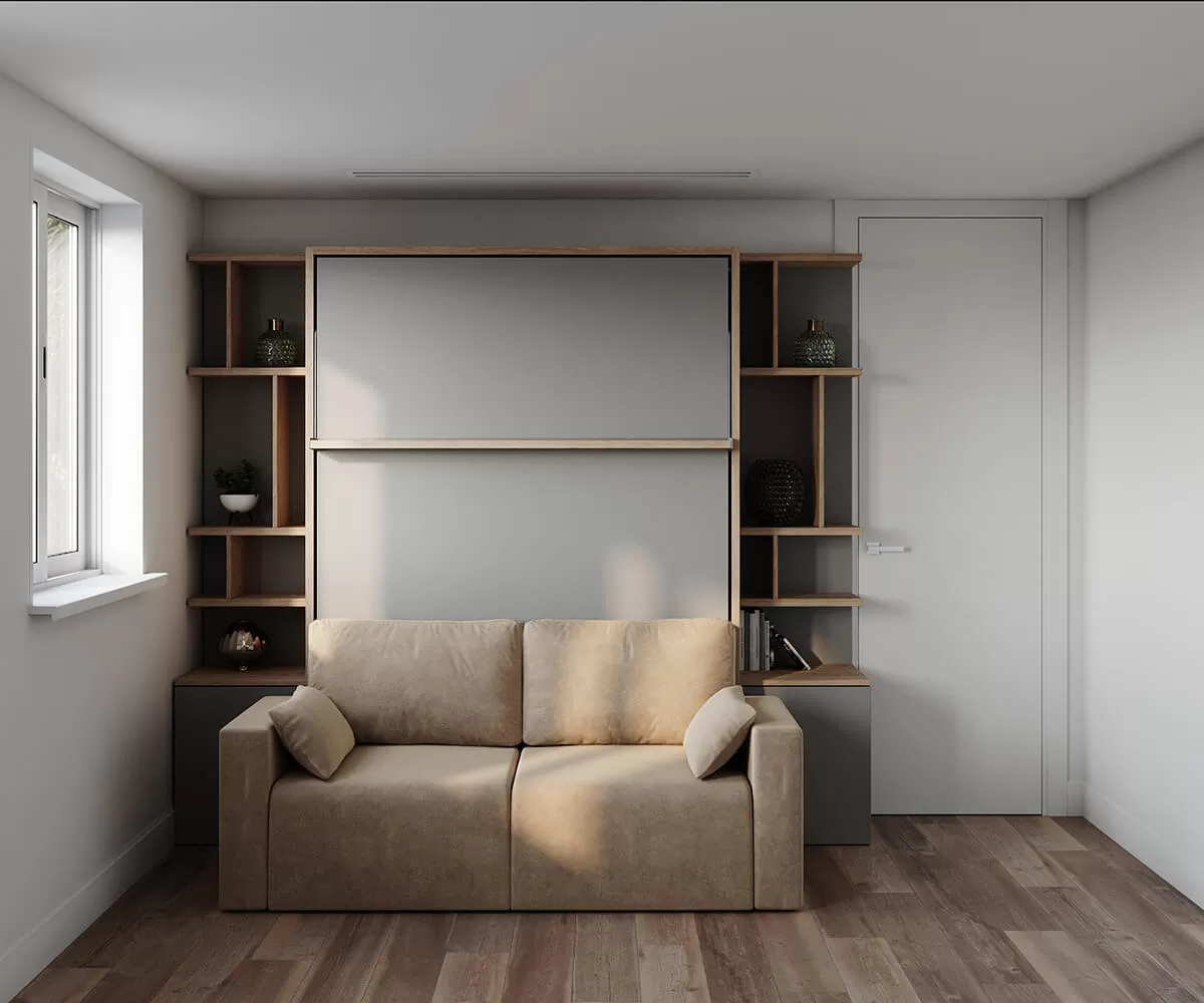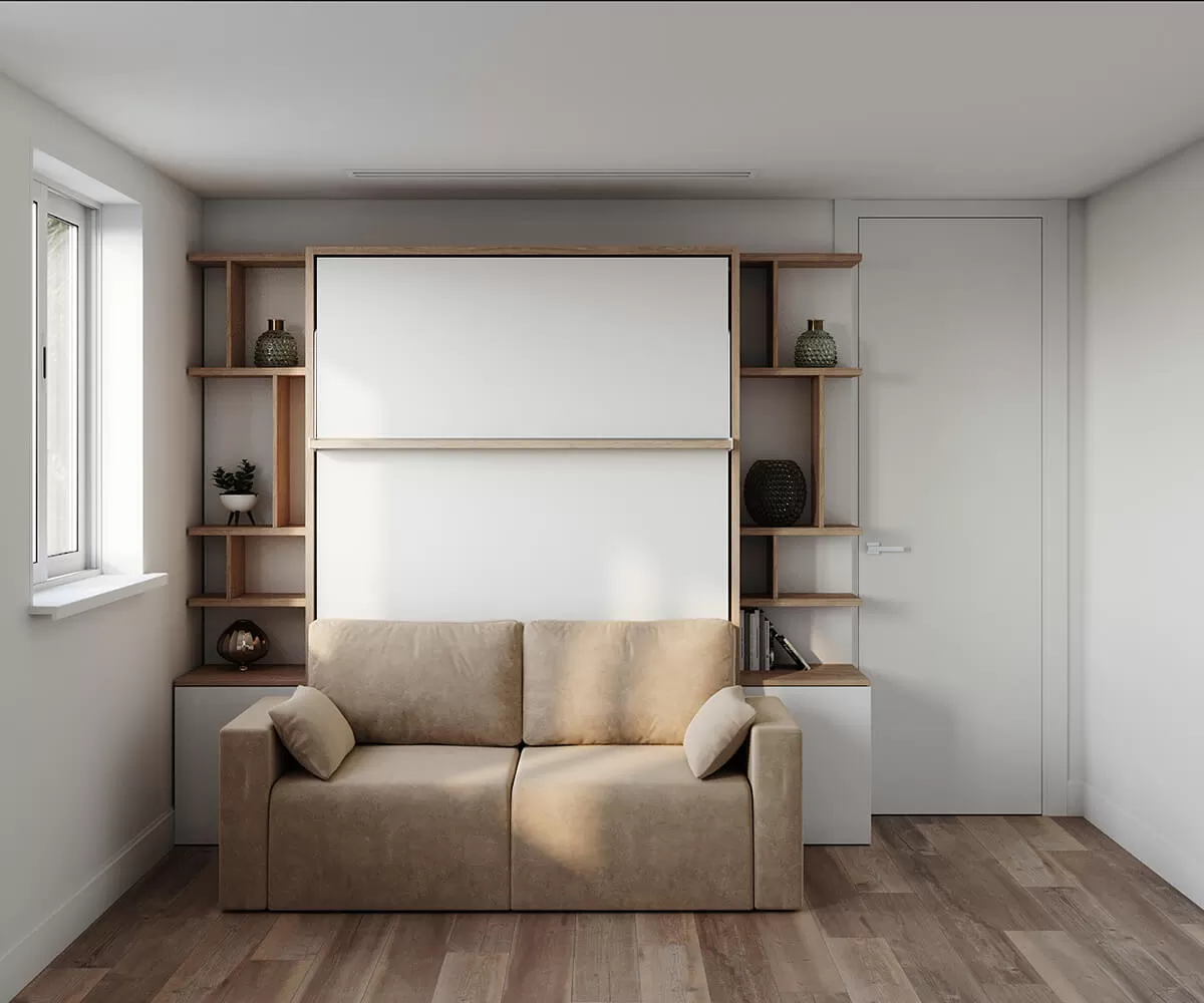 ROYAL Queen Wall Bed with Sectional Sofa and Bookcase Set