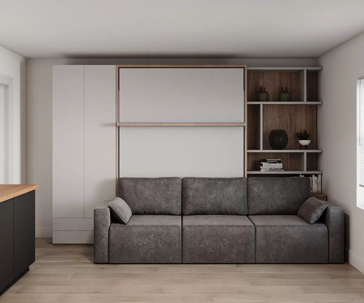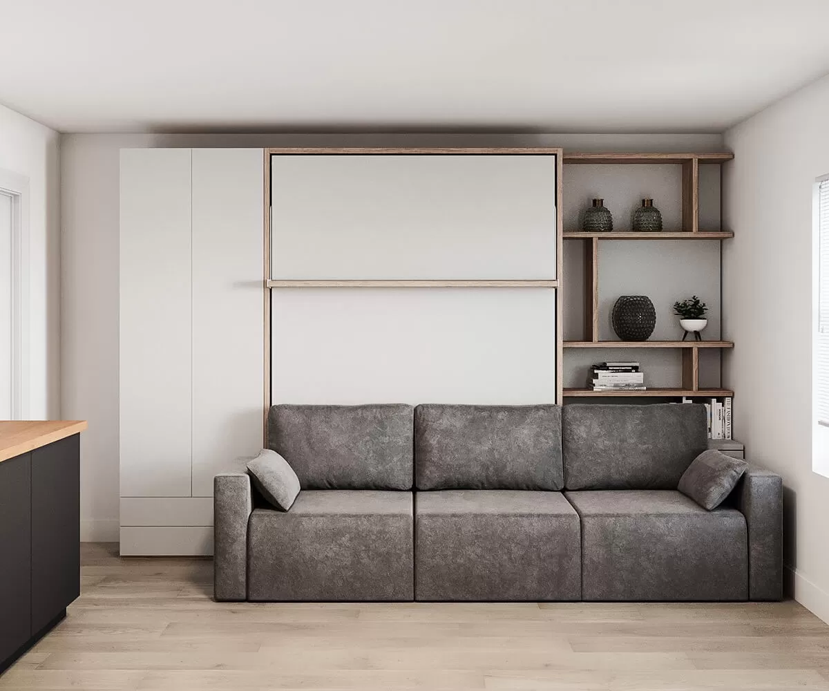 ROYAL Queen Wall Bed with Sectional Sofa and Bookcase Set
