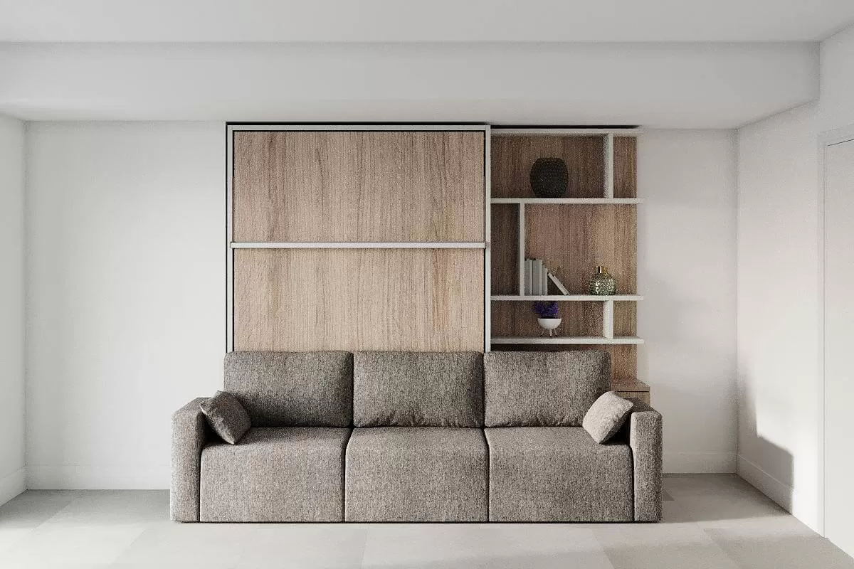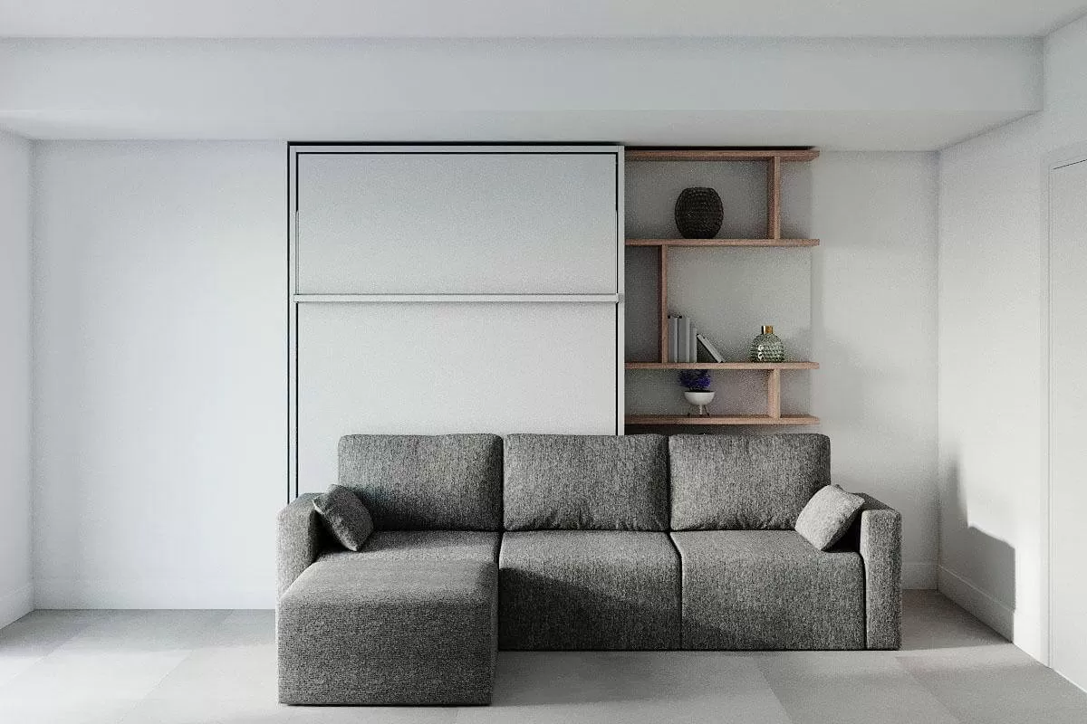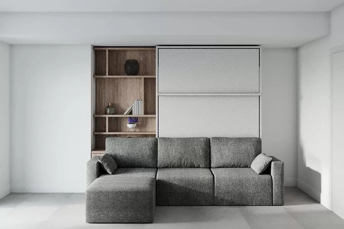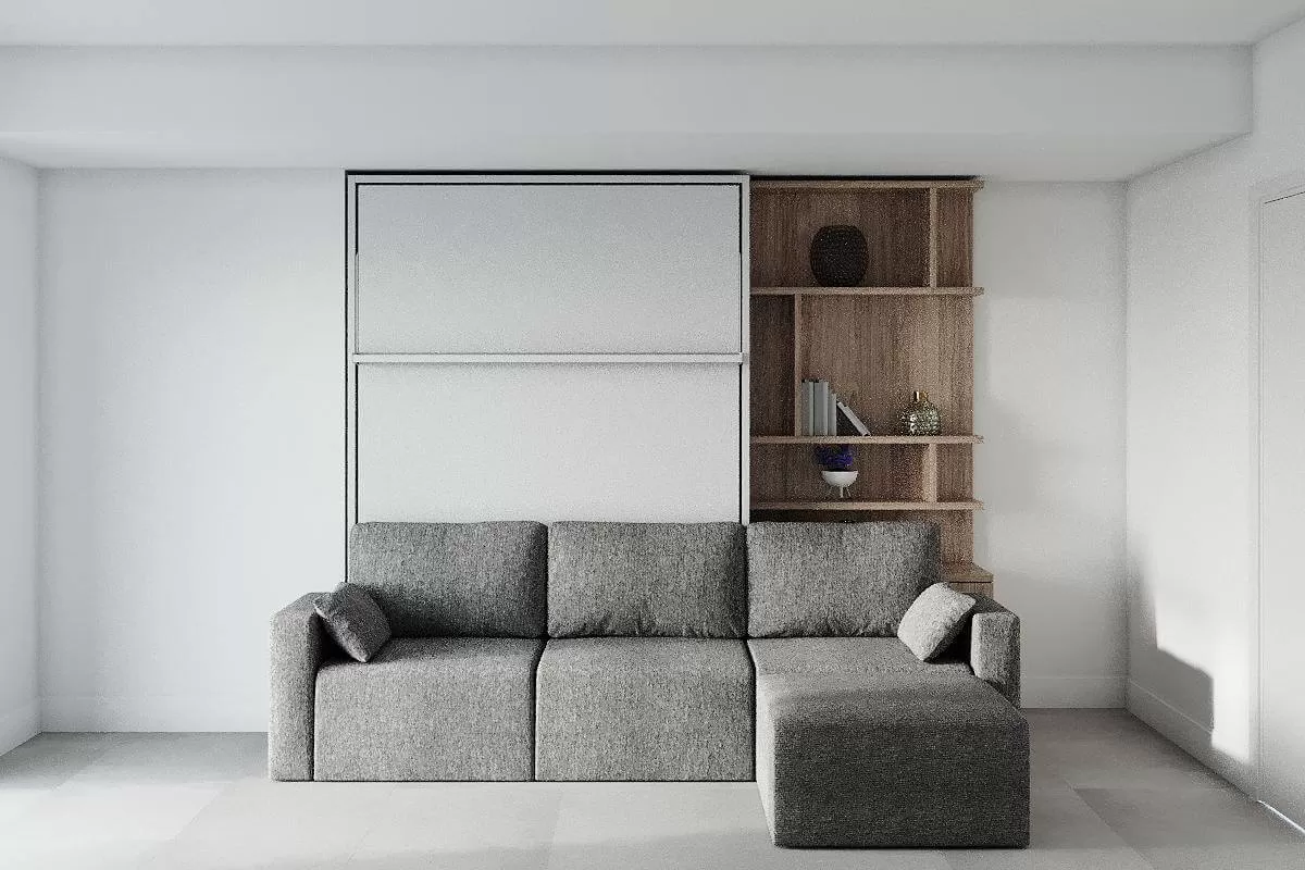 ROYAL Queen Wall Bed with Sectional Sofa and Bookcase Set