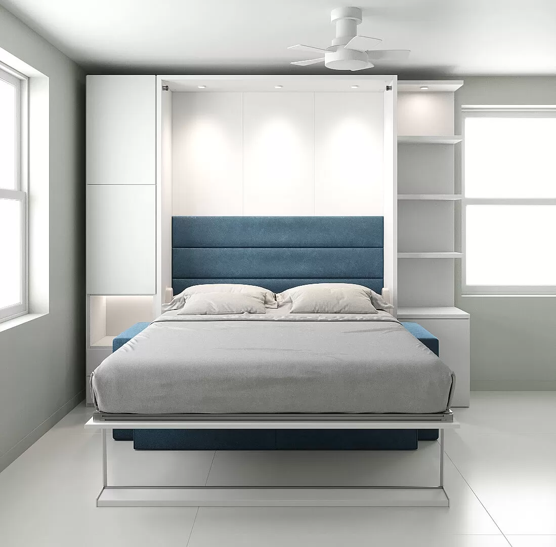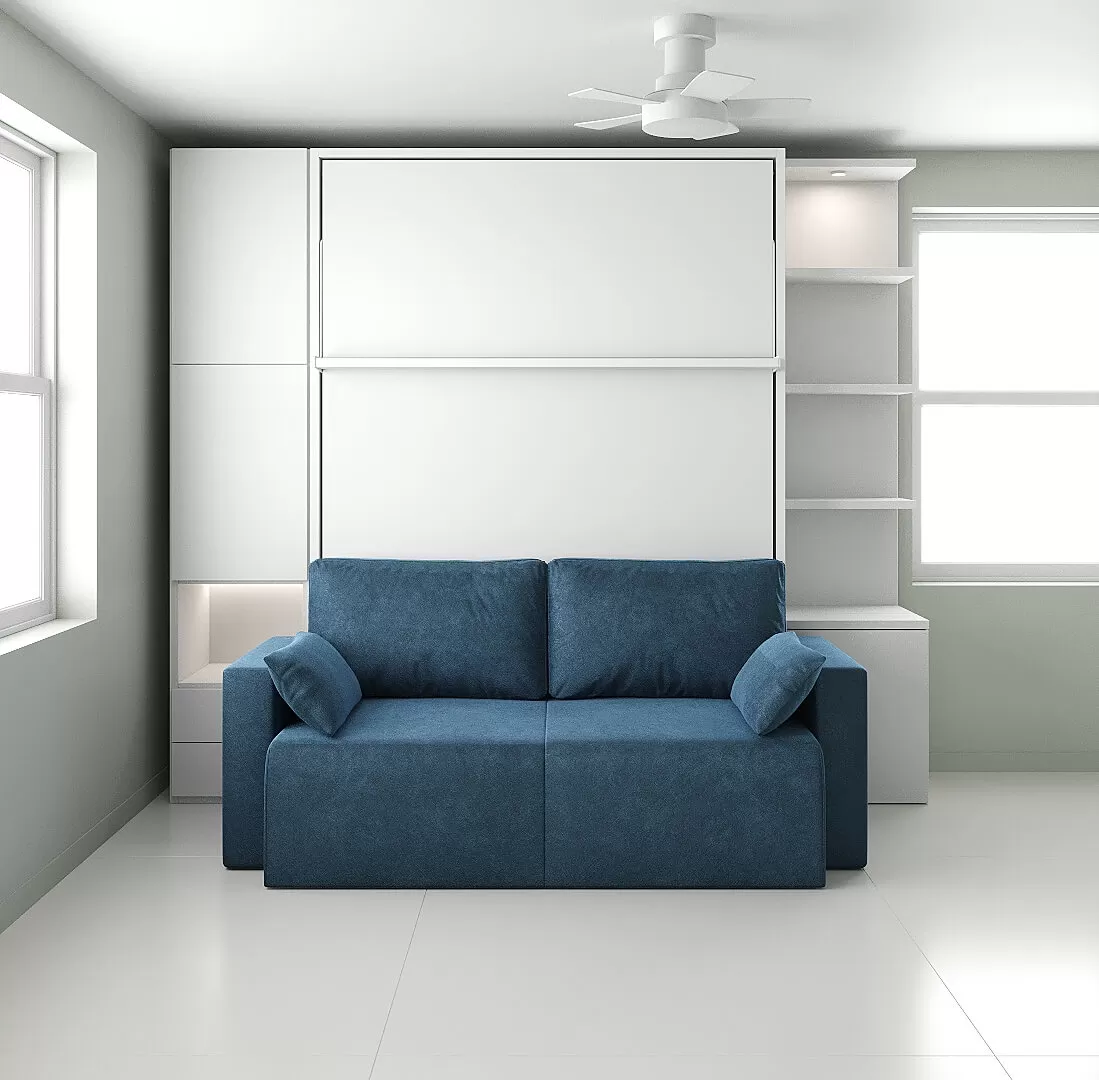 ROYAL Queen Wall Bed with Sectional Sofa and Bookcase Set