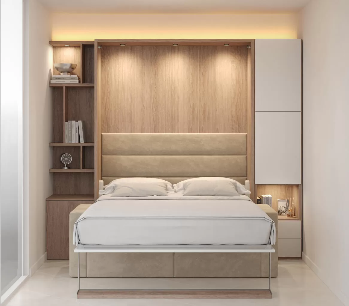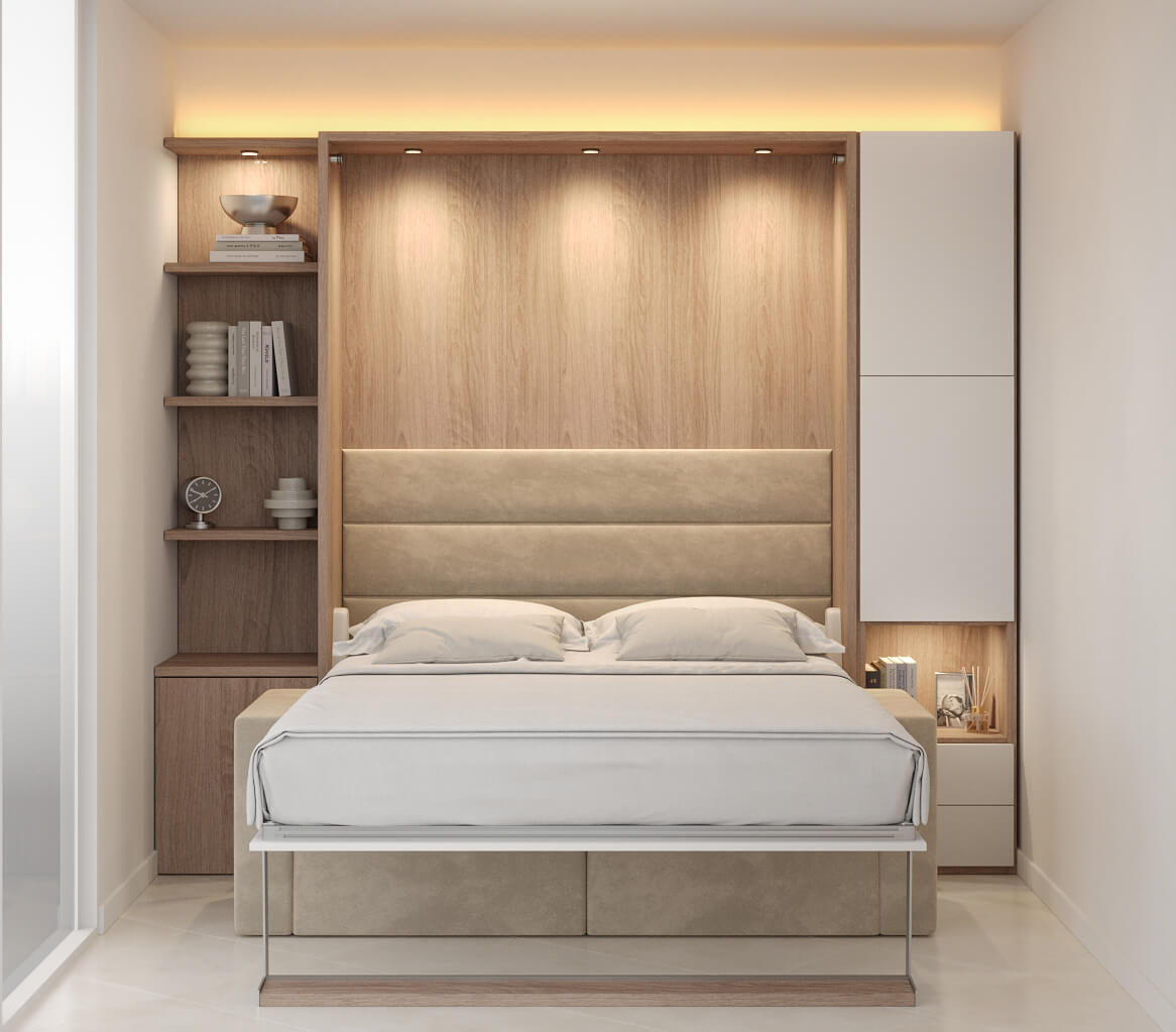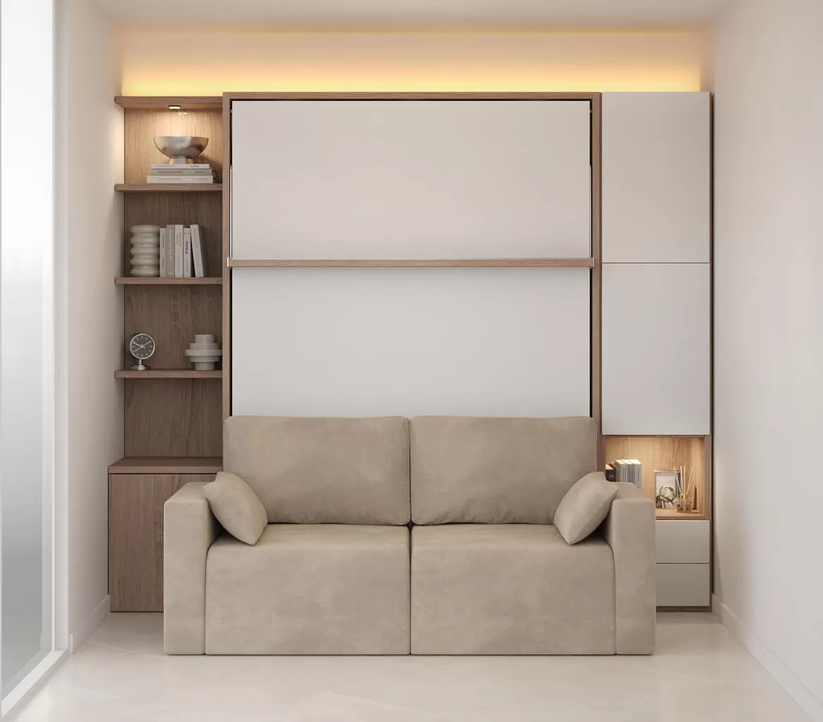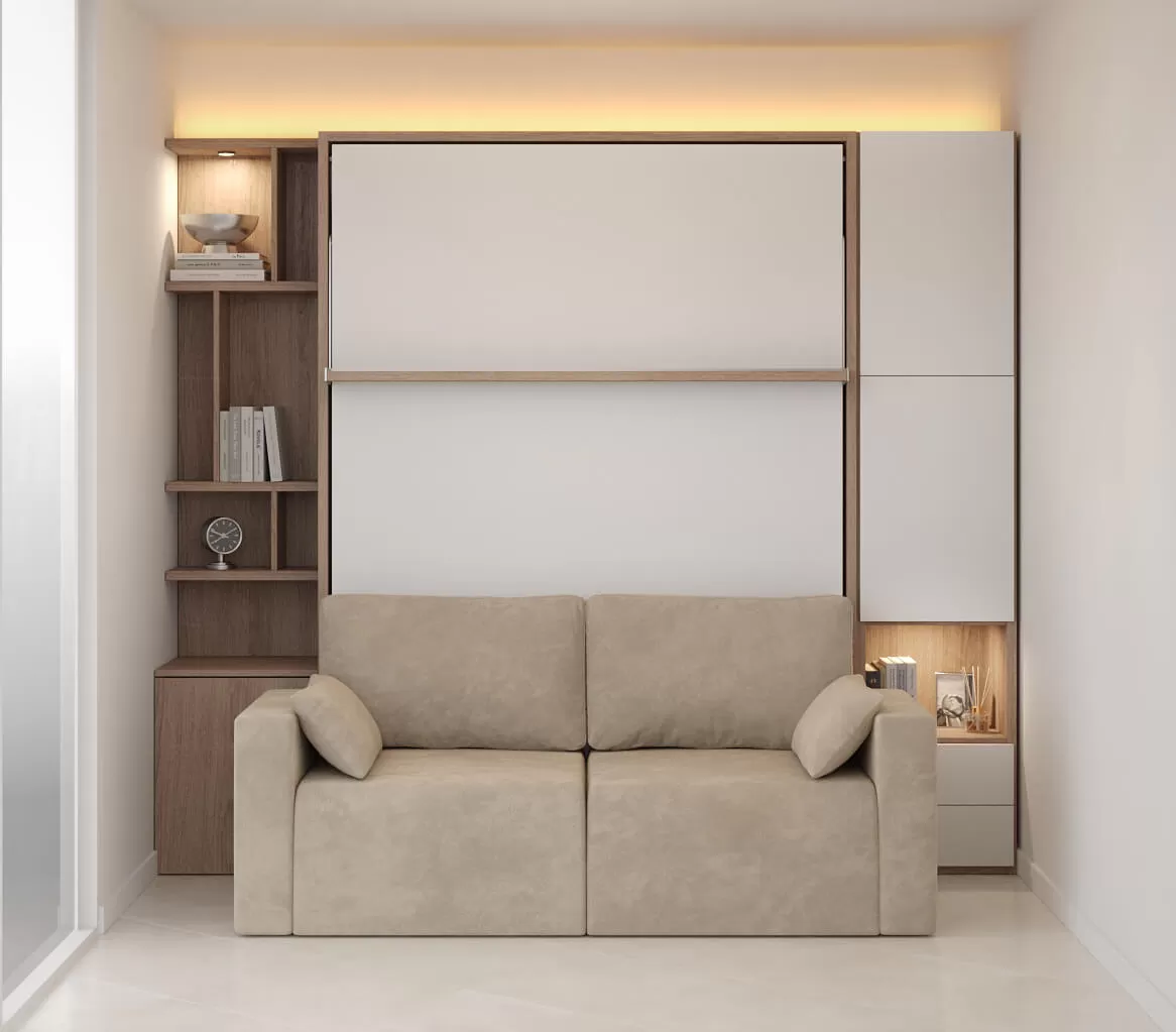ROYAL Queen Wall Bed with Sectional Sofa and Bookcase Set