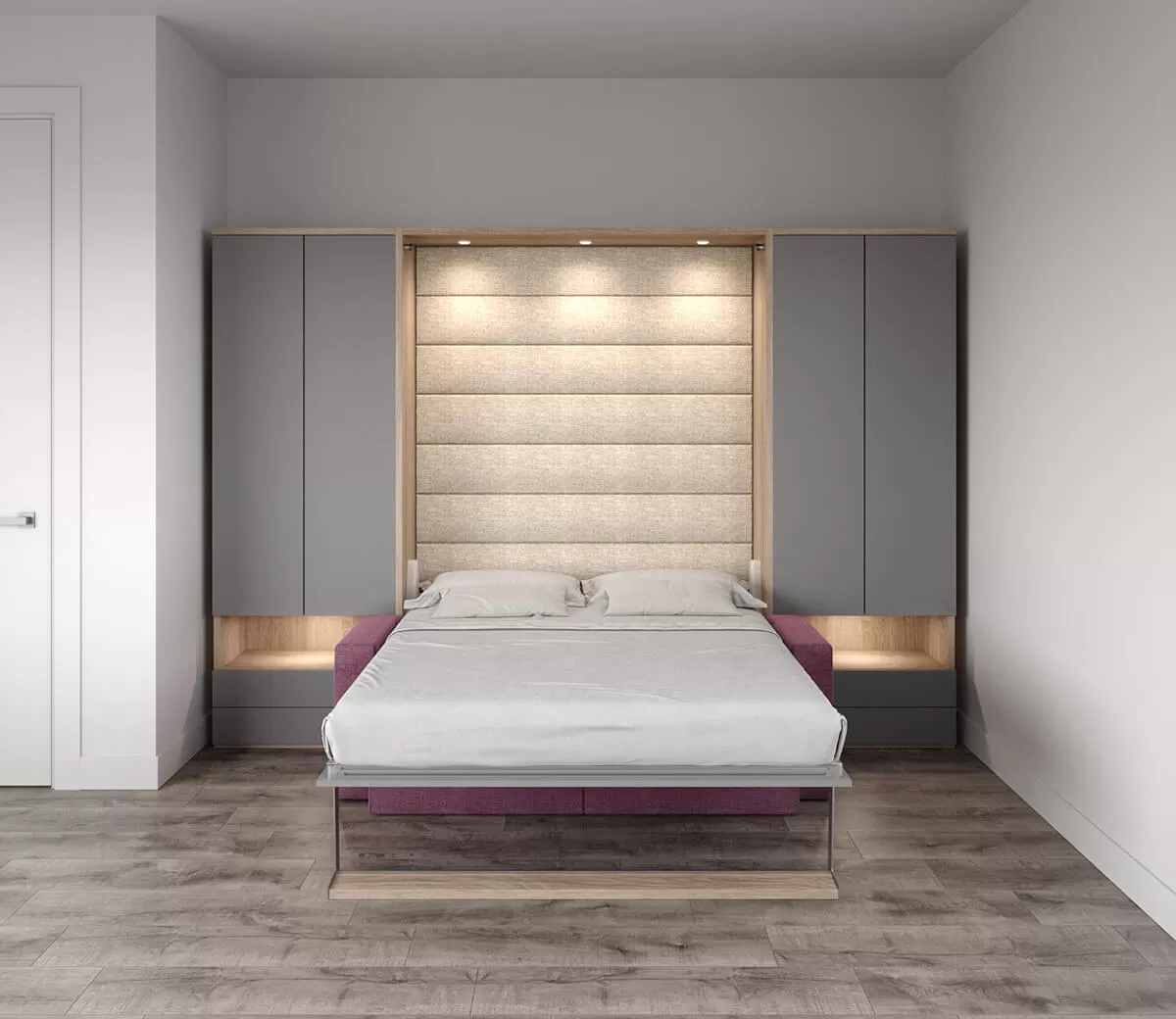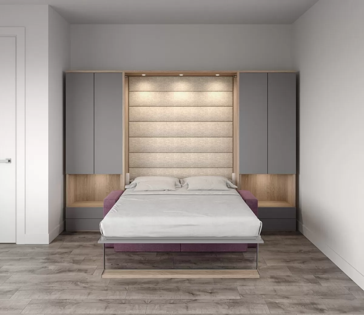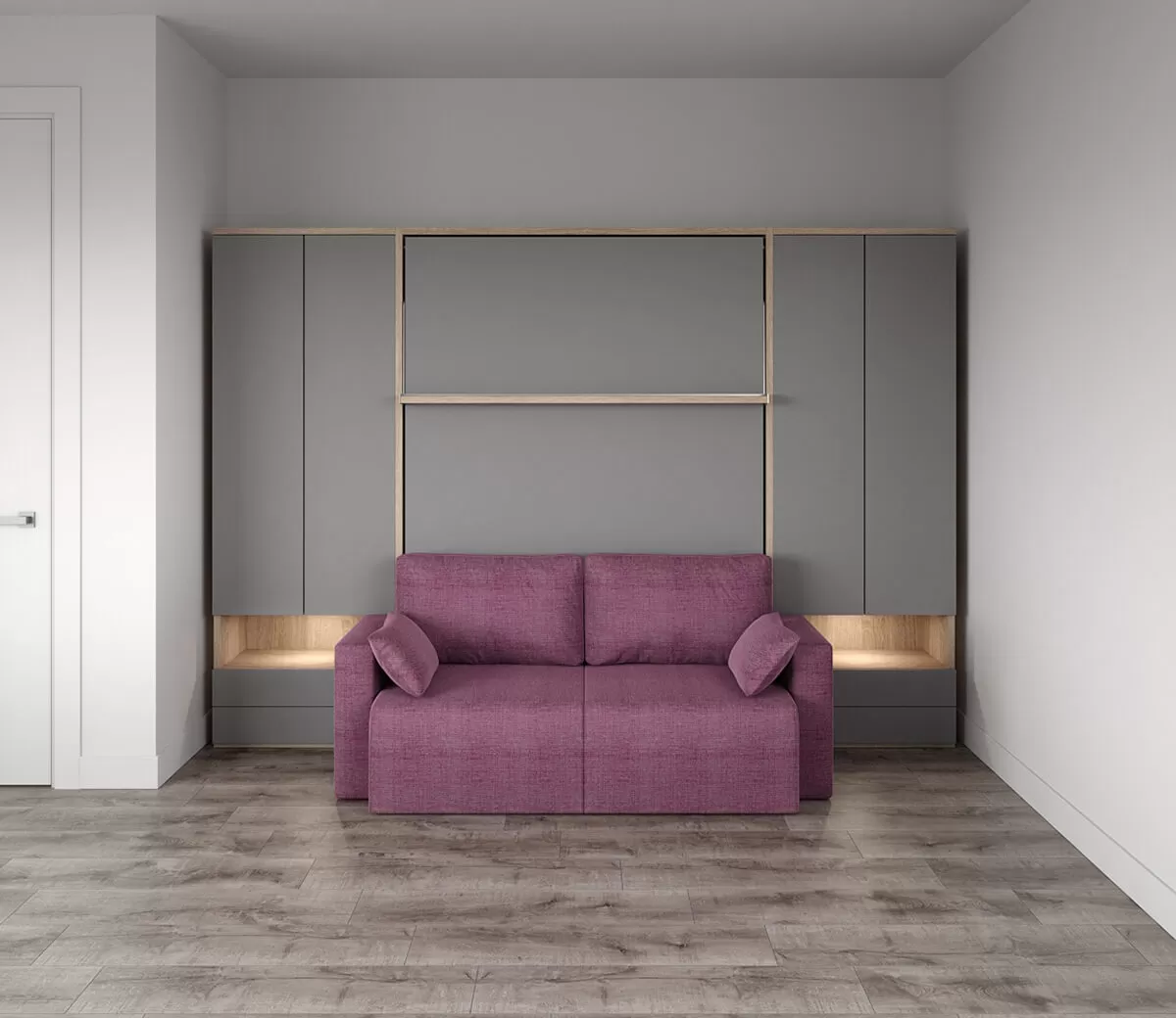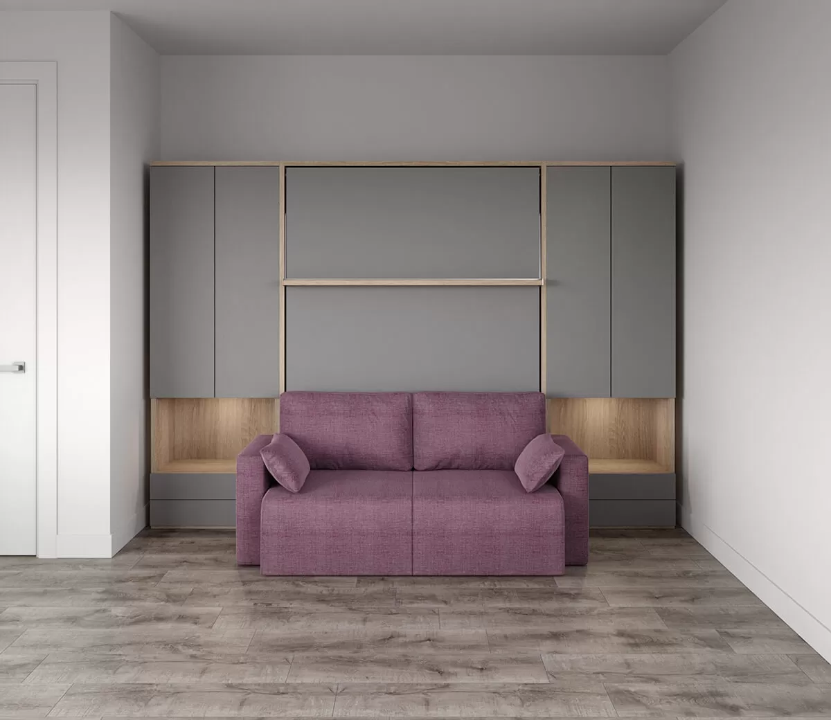 ROYAL Queen Wall Bed with Sectional Sofa and Bookcase Set