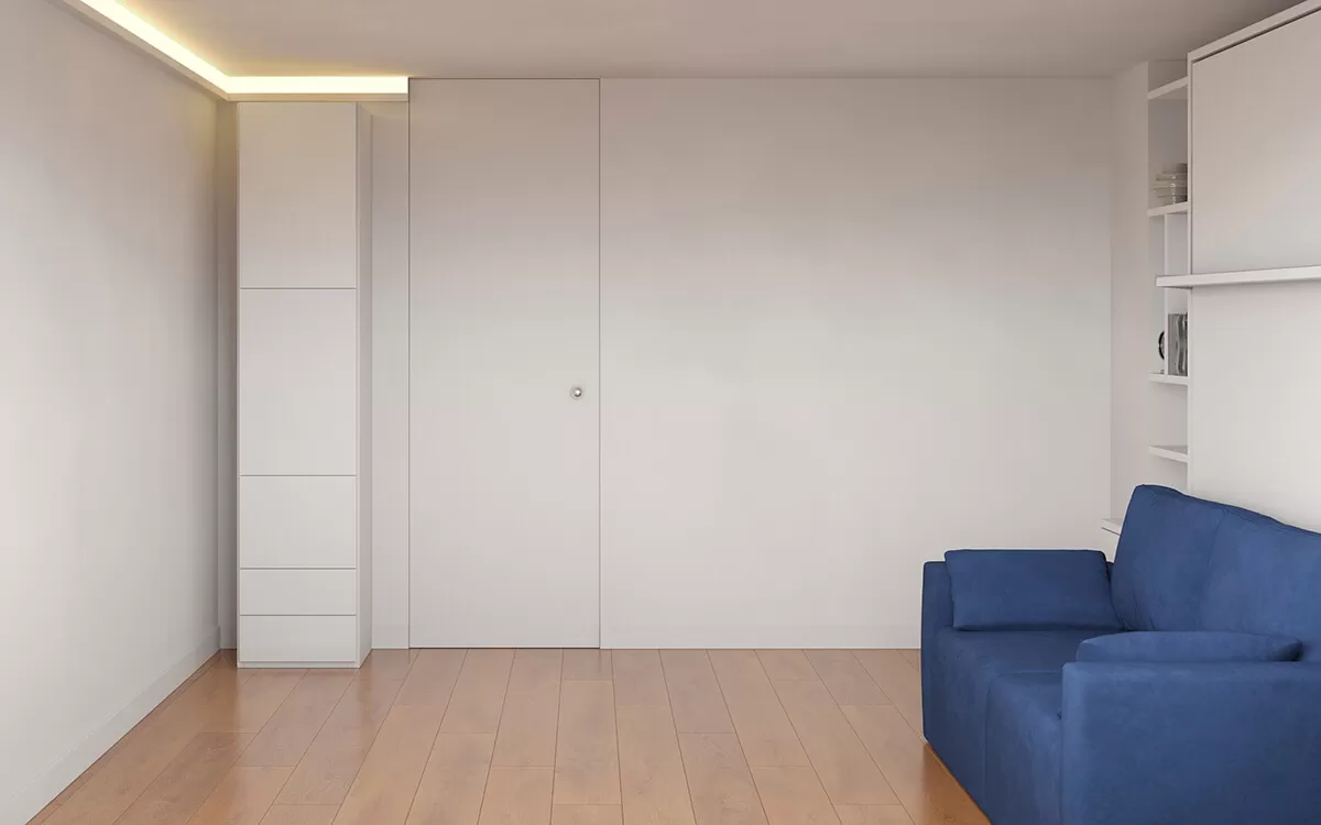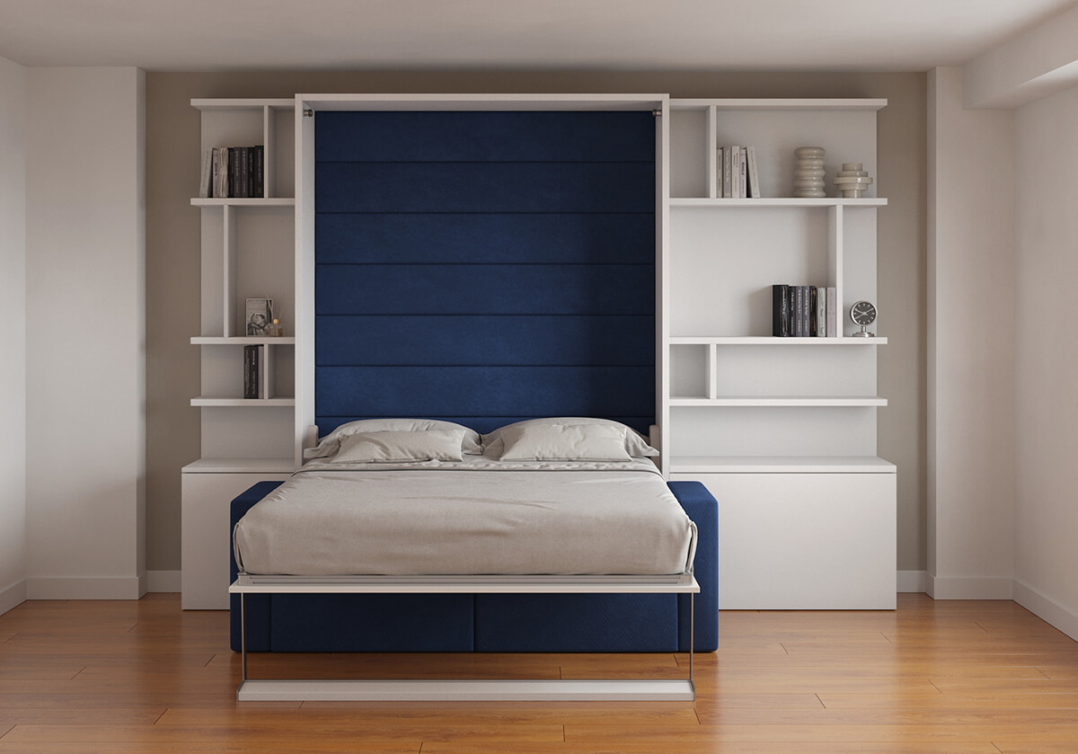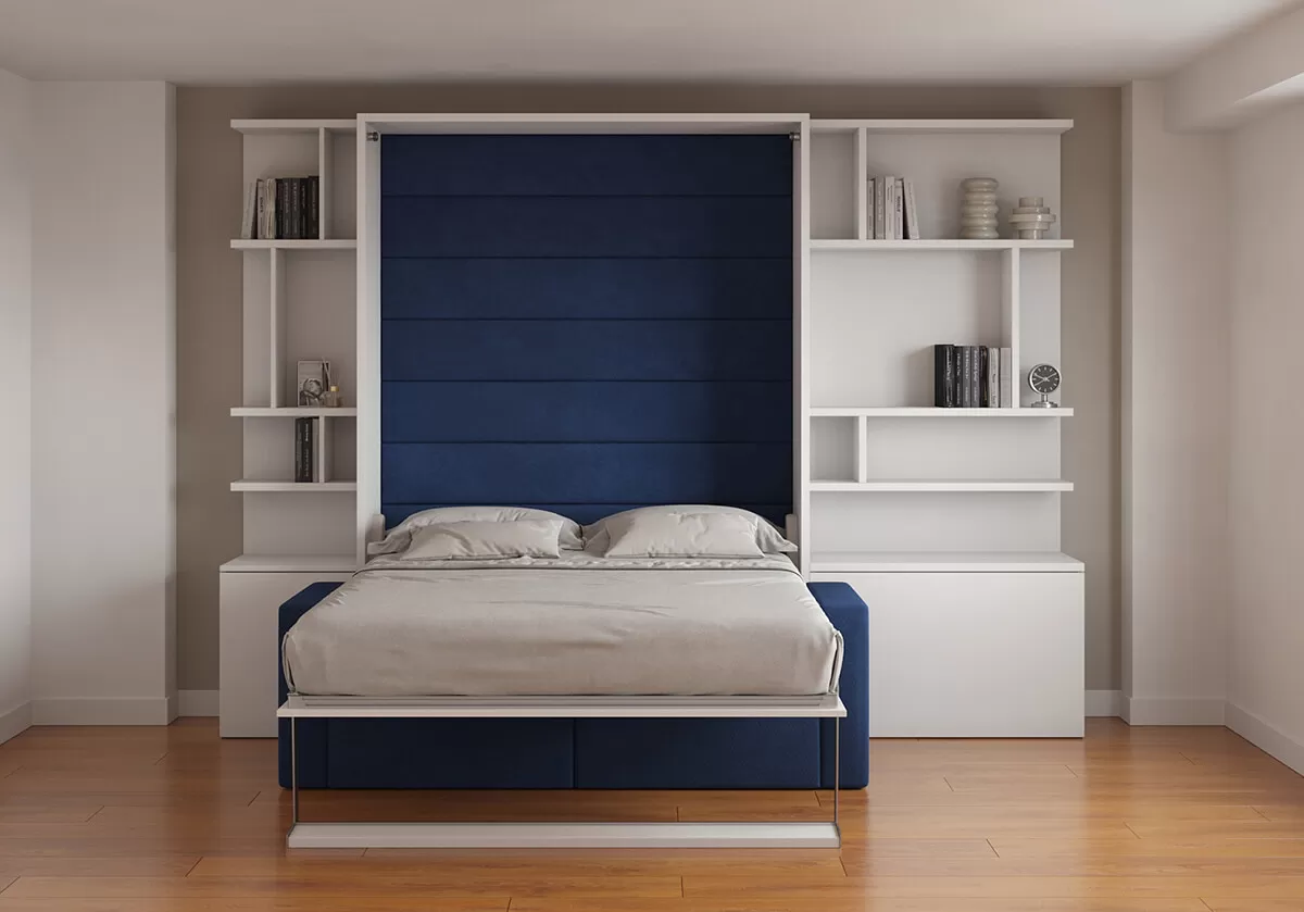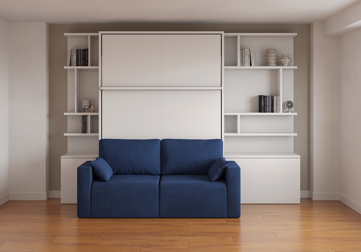 ROYAL Queen Wall Bed with Sectional Sofa and Bookcase Set