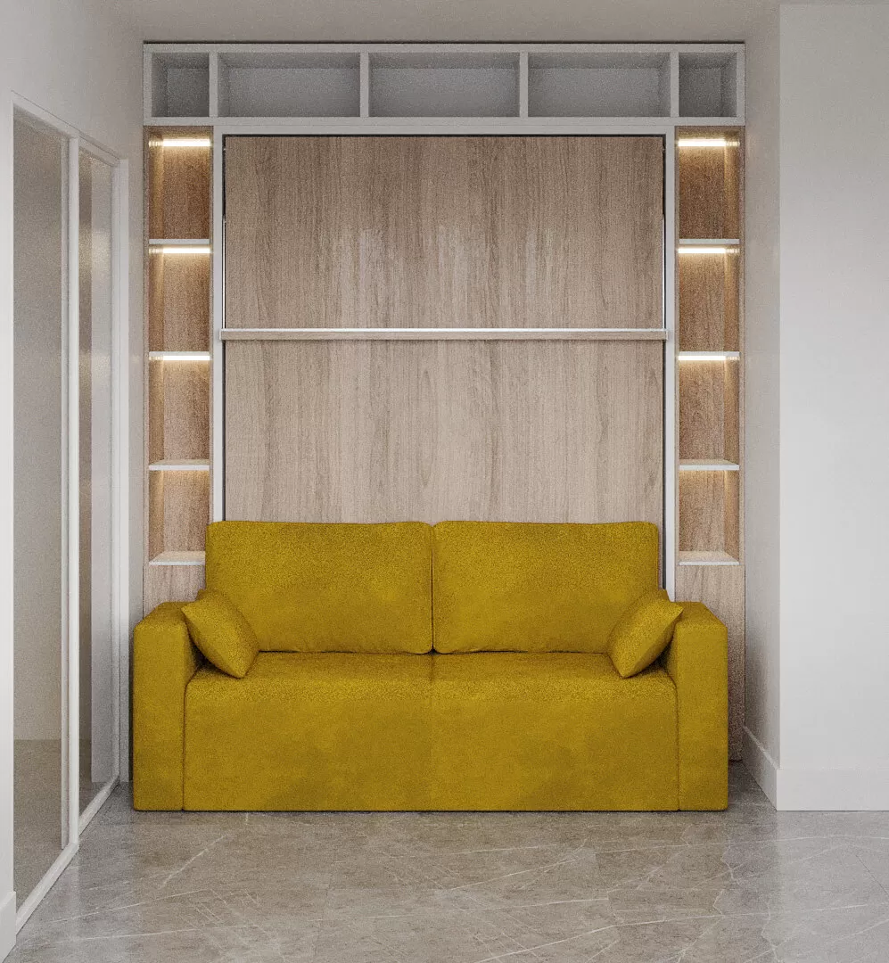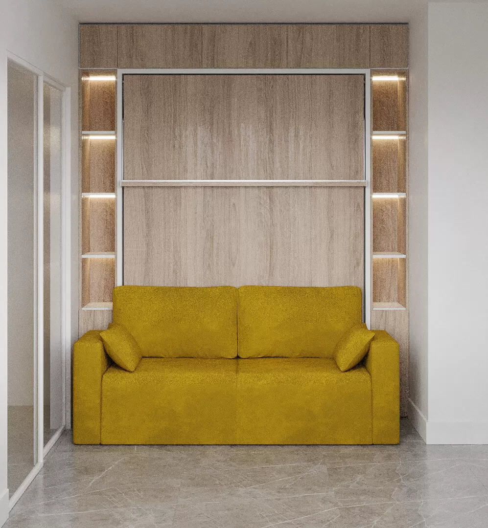 ROYAL Queen Wall Bed with Sectional Sofa and Bookcase Set