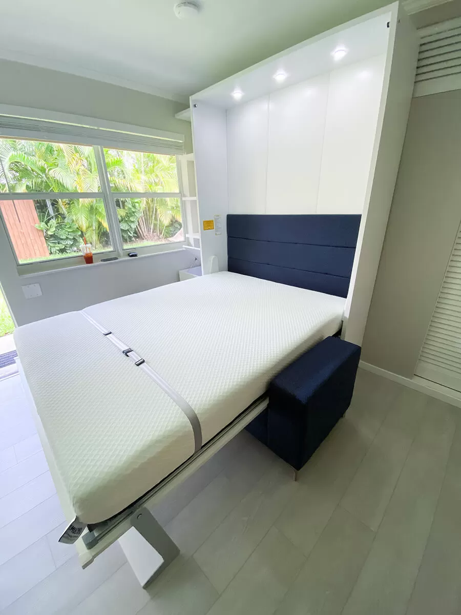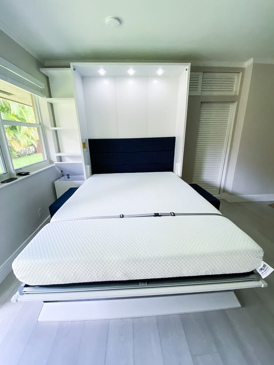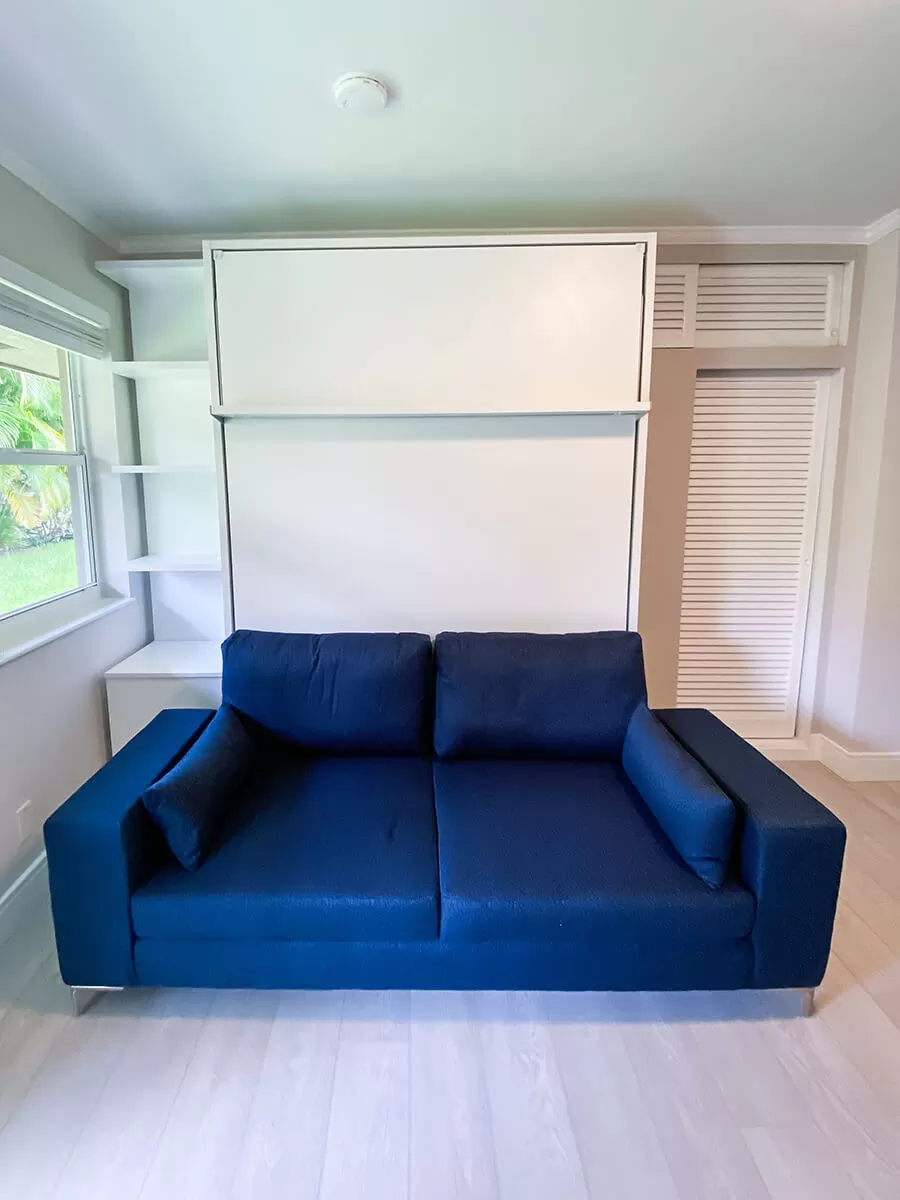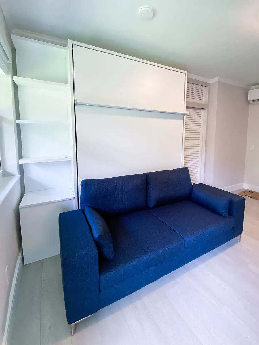 ROYAL Queen Wall Bed with Sectional Sofa and Bookcases