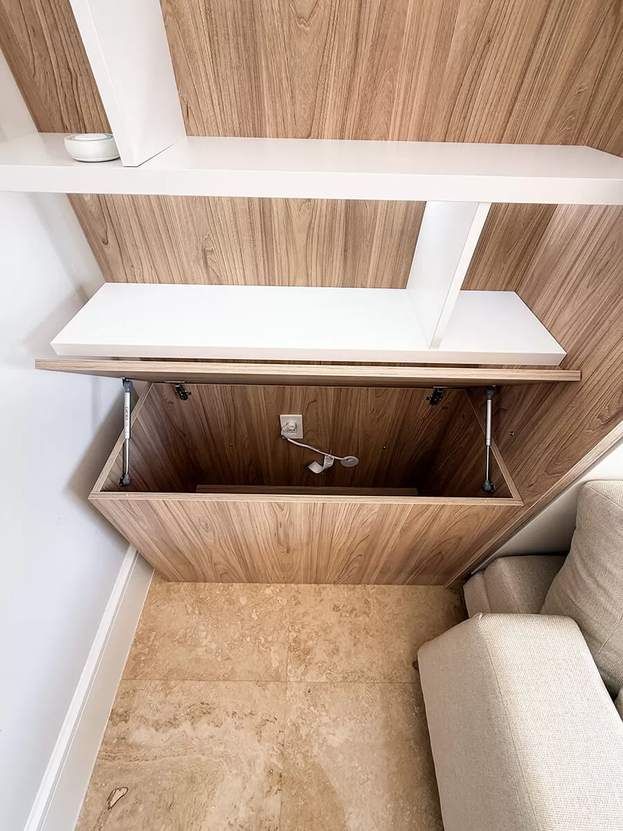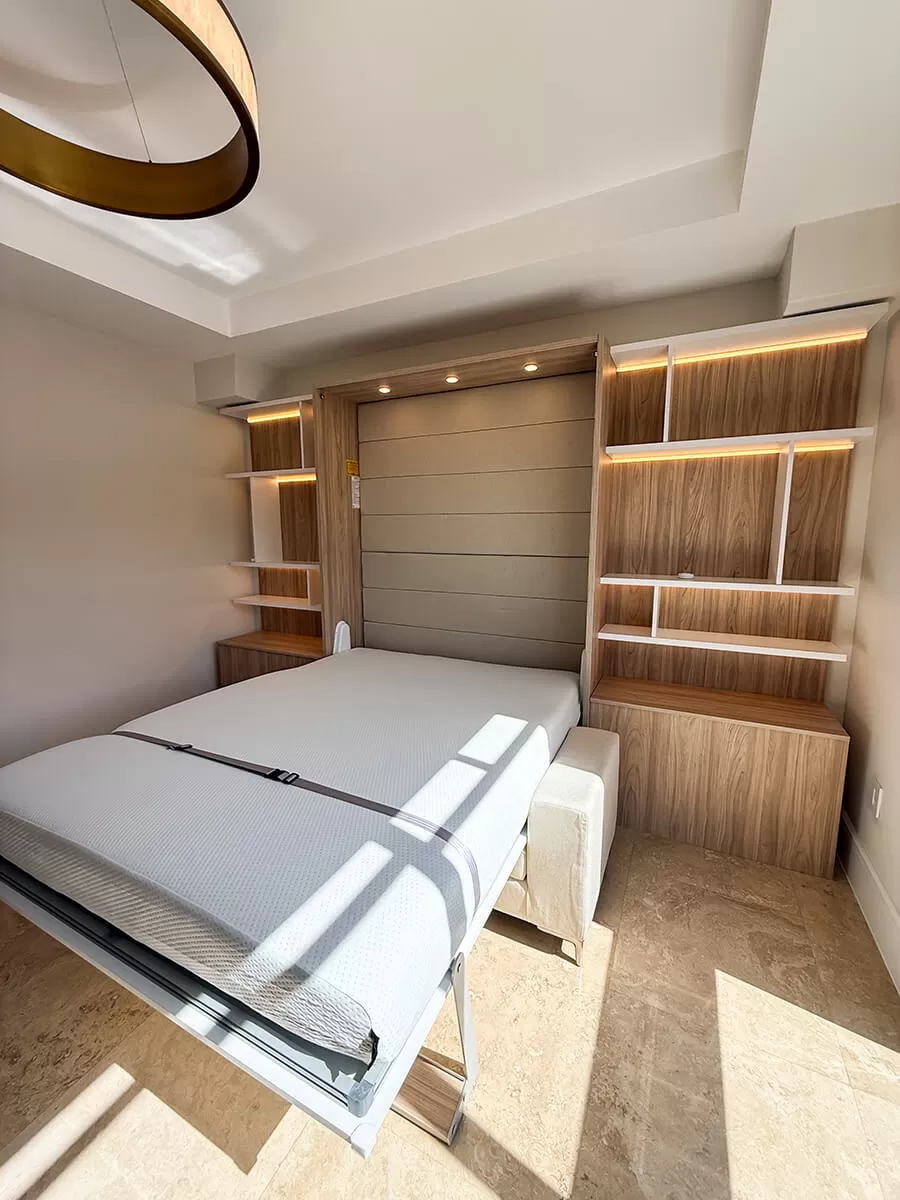 ROYAL Queen Wall Bed with Sectional Sofa and Bookcases