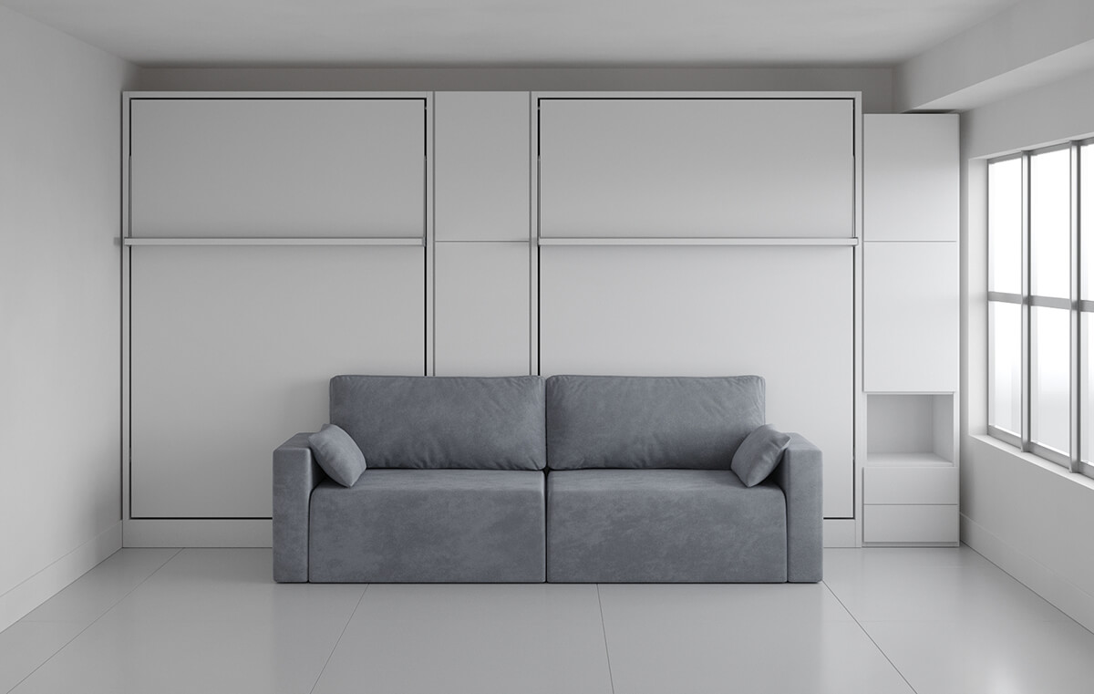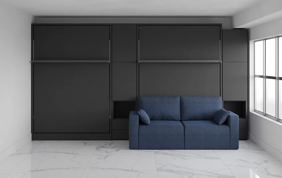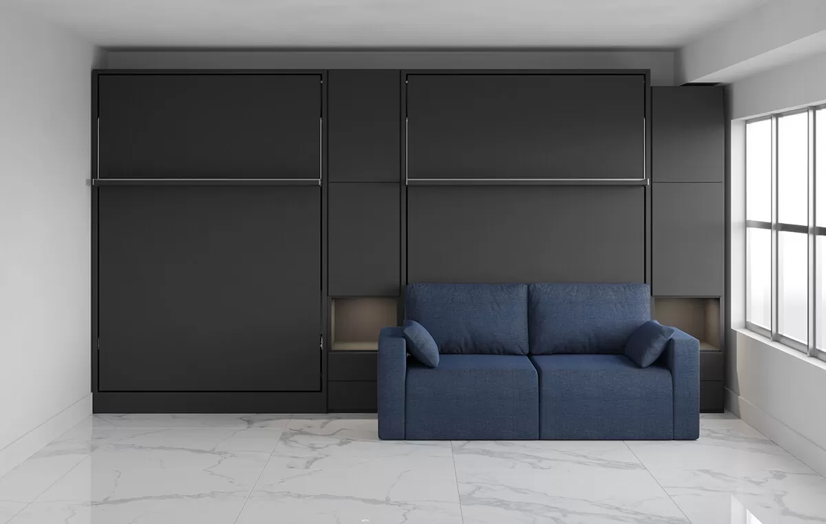 ROYAL Queen Wall Bed with Sectional Sofa and Convertible Wardrobes