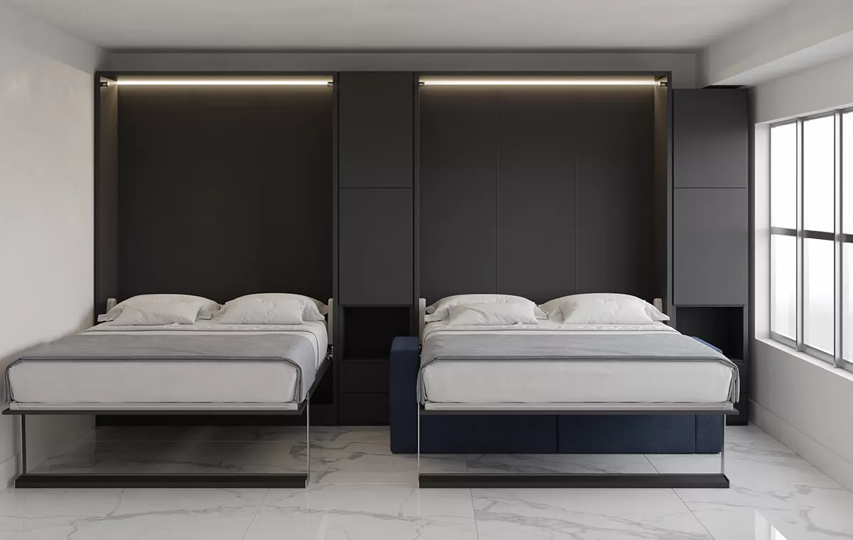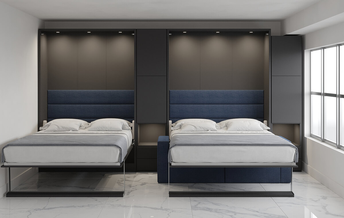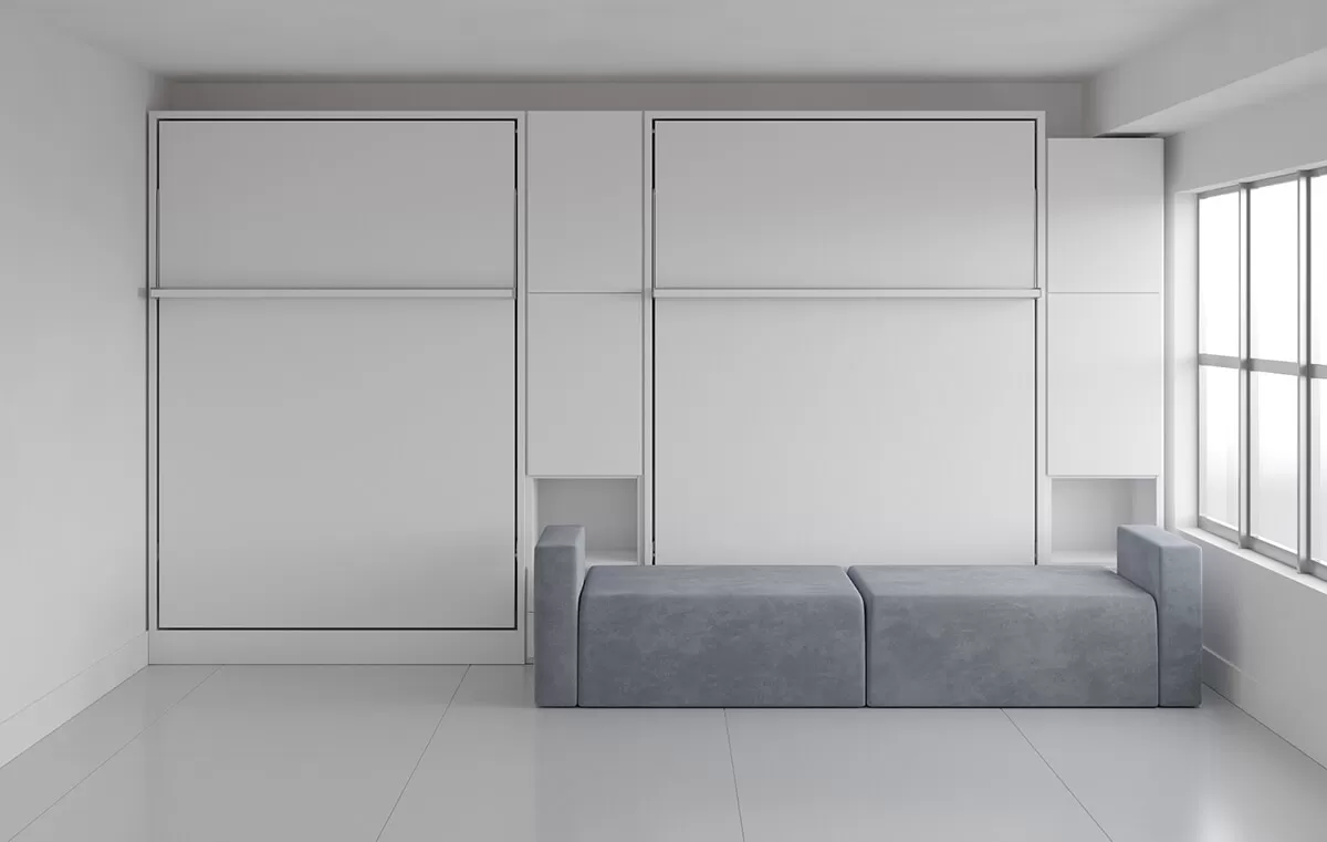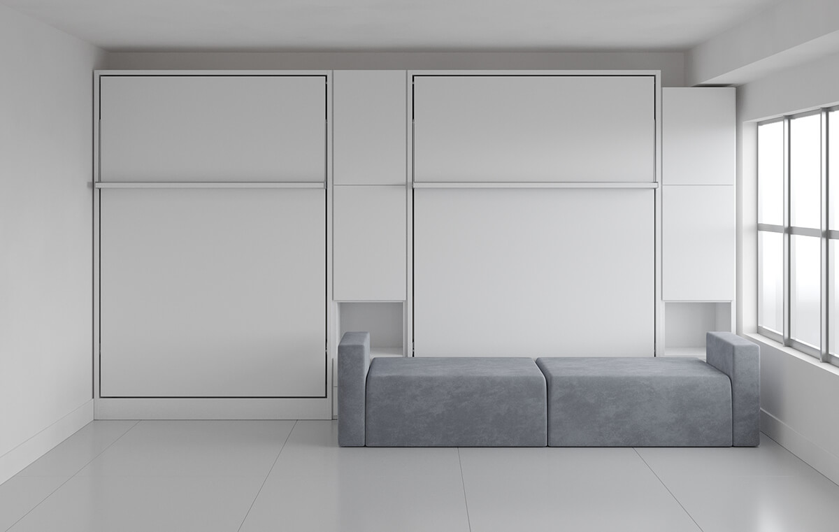 ROYAL Queen Wall Bed with Sectional Sofa and Convertible Wardrobes