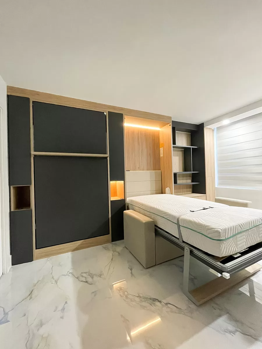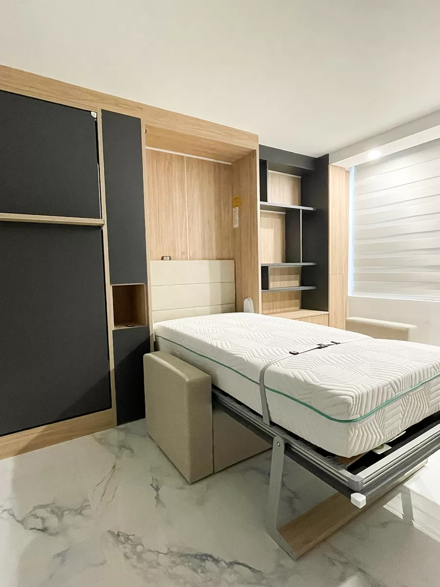 ROYAL Queen Wall Bed with Sectional Sofa and Wardrobe