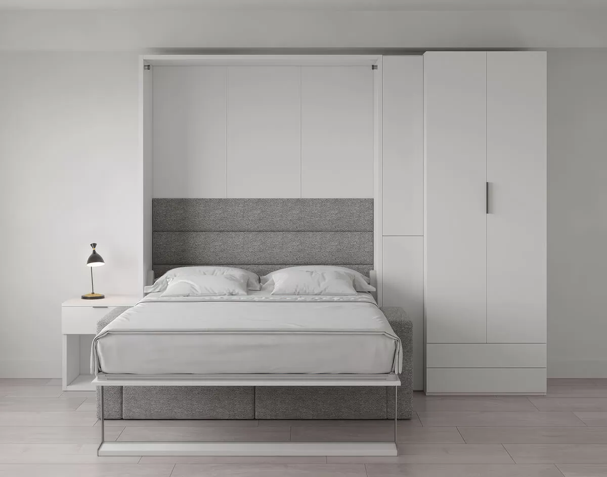 Royal Queen Wall Bed with Sectional Sofa and Wardrobes