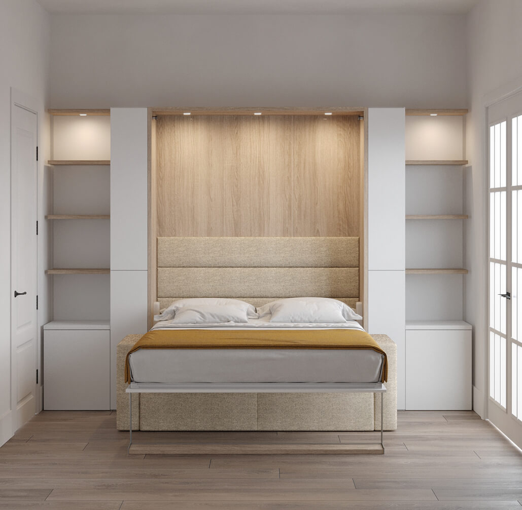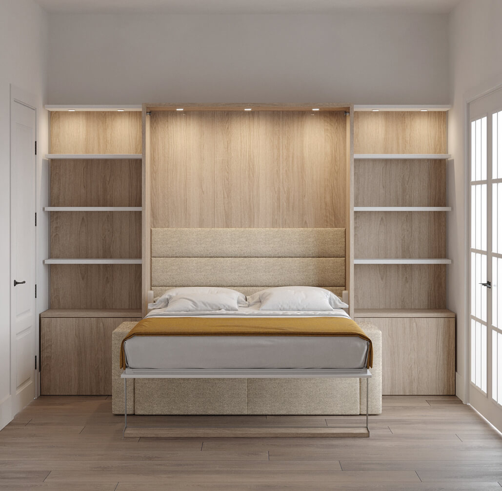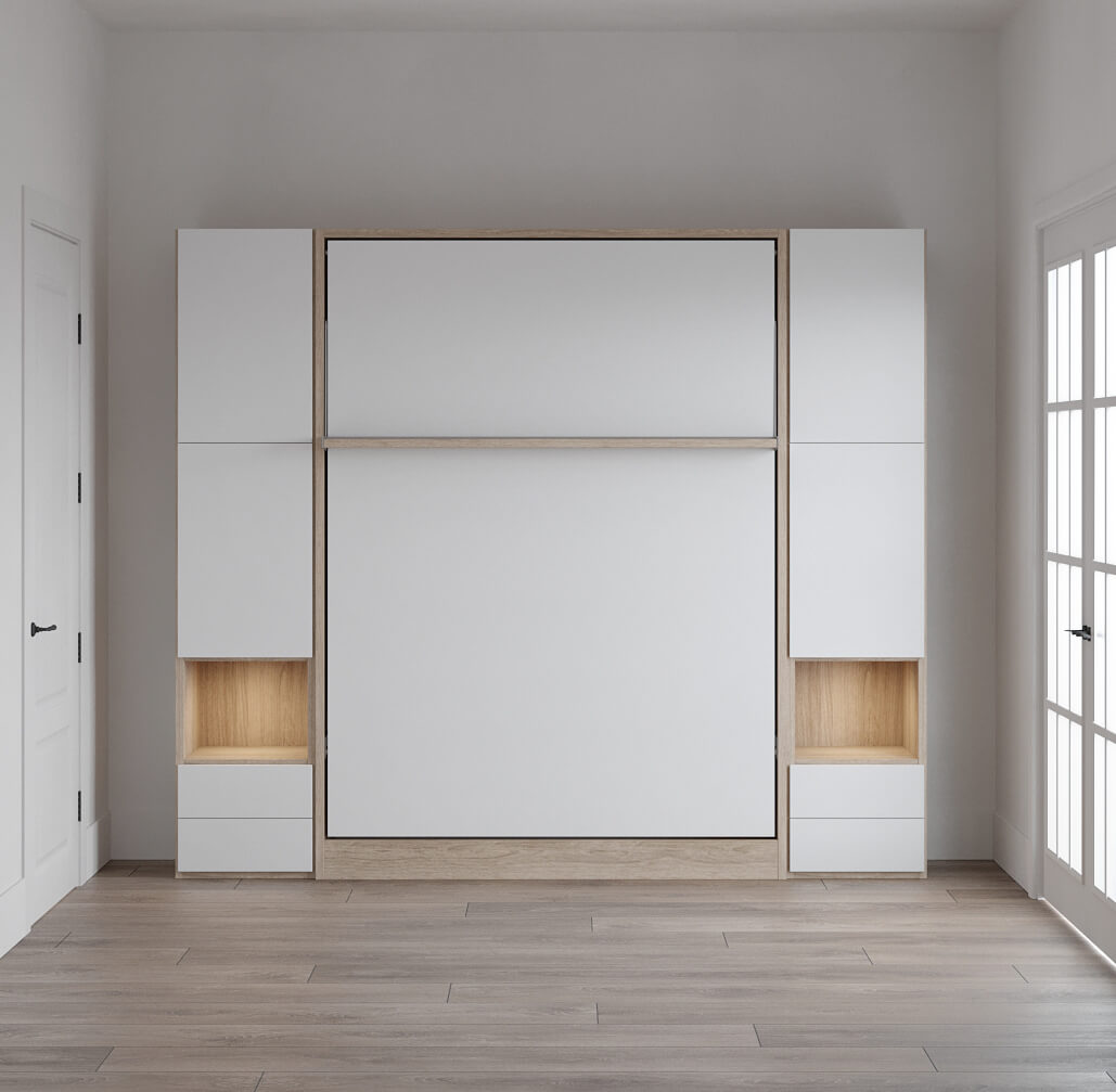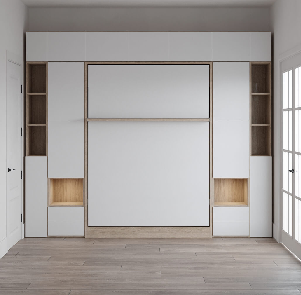 Royal Queen Wall Bed with Sectional Sofa, Bookcase and Wardrobe