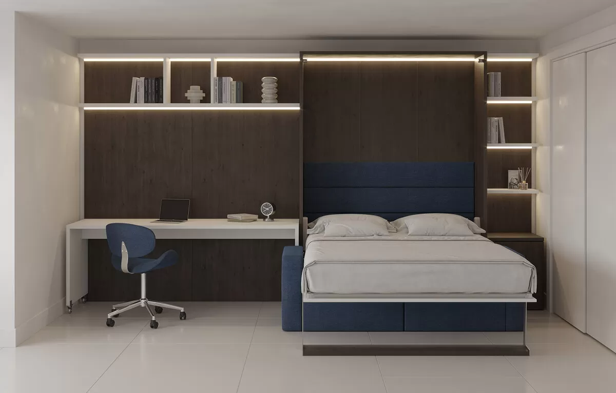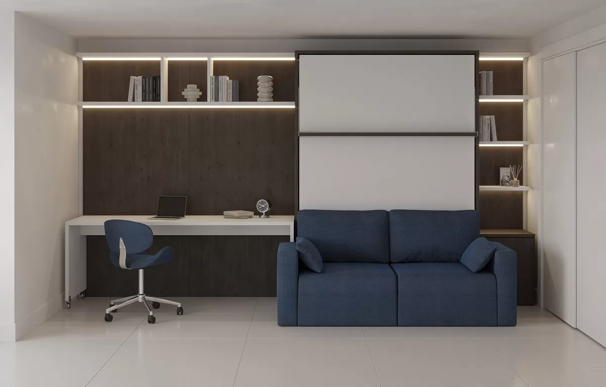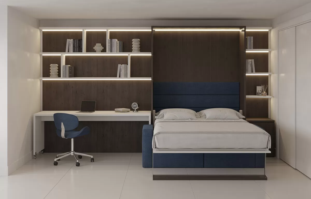 Royal Queen Wall Bed with Sectional Sofa, Bookcase Set and Desk