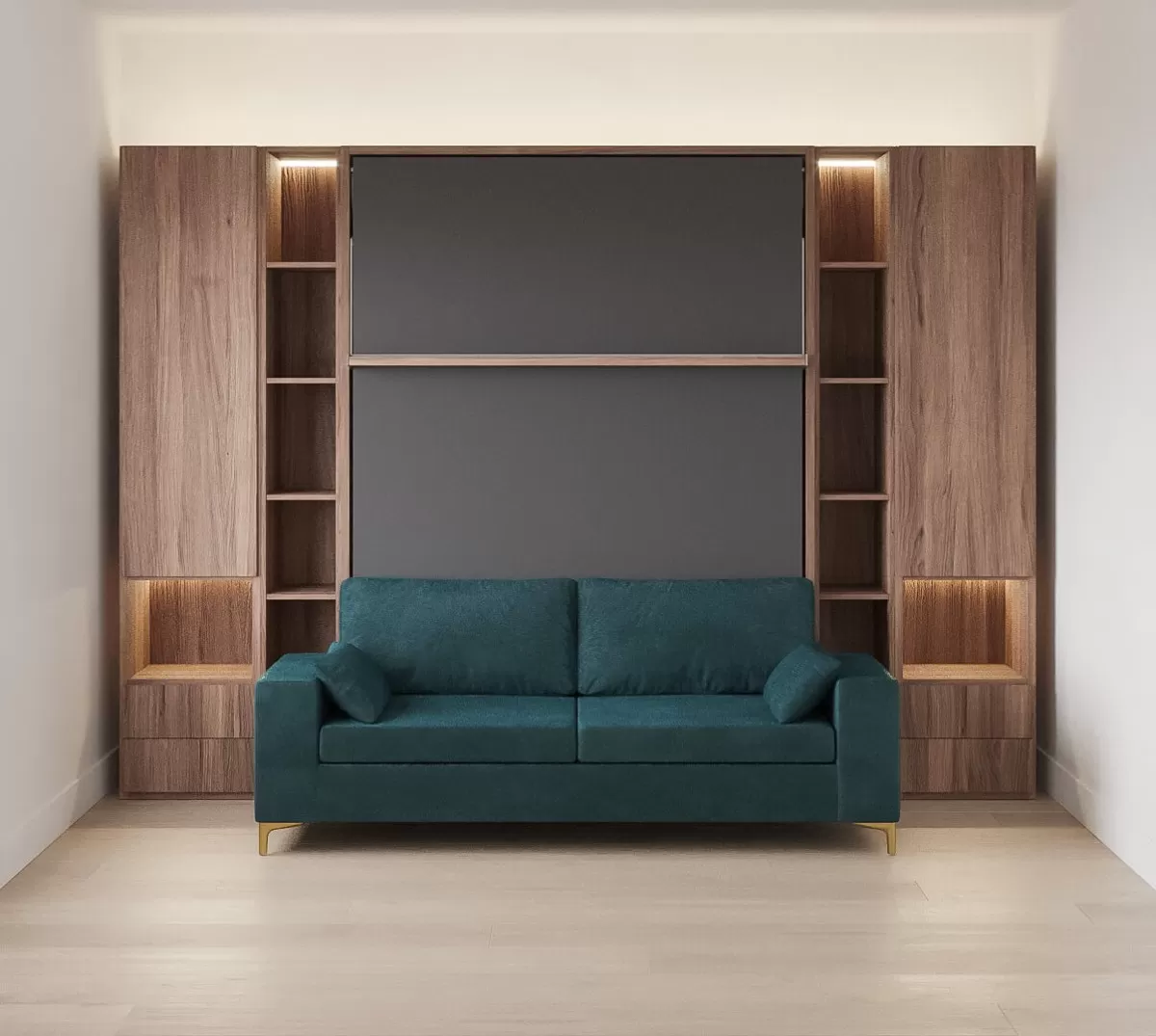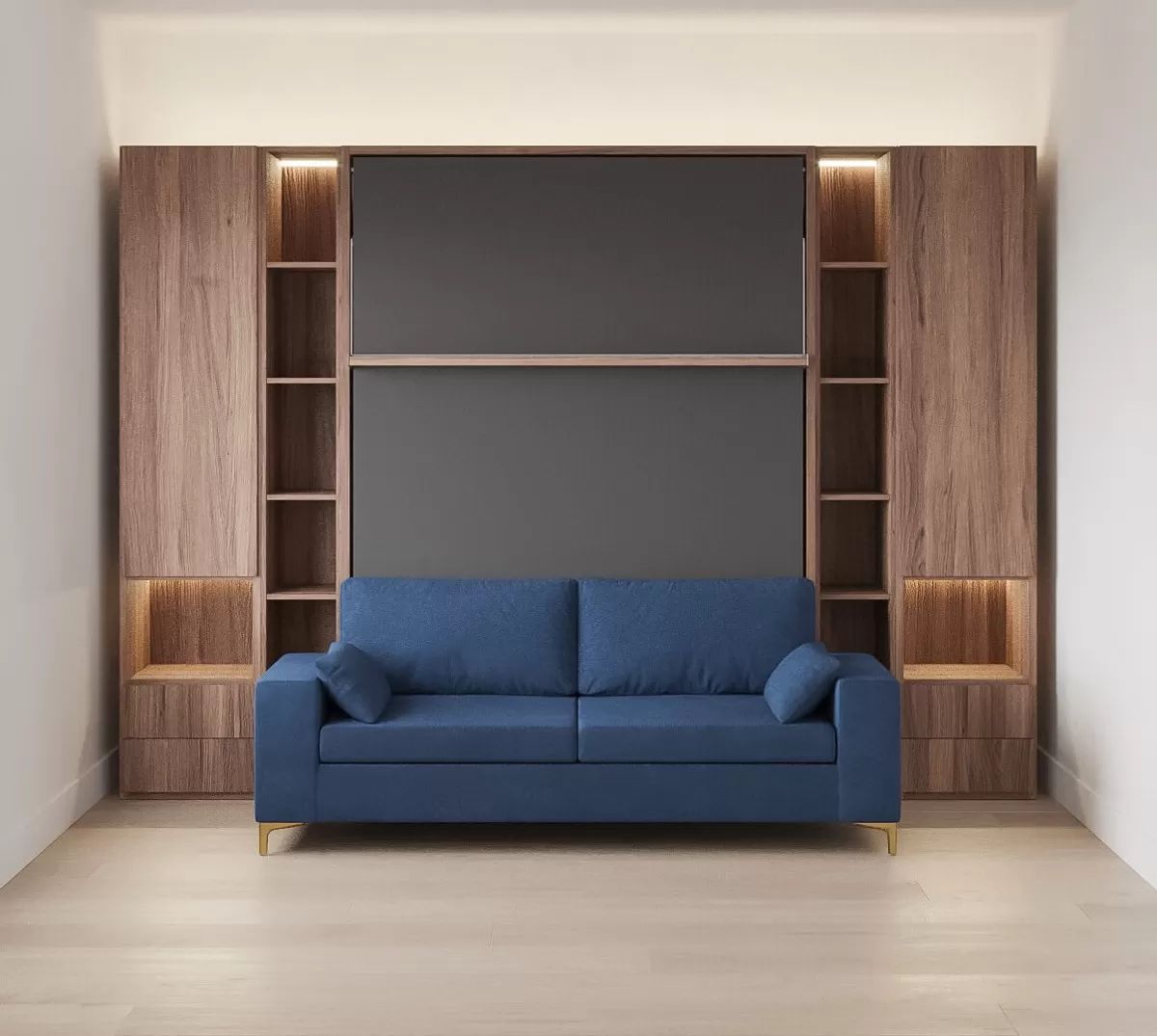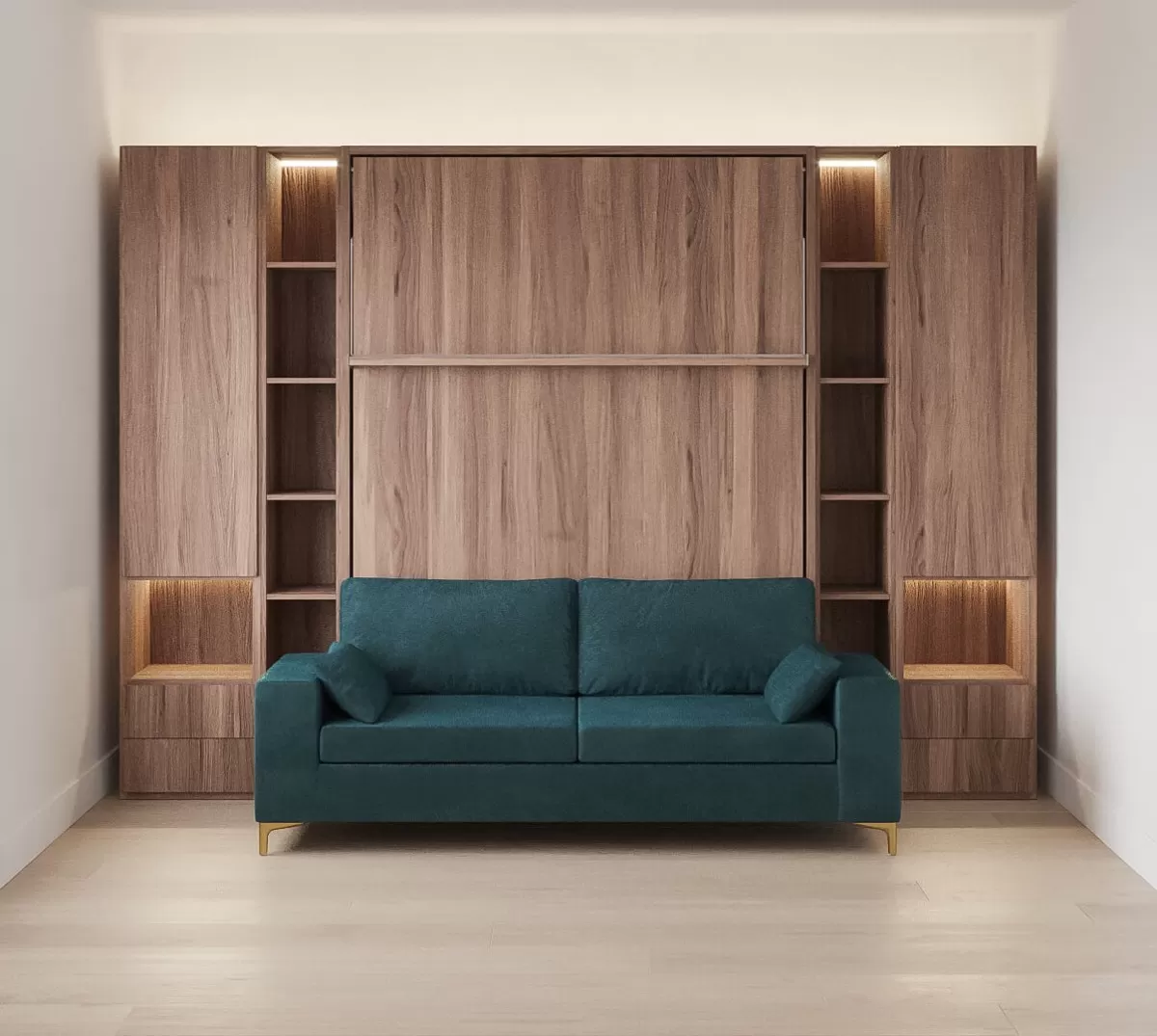 Royal Queen Wall Bed with Sectional Sofa, Bookcases and Wardrobe