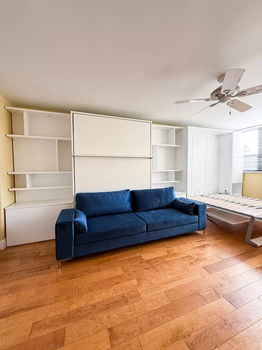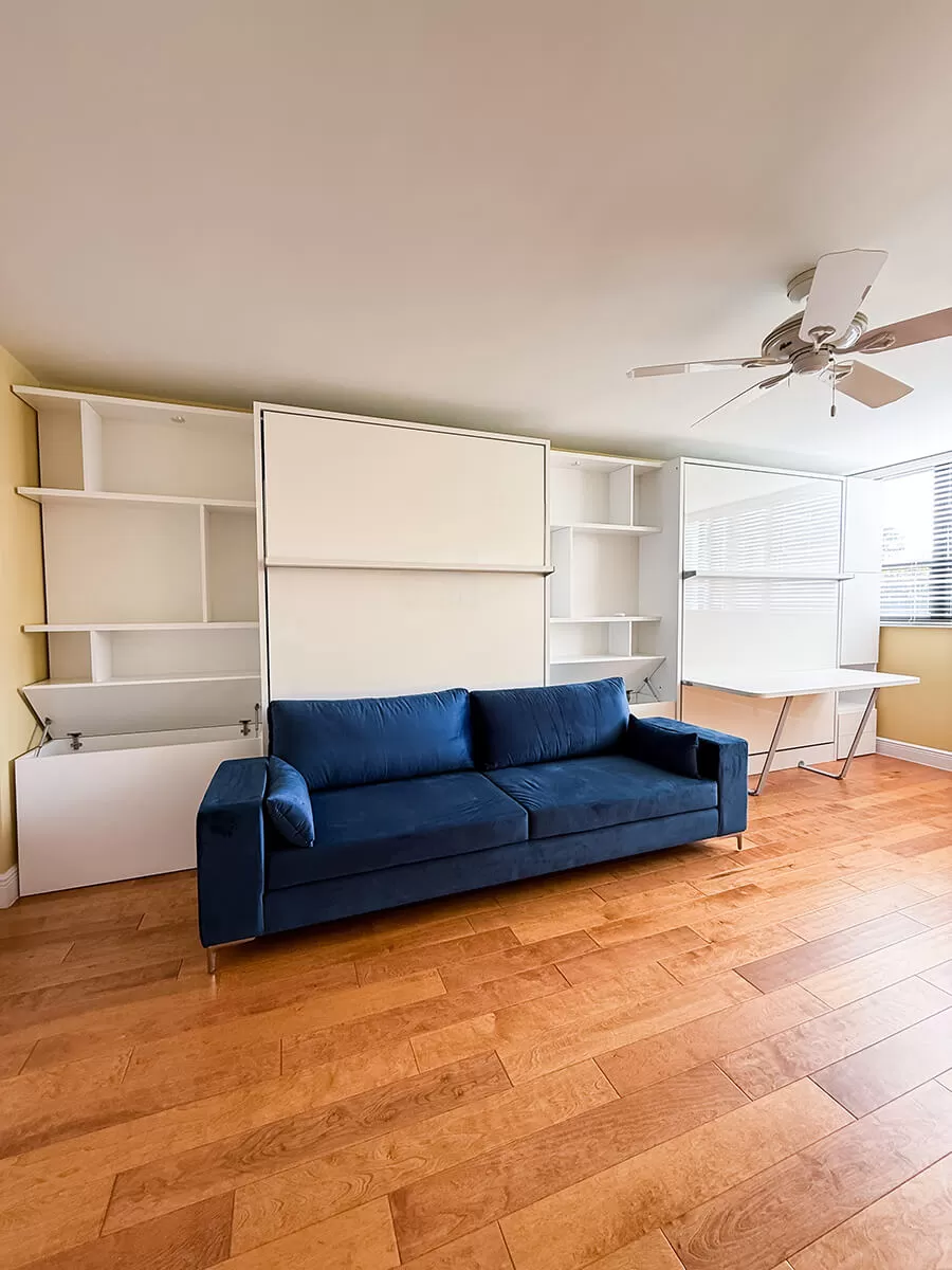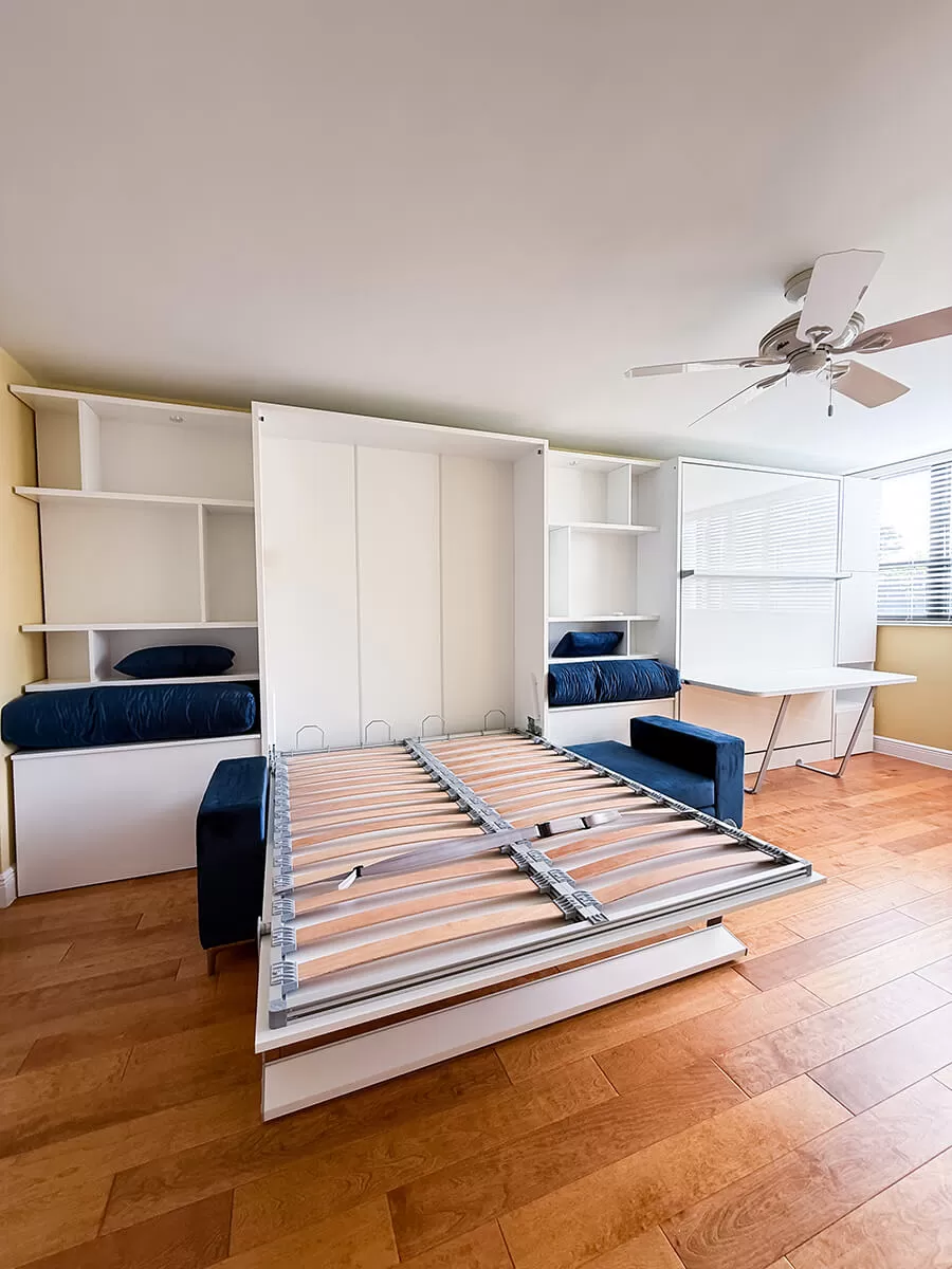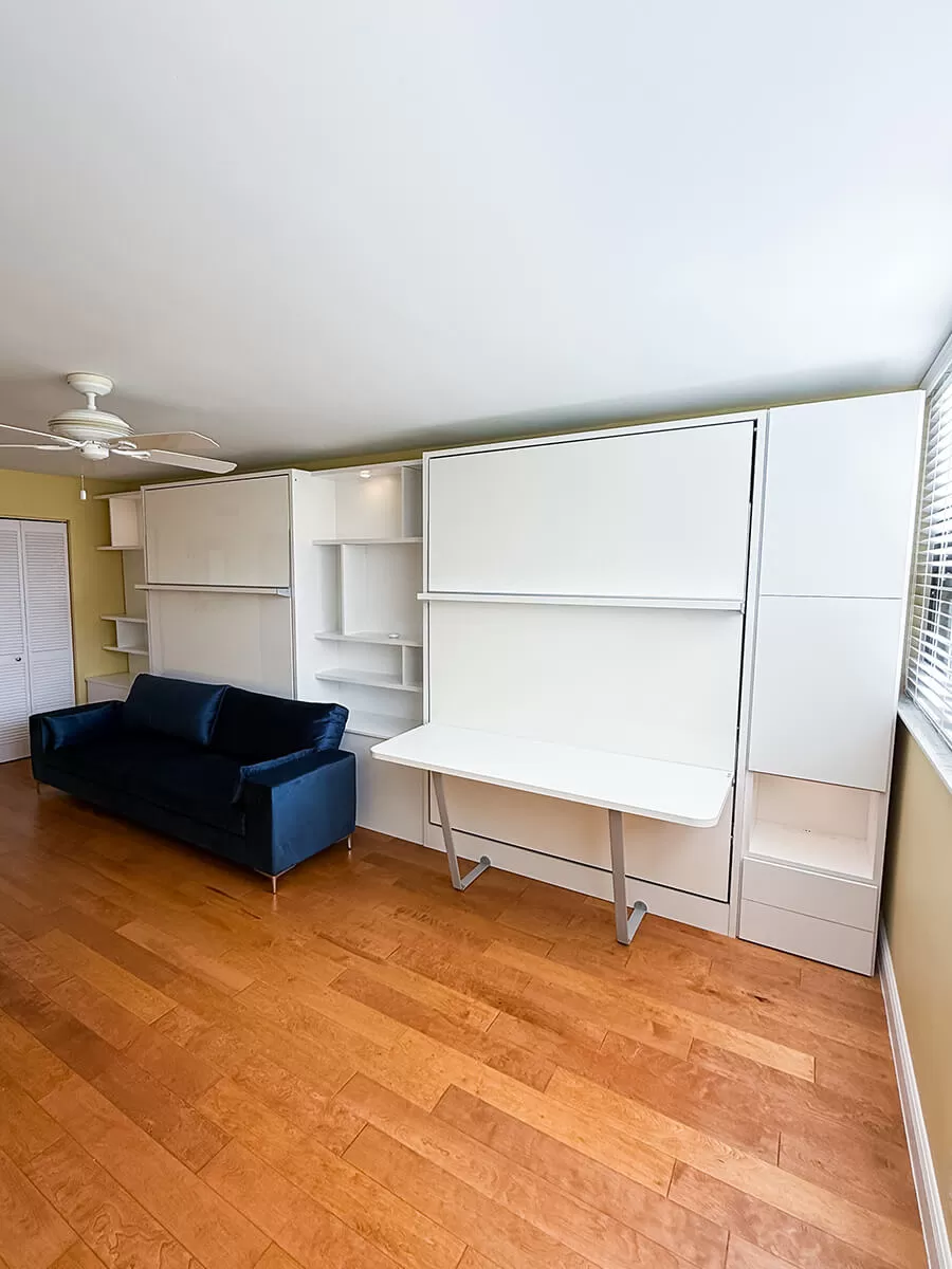 ROYAL Queen Wall Bed with Sectional Sofa, Self Leveling Desk and Wardrobe