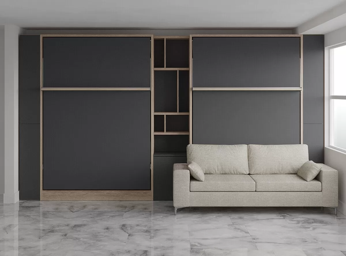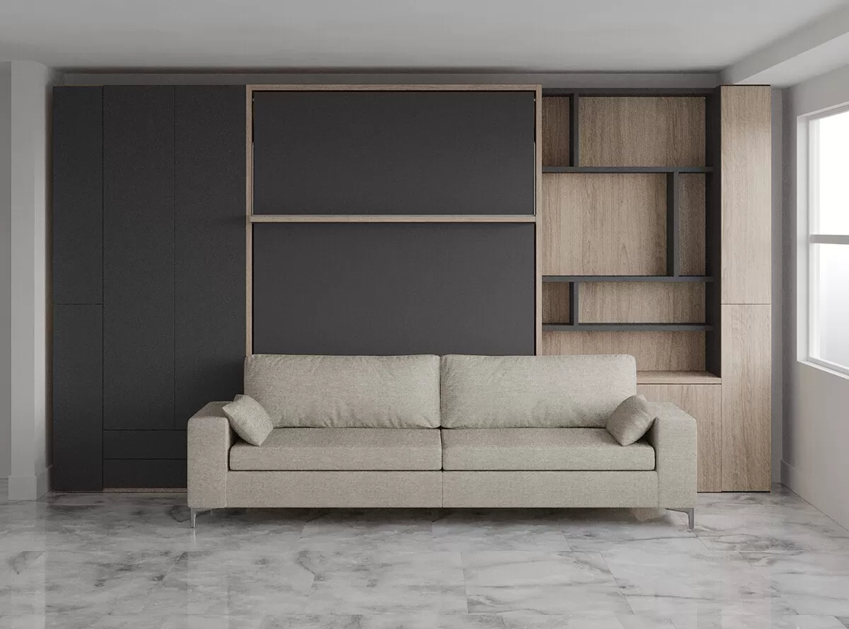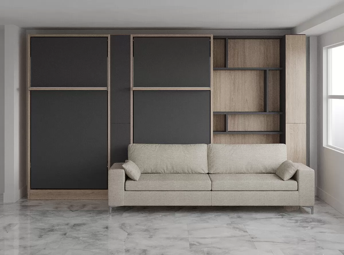 Royal Queen Wall Bed with Sectional Sofa, Wardrobe and Bookcase
