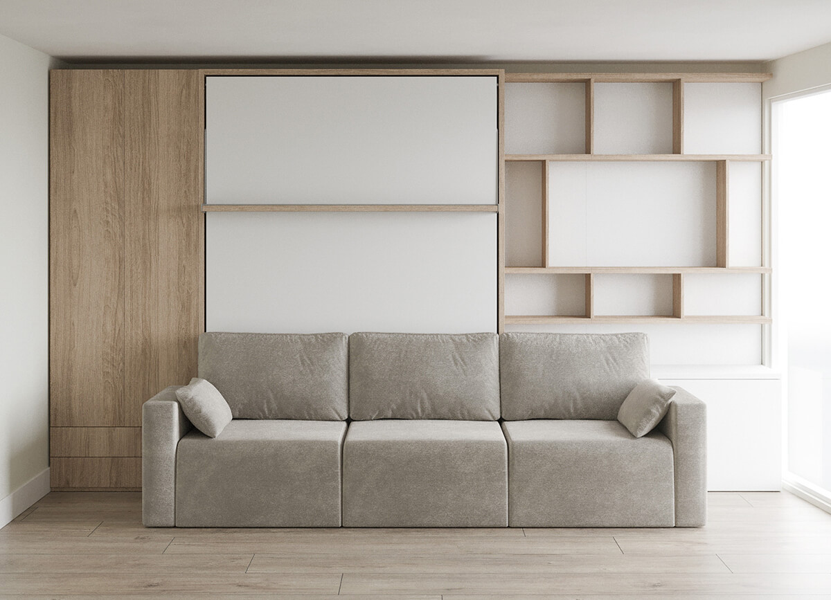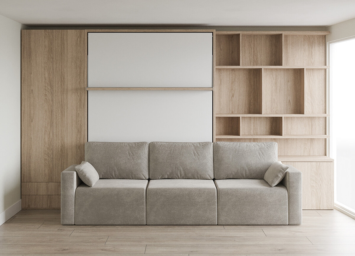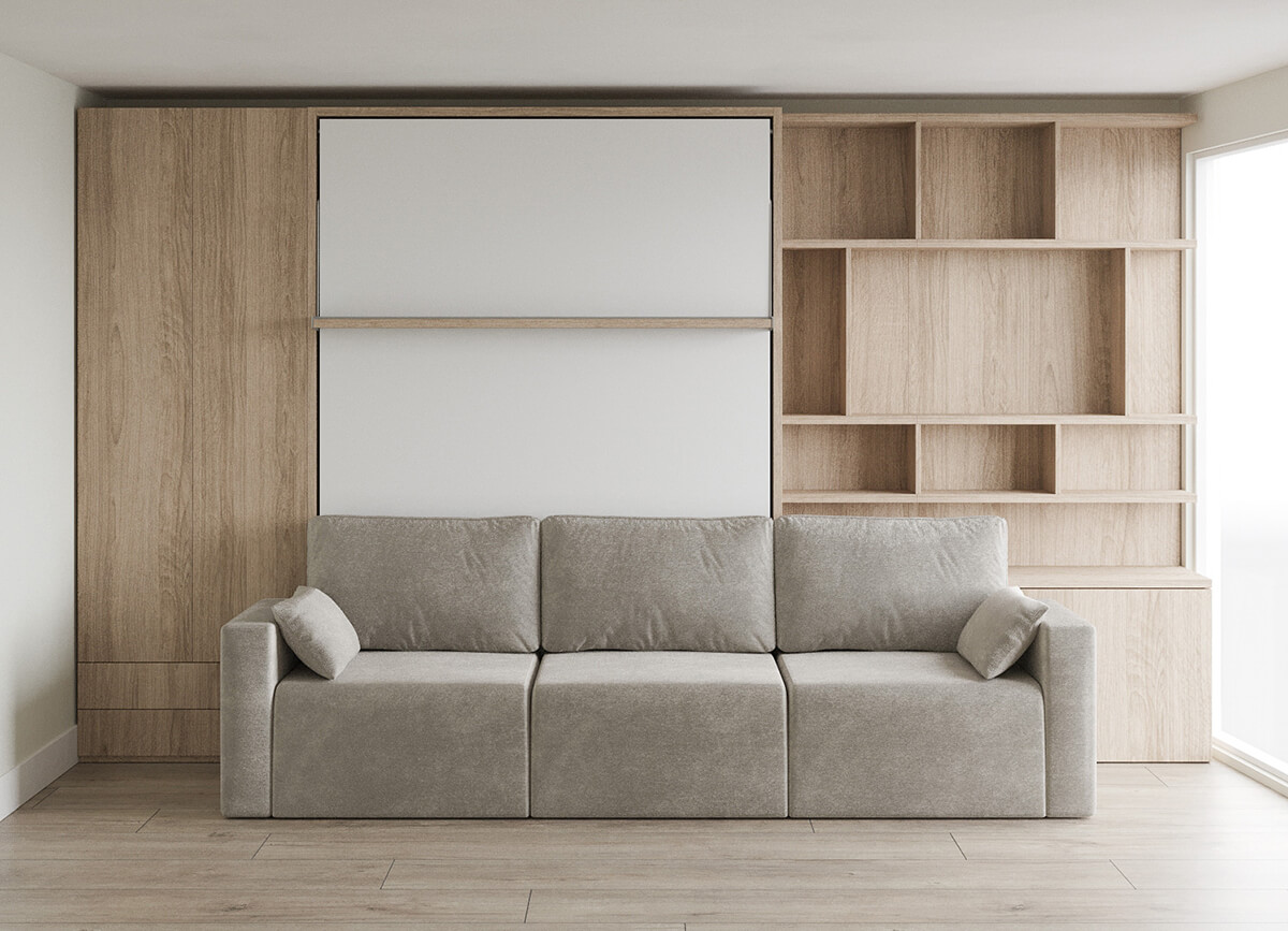 ROYAL Queen Wall Bed with Sectional Sofa, Wardrobe and Bookcase