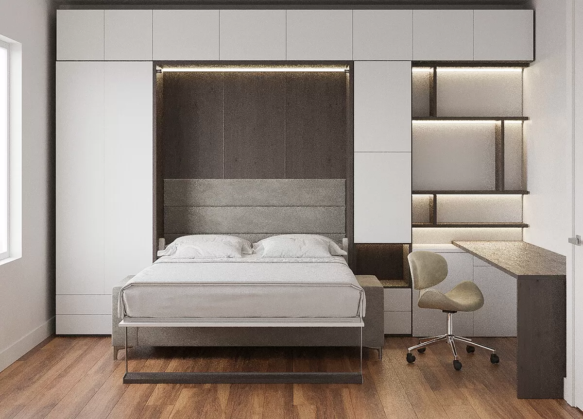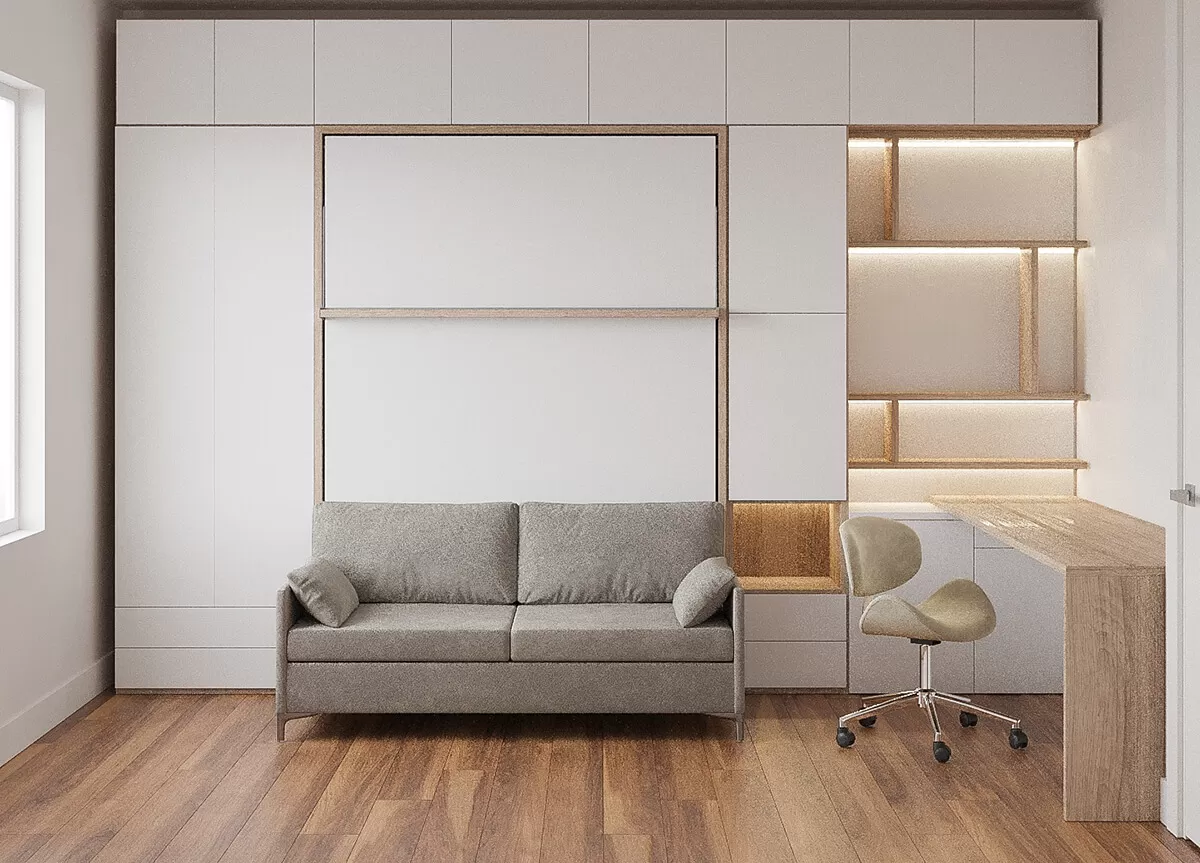 ROYAL Queen Wall Bed with Sectional Sofa, Wardrobe and Bookcase Set